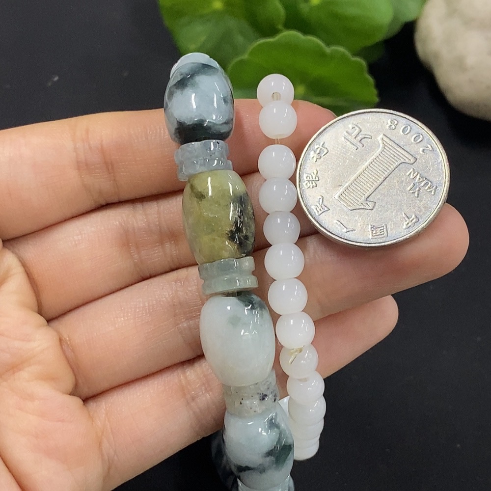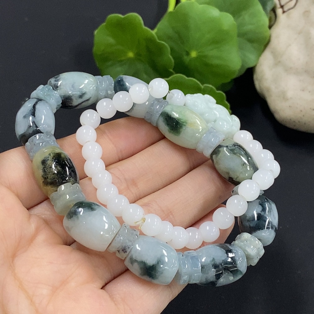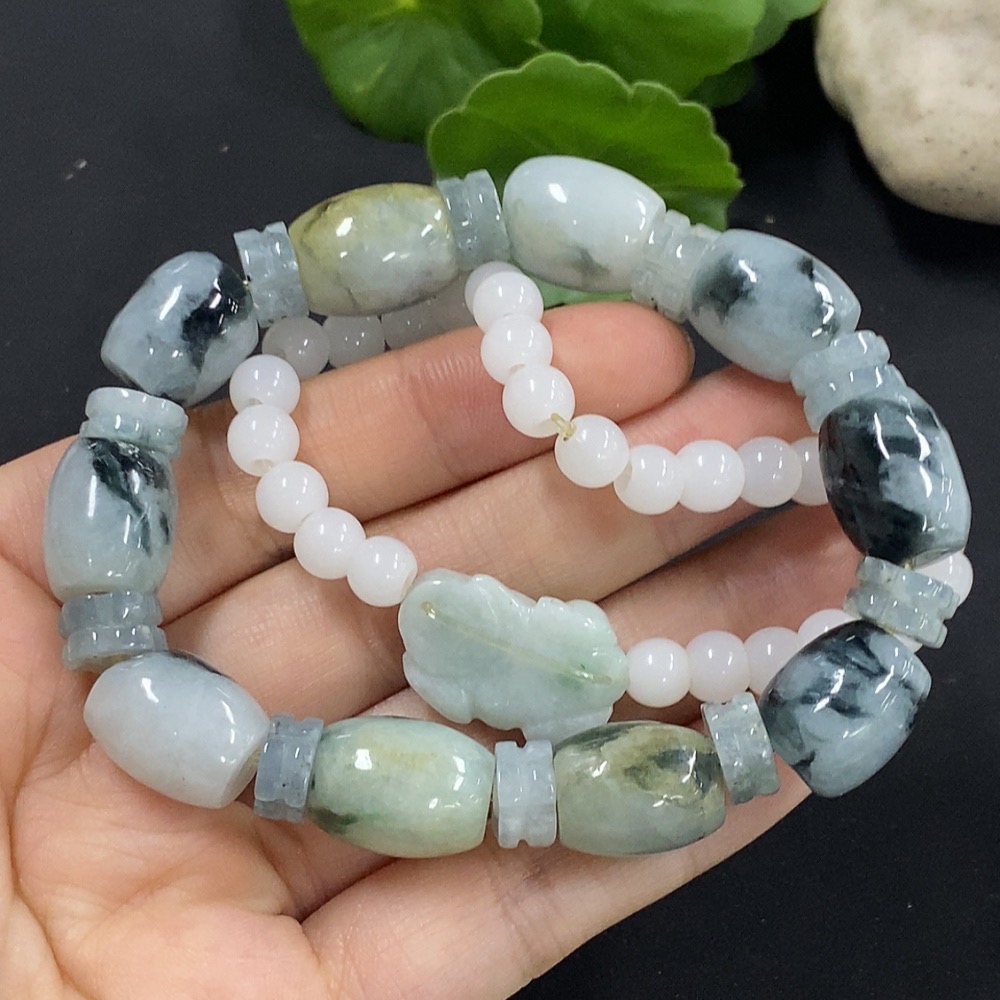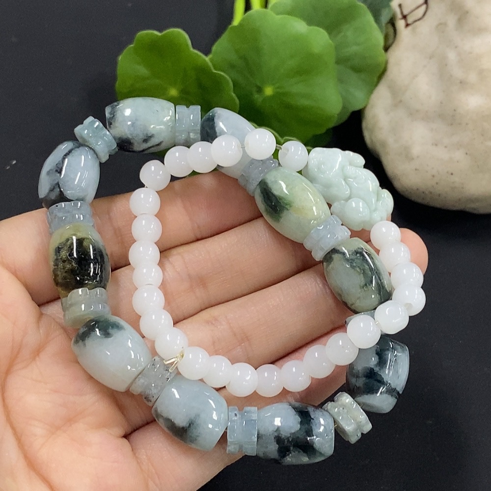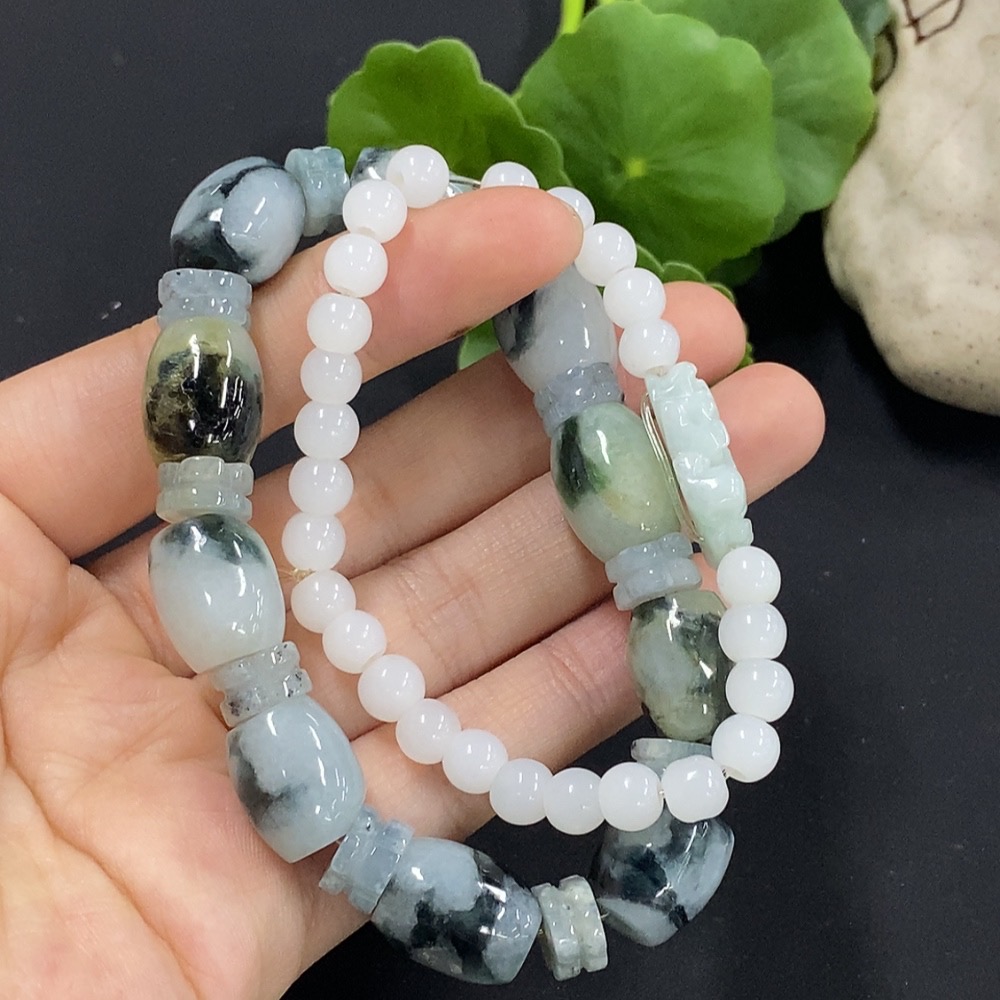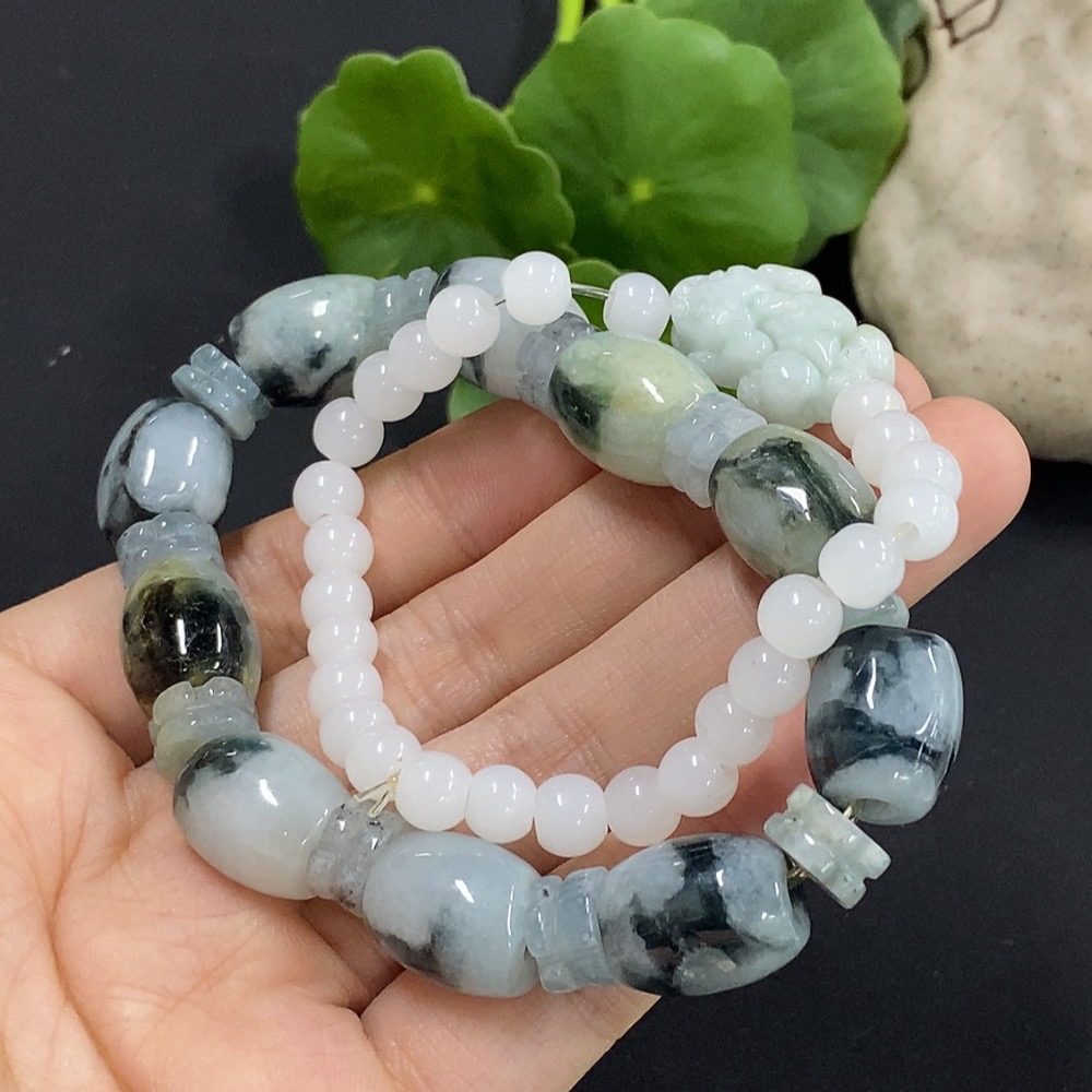 Jadeite Bracelet with Other Mineral Components, Non-A Grade Matching Chain