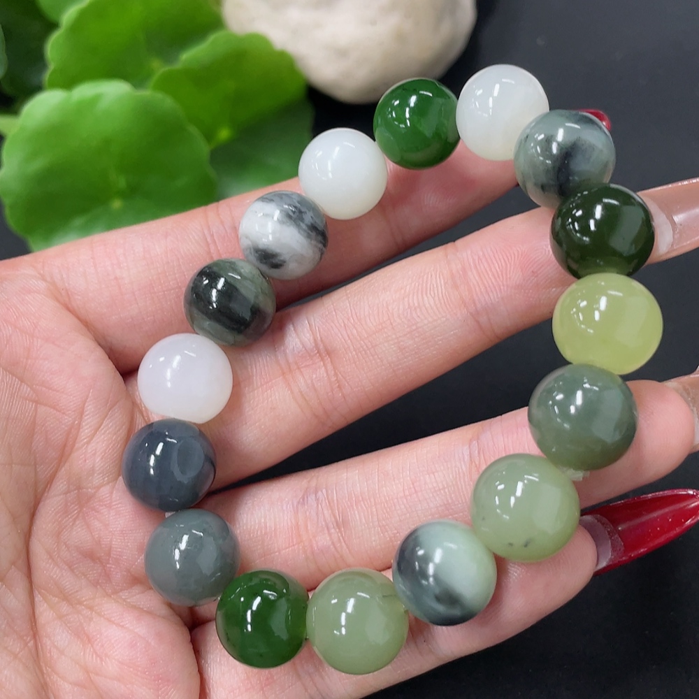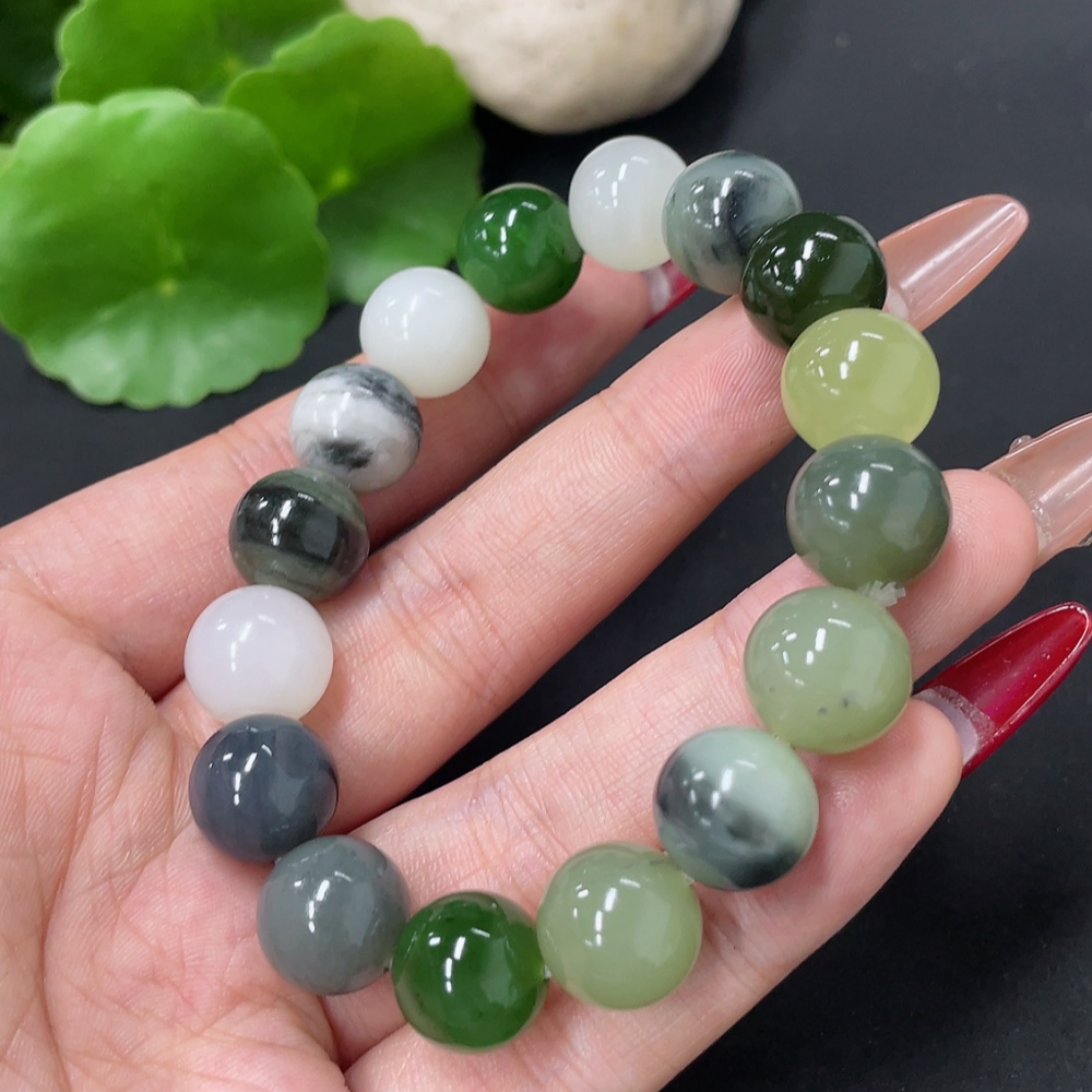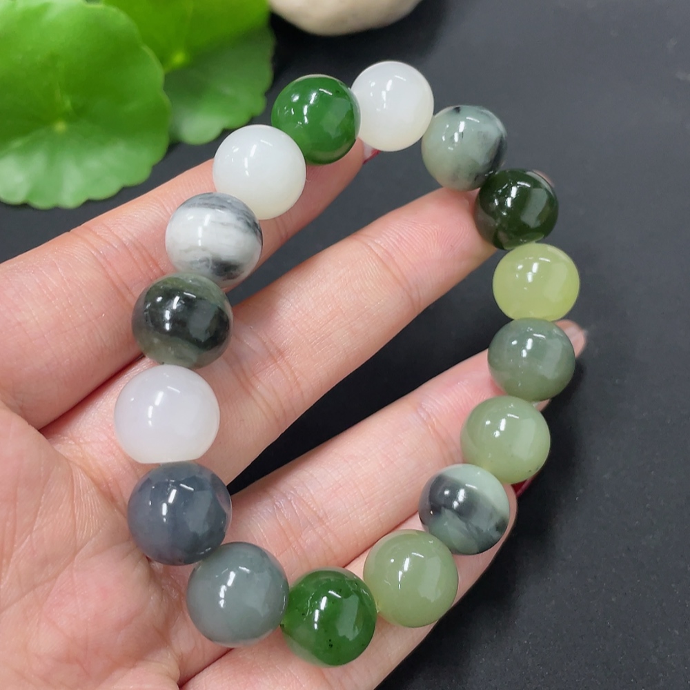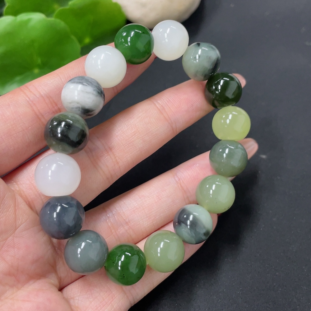 Hetian Jade Bracelet, approx. 11.8mm, total weight approx. 41.8g, containing other mineral components