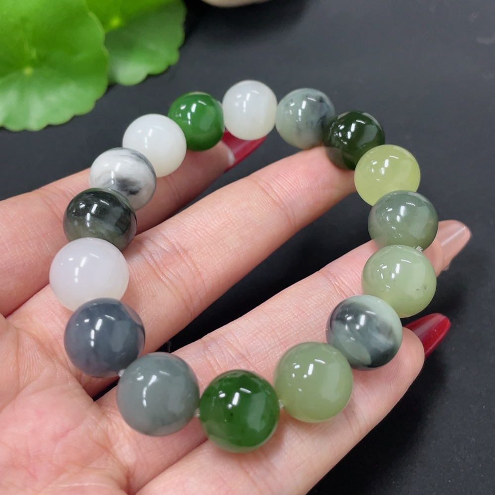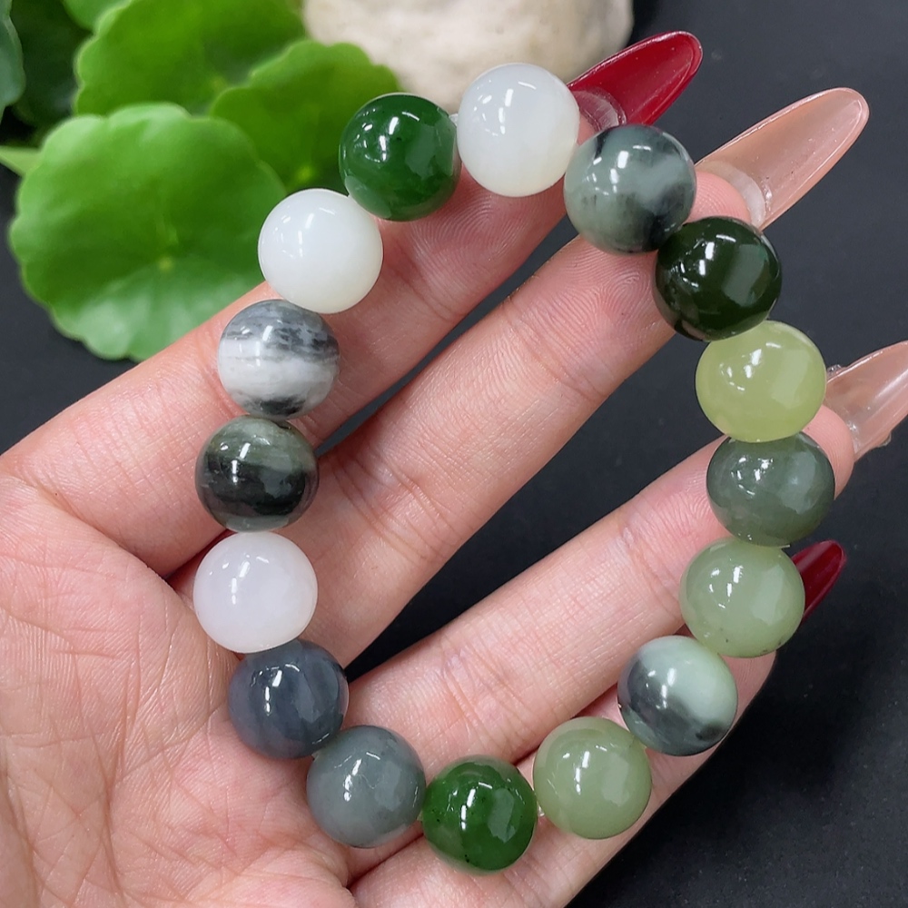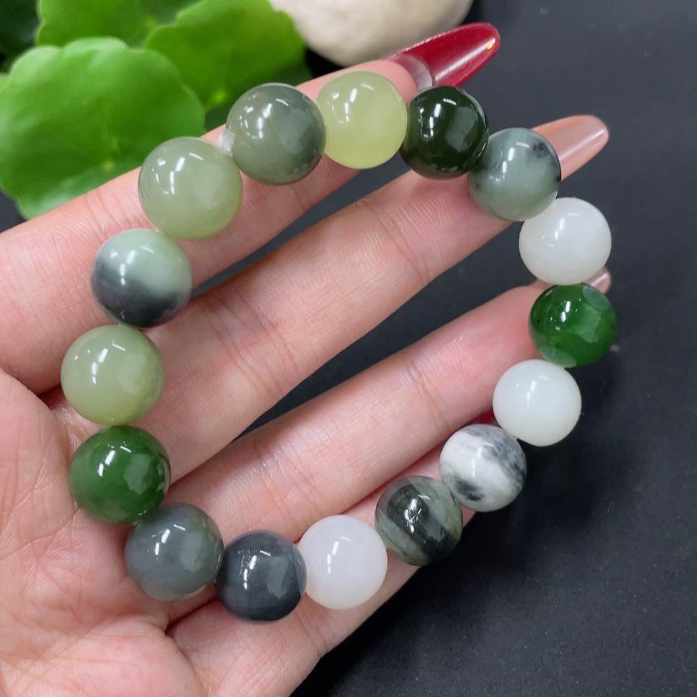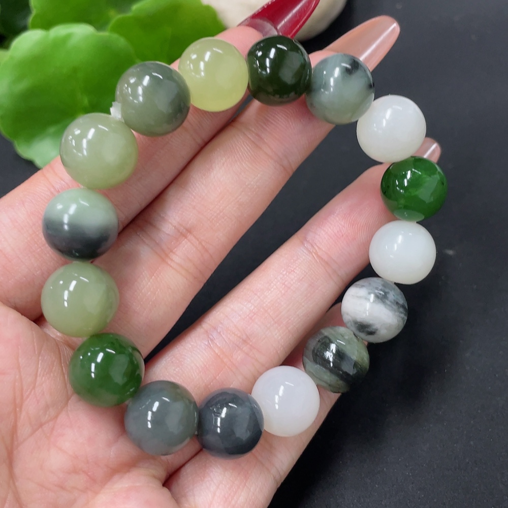Hetian Jade Bracelet, approx. 11.8mm, total weight approx. 41.8g, containing other mineral components
