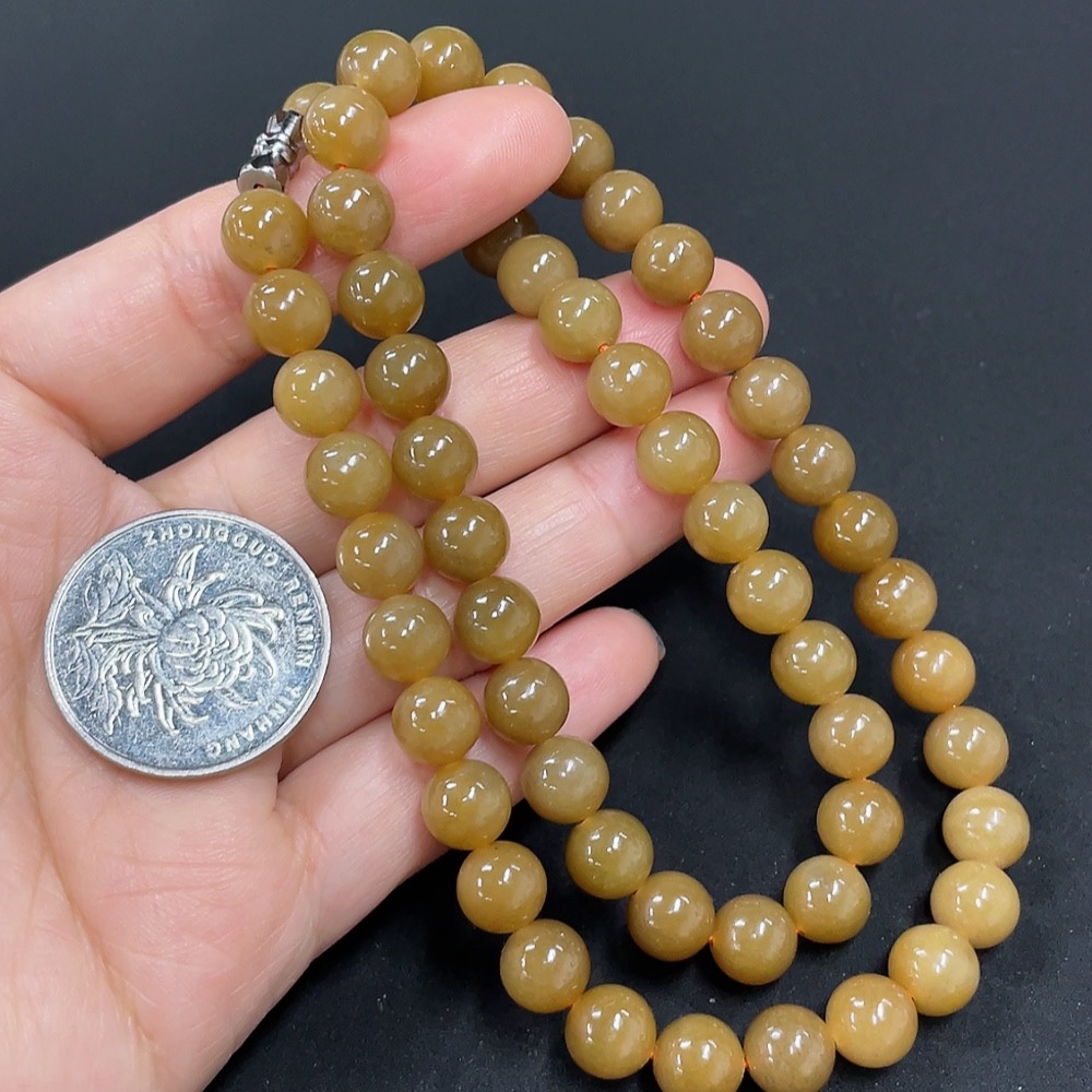 Hetian Jade Bead Necklace, approx. 7.8mm, total weight approx. 43.3g