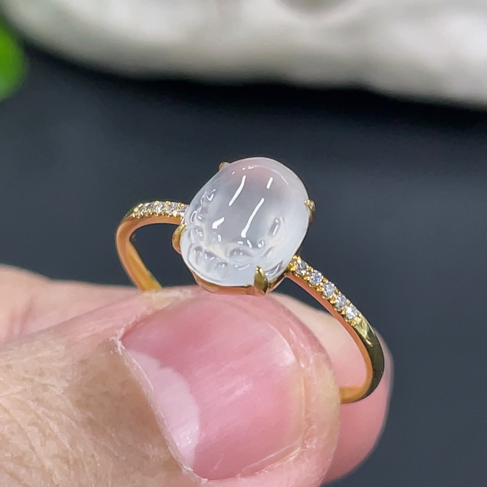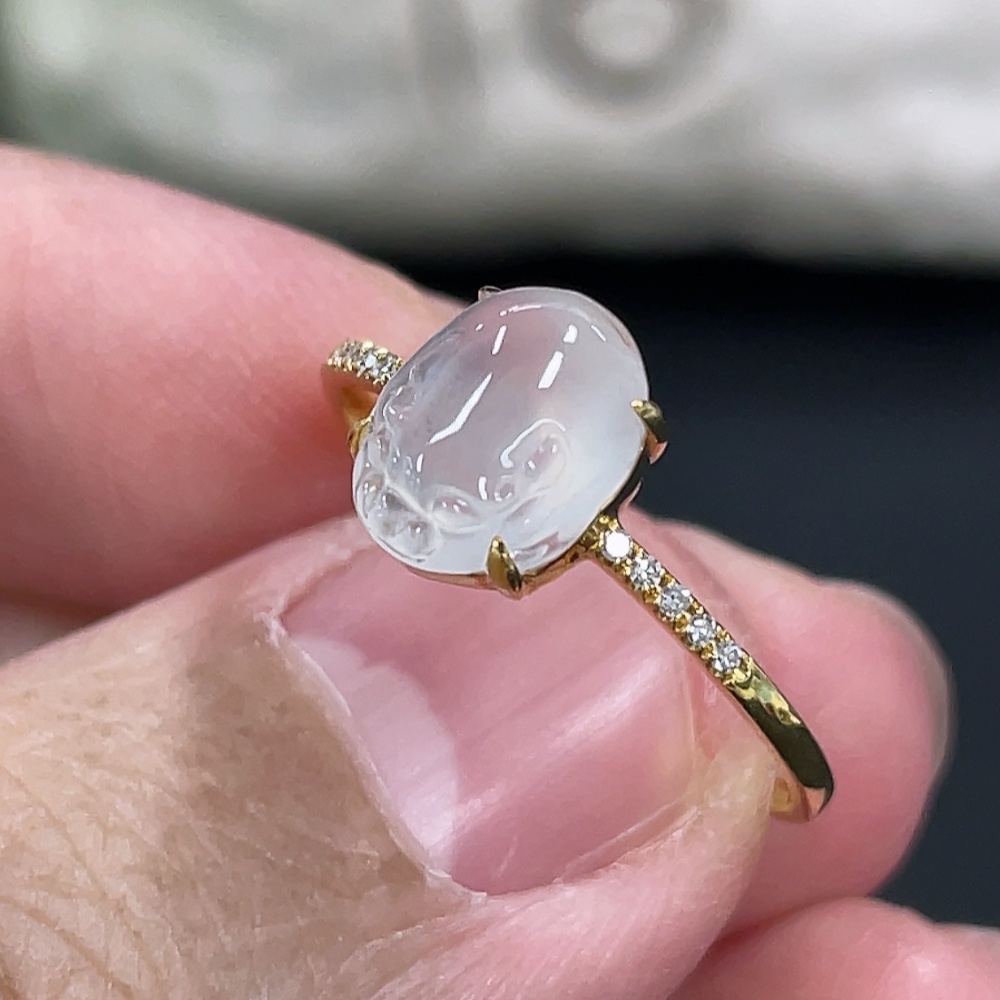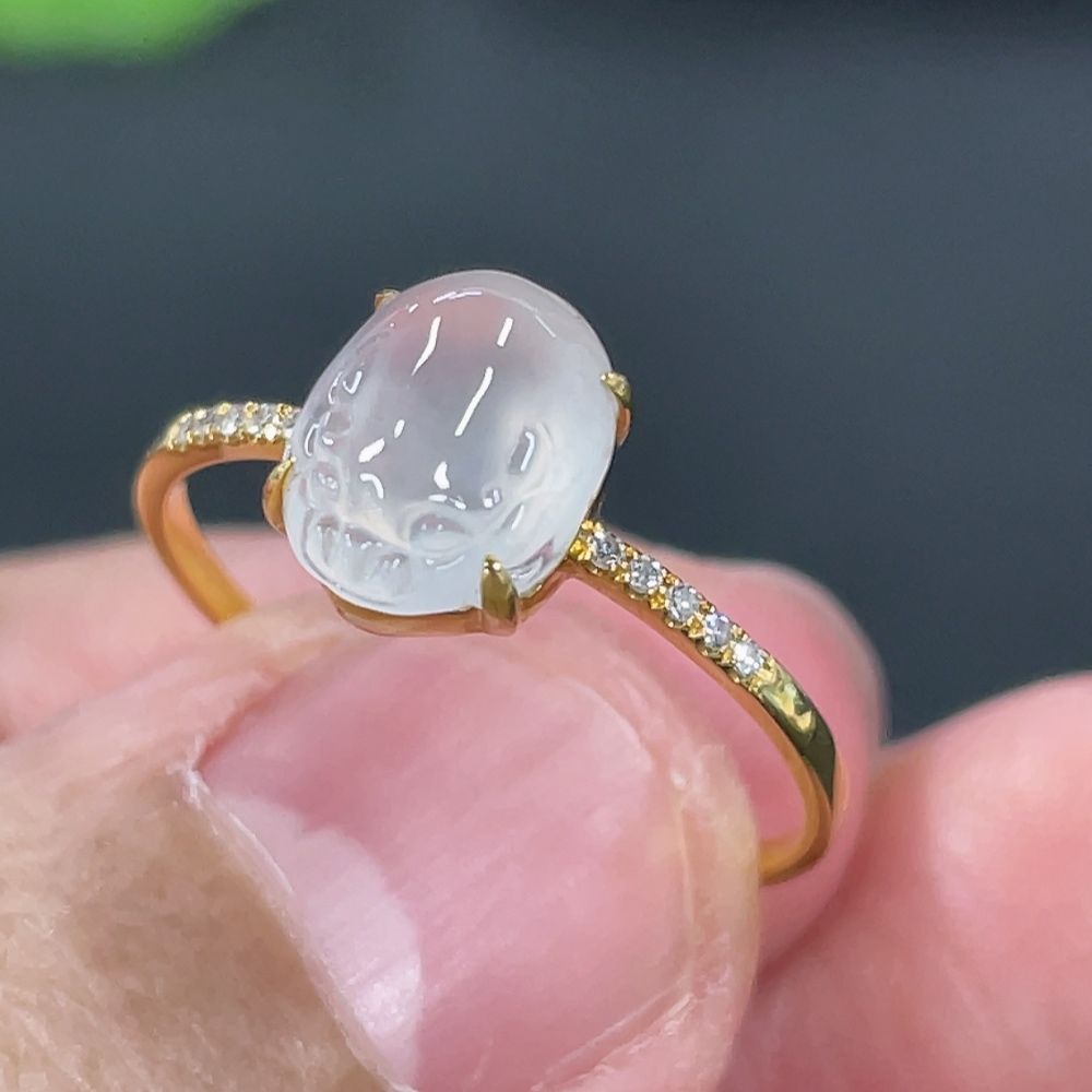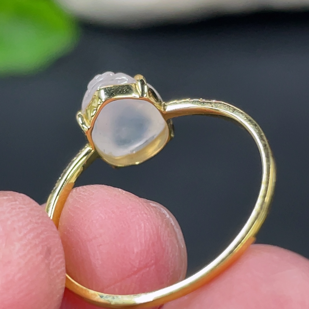 Jadeite Three-Legged Golden Toad Inlaid Ring 18k Gold Setting Size 14 Total Weight Approx. 1.25g with Diamond Accents