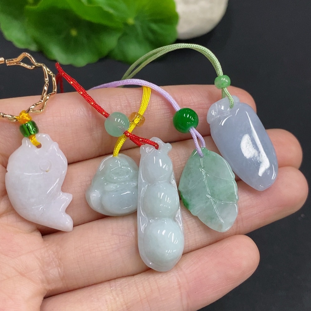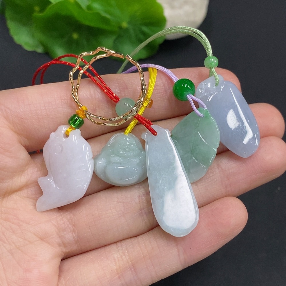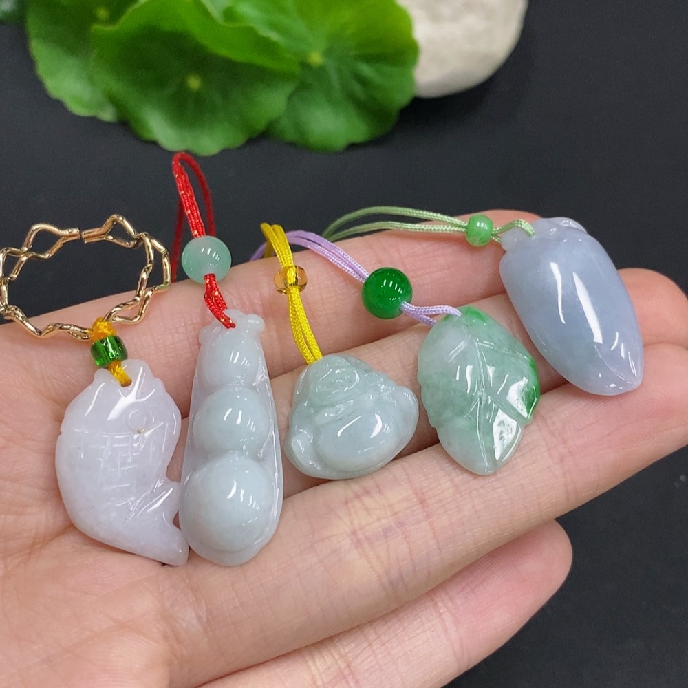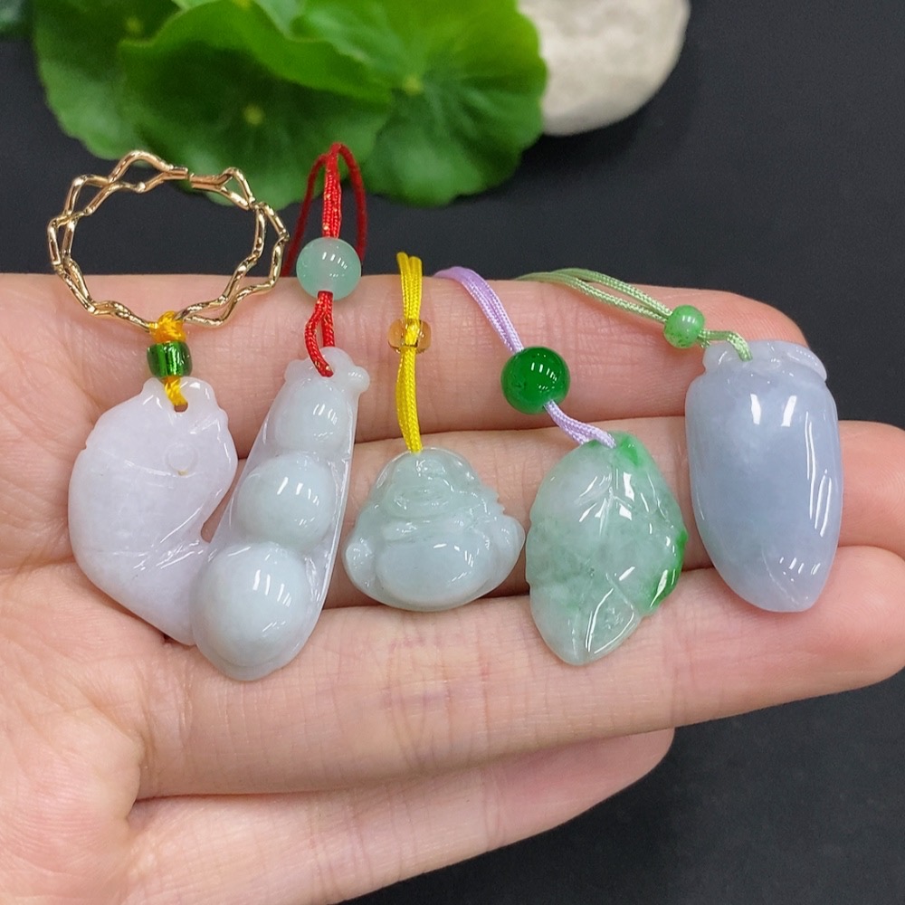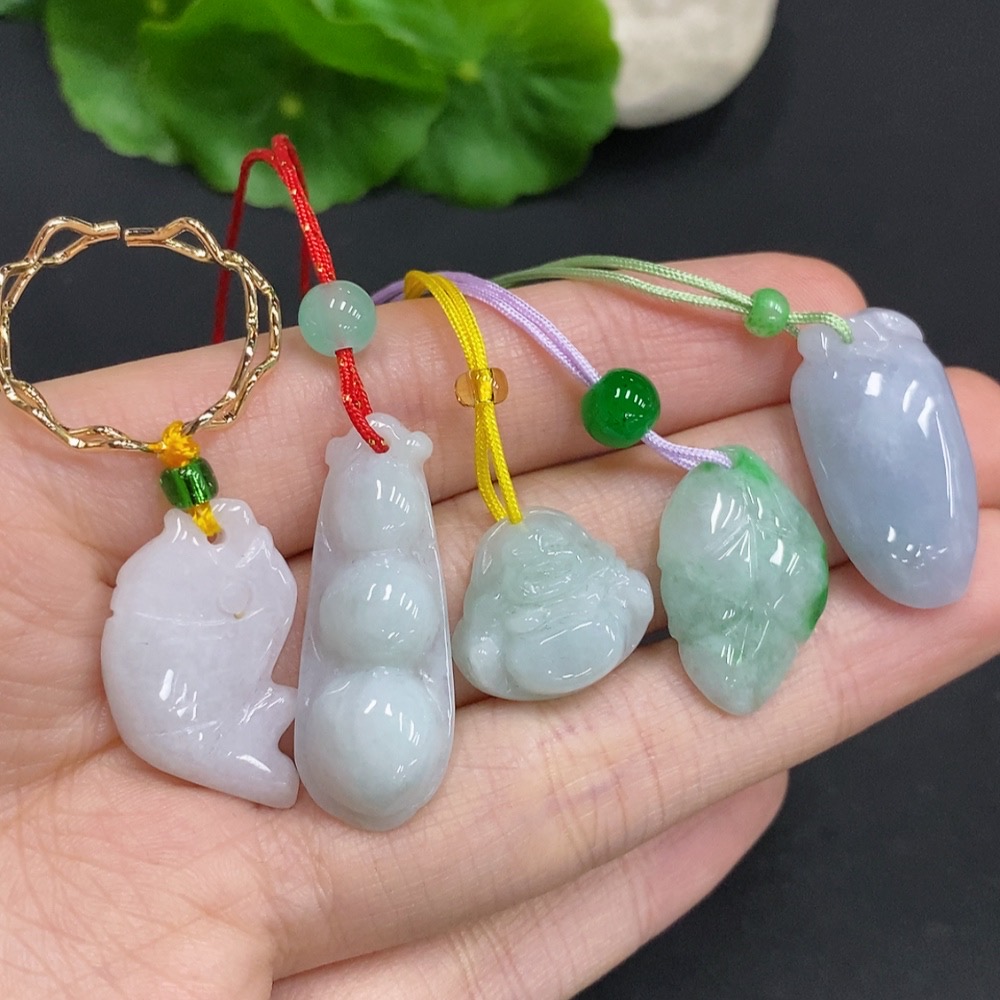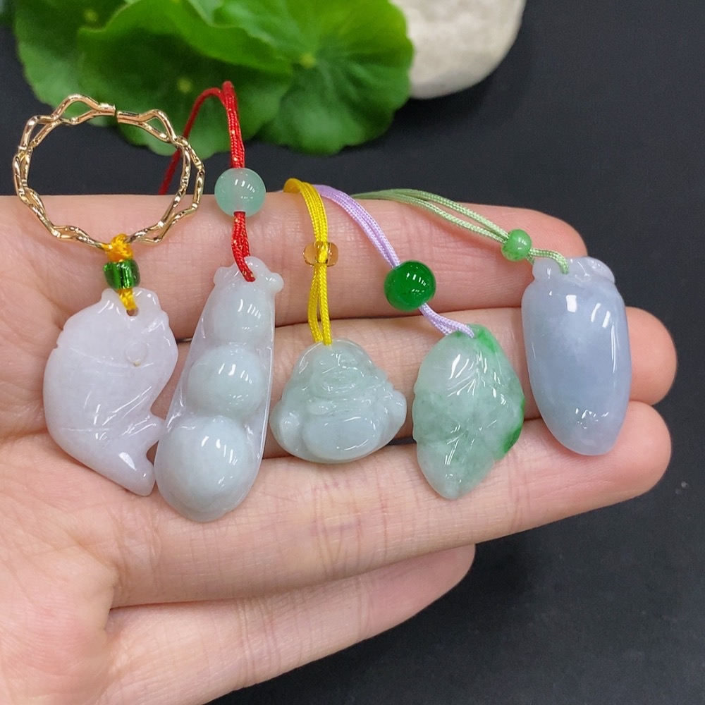 Jadeite Pendants Sell as a Lot Non-Gold Inlaid with Non-Jadeite Beads