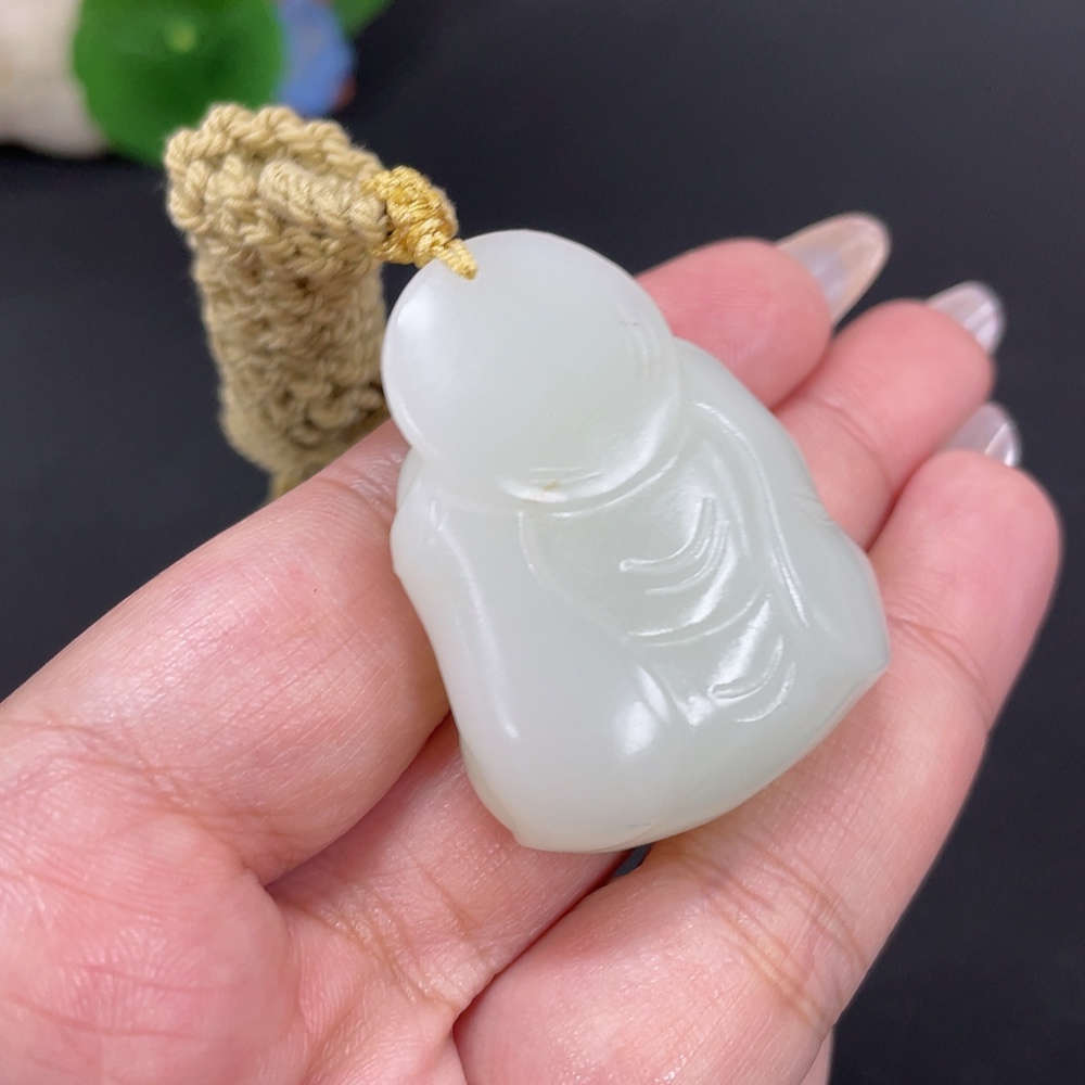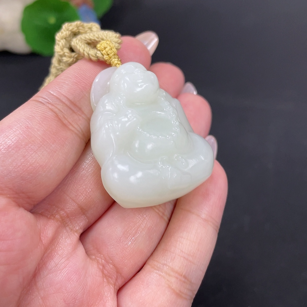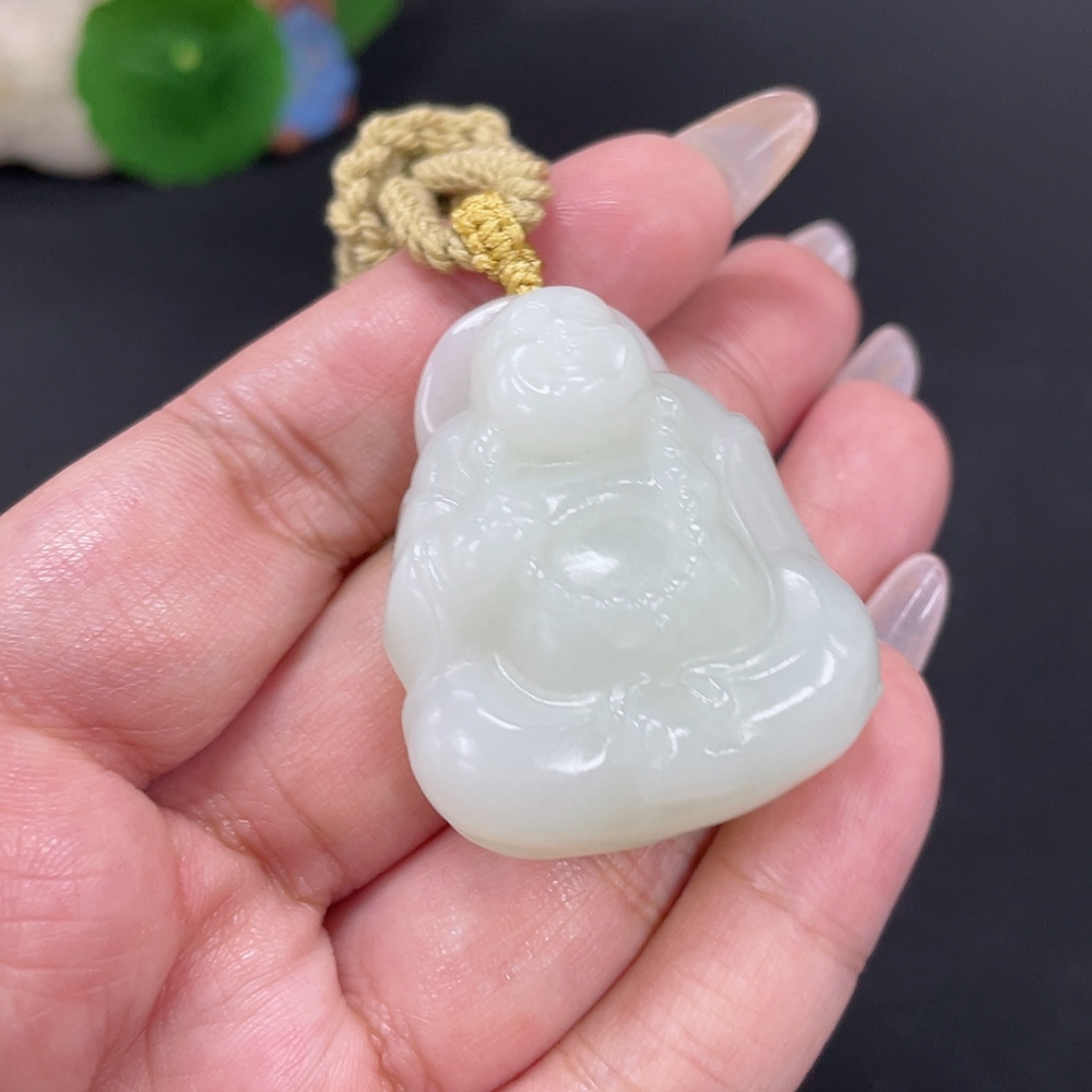 Hetian Jade Pendant Buddha, Total Weight Approx. [with rope] 37.4g
