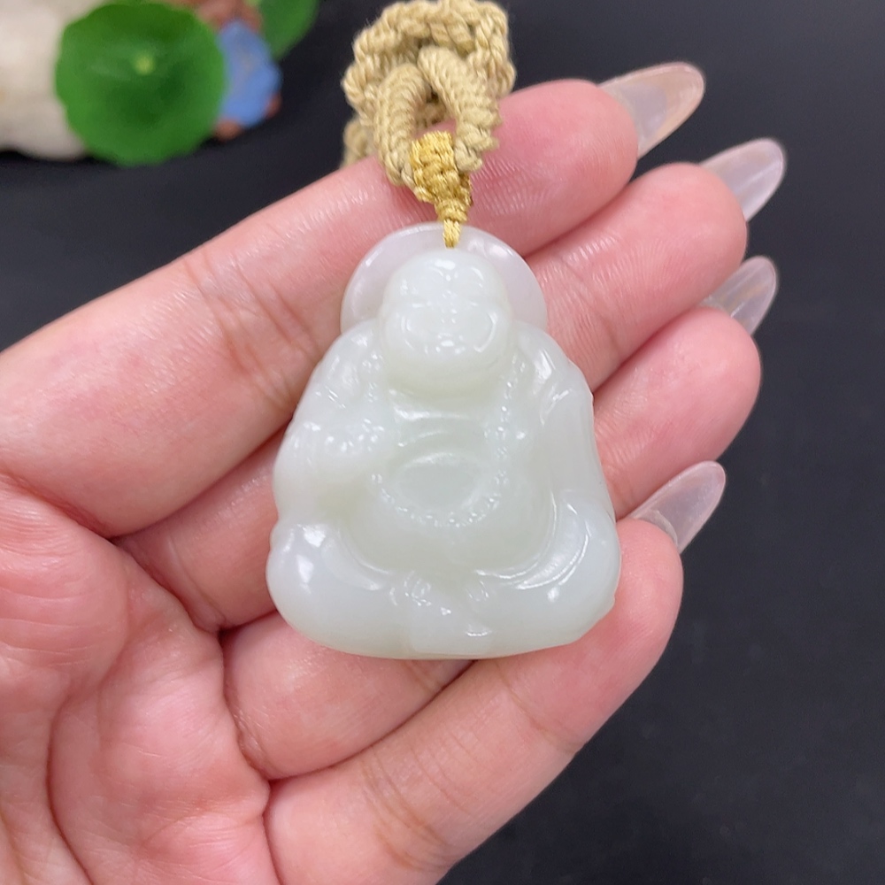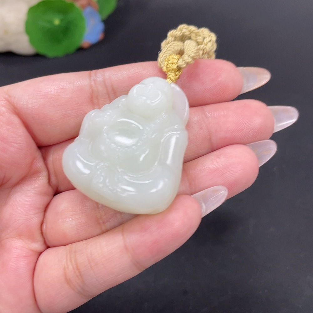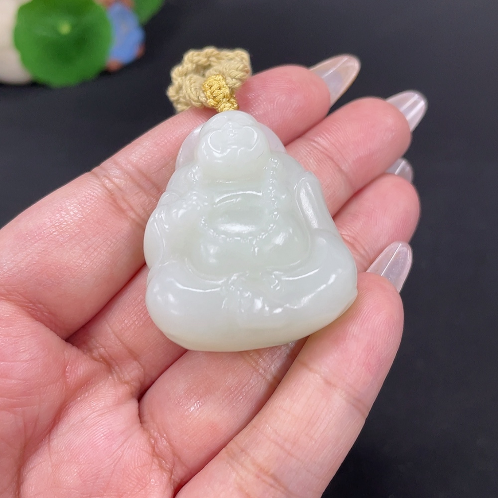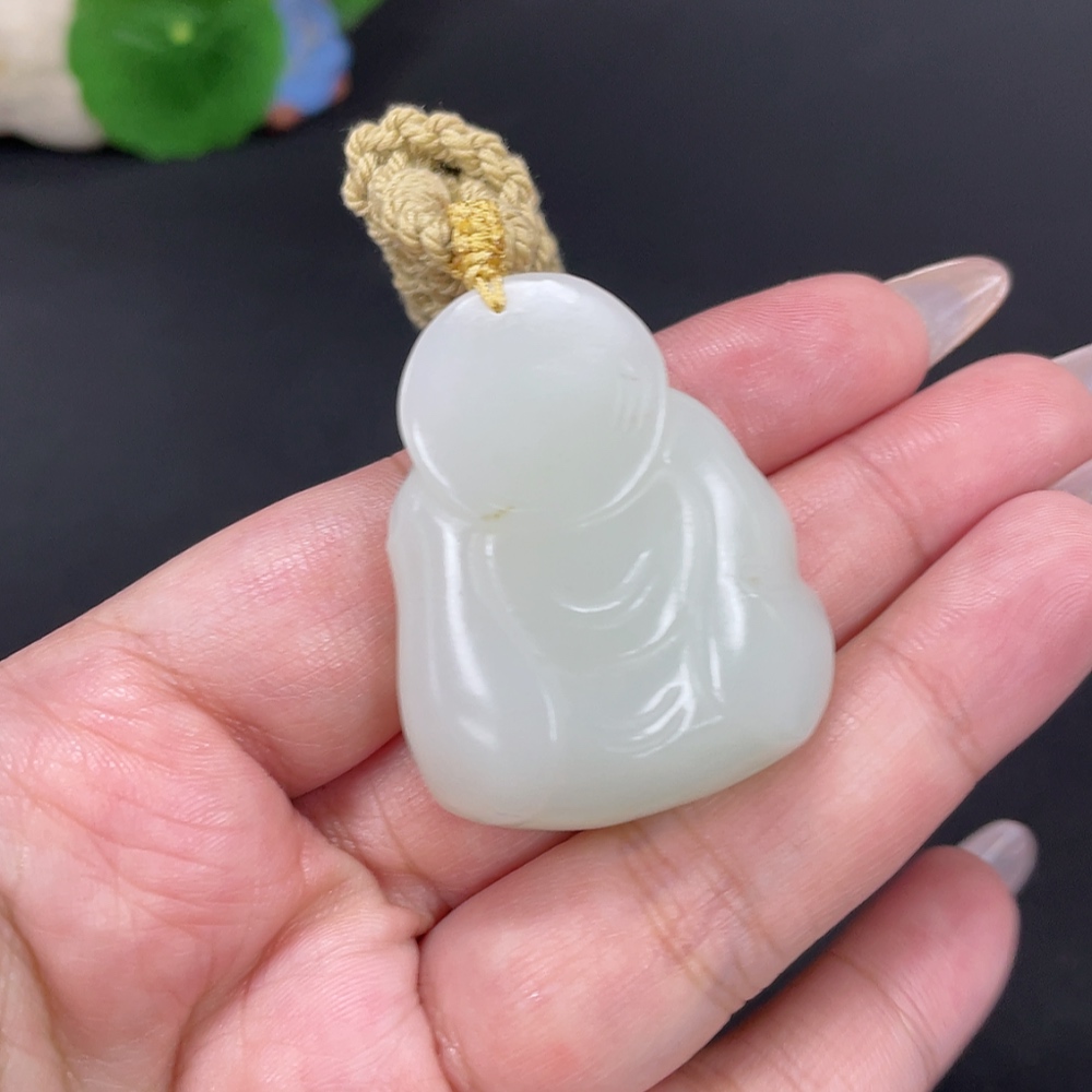 Hetian Jade Pendant Buddha, Total Weight Approx. [with rope] 37.4g
