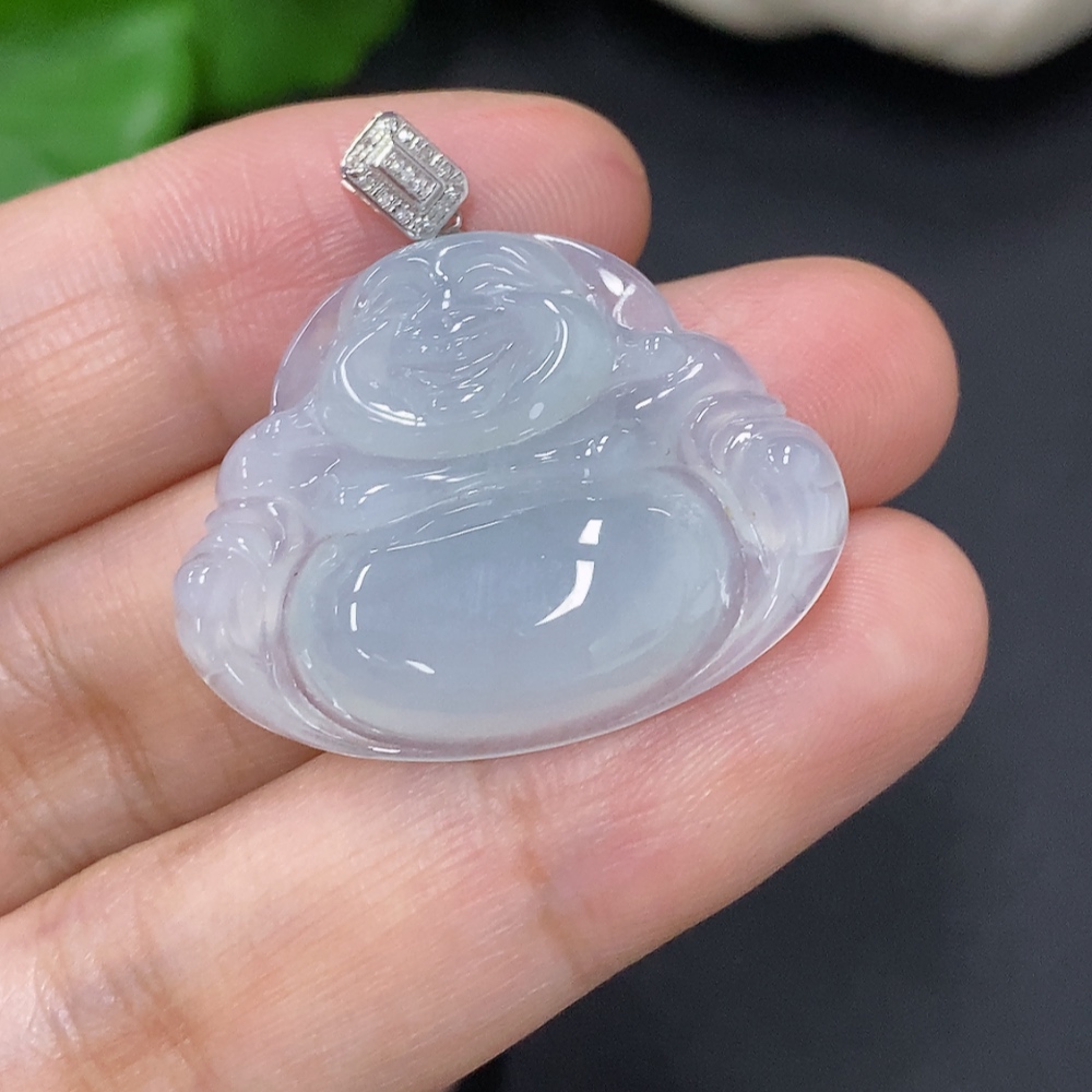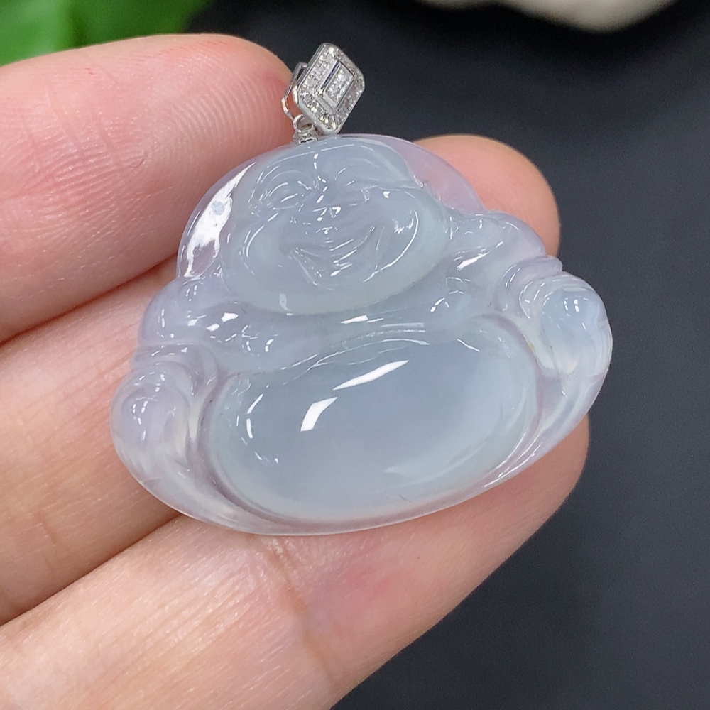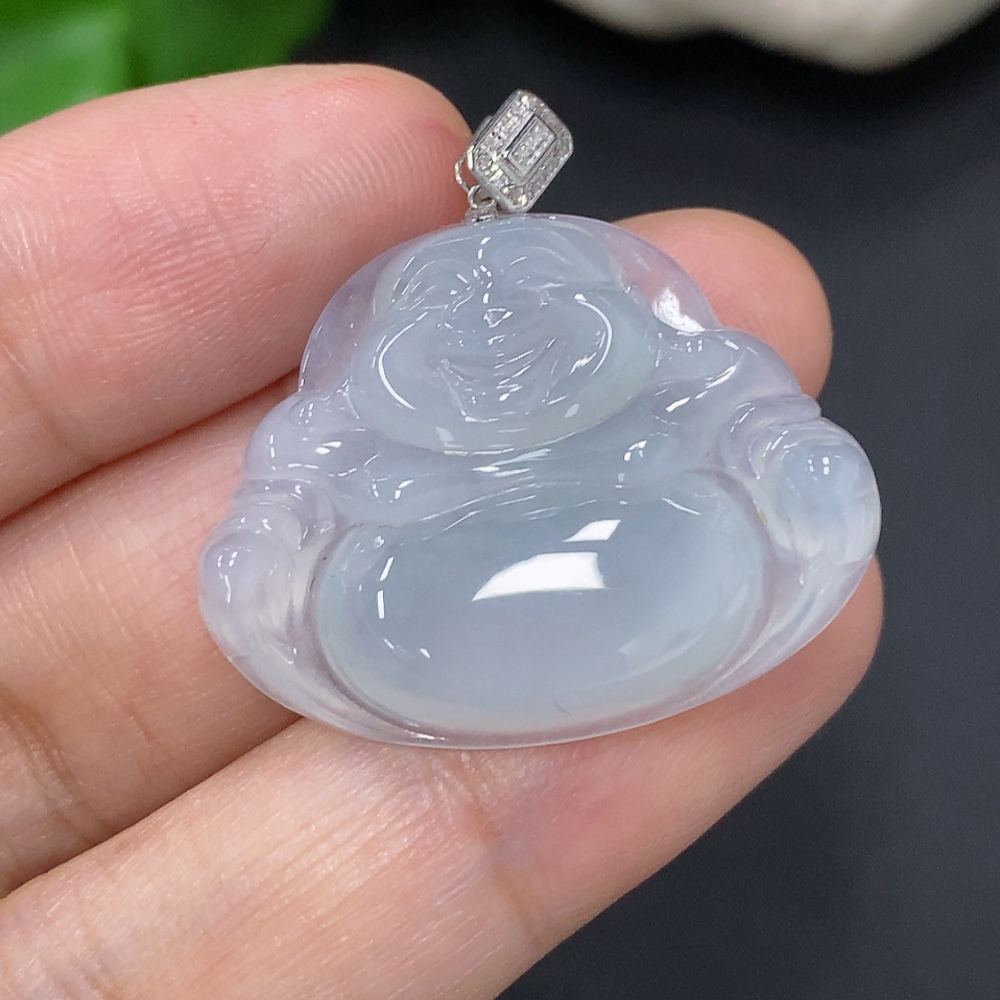 Jadeite Buddha Pendant with 18K Gold Bail, Total Weight Approx. 6.6g (Diamond Accented)