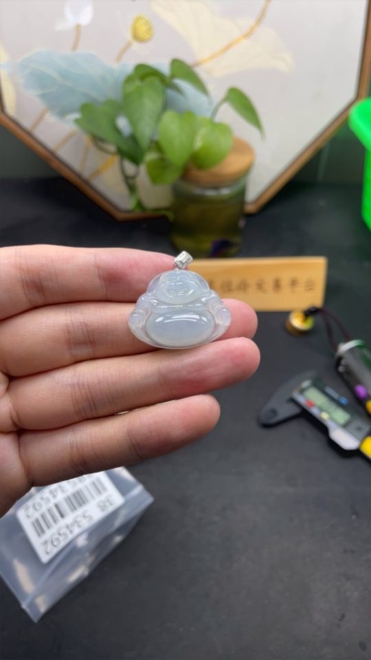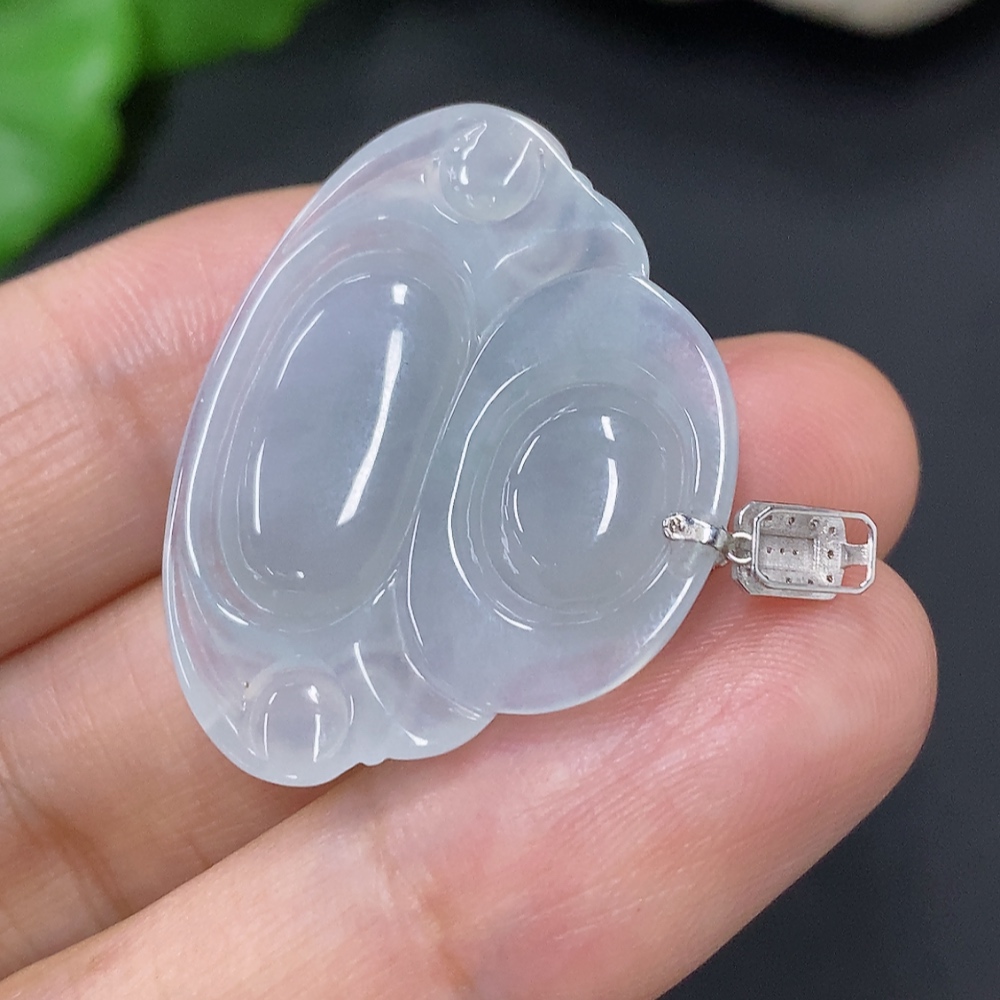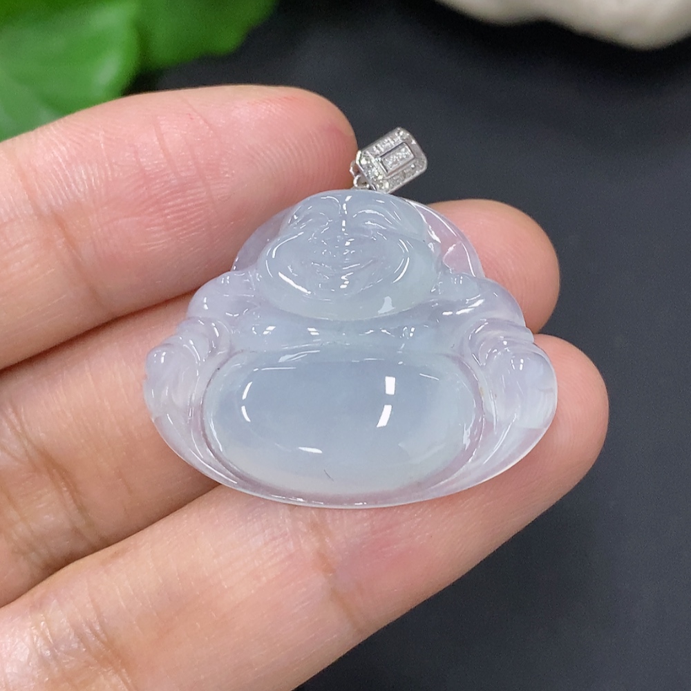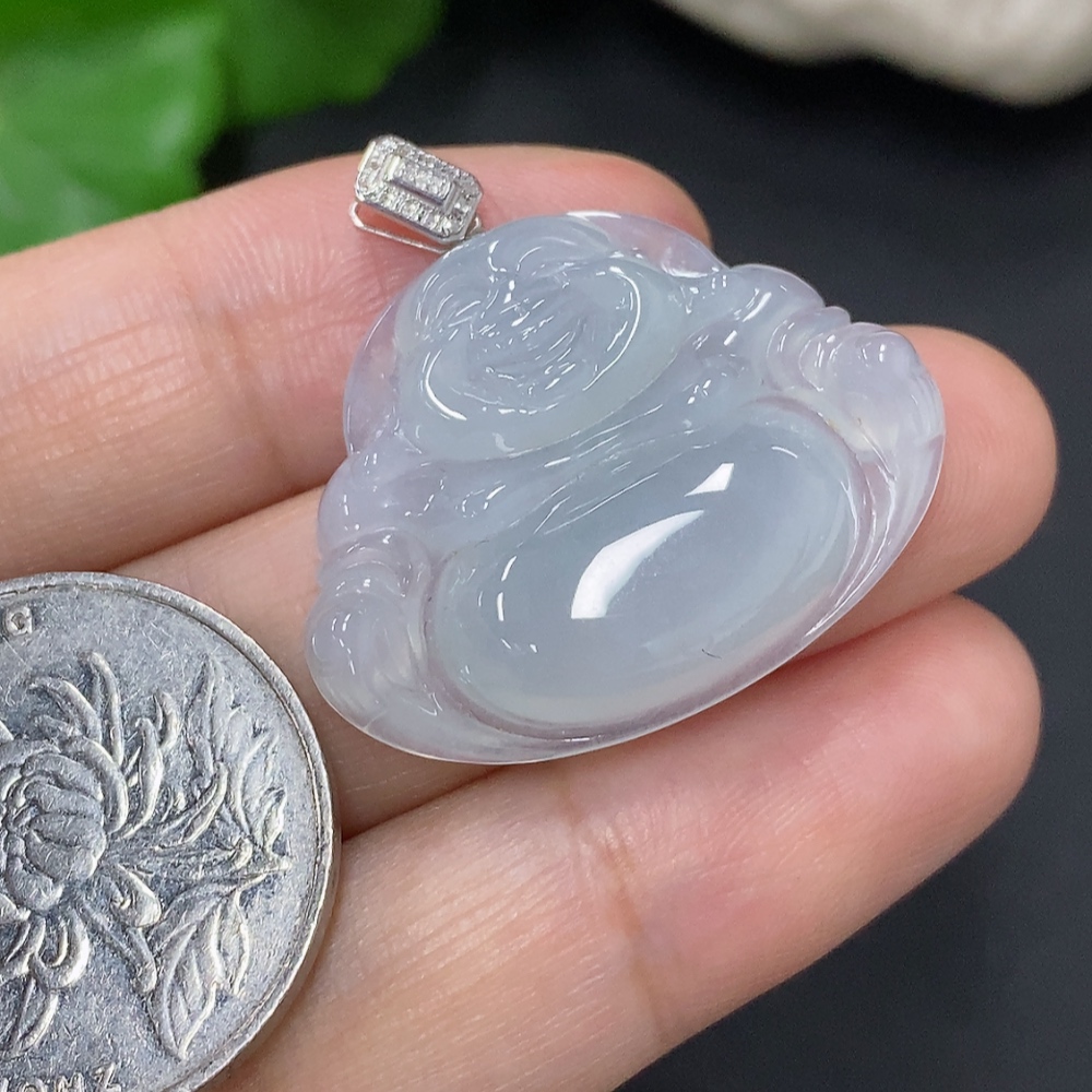 Jadeite Buddha Pendant with 18K Gold Bail, Total Weight Approx. 6.6g (Diamond Accented)