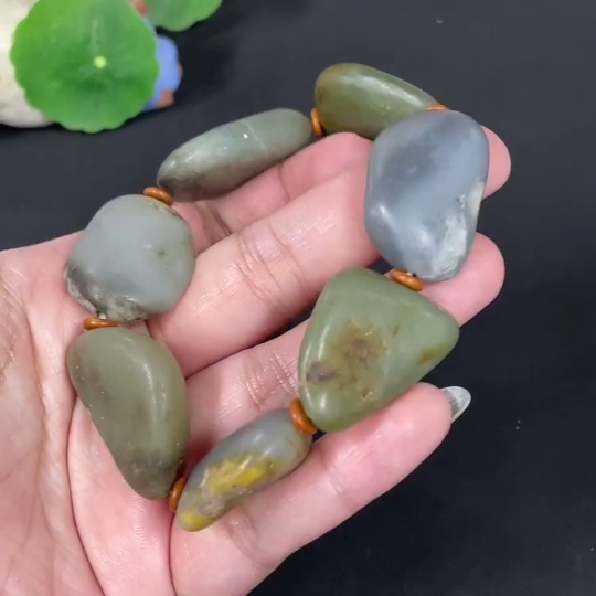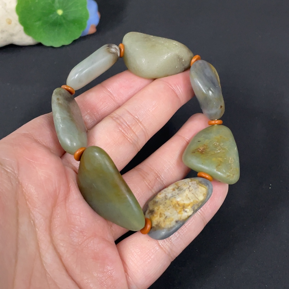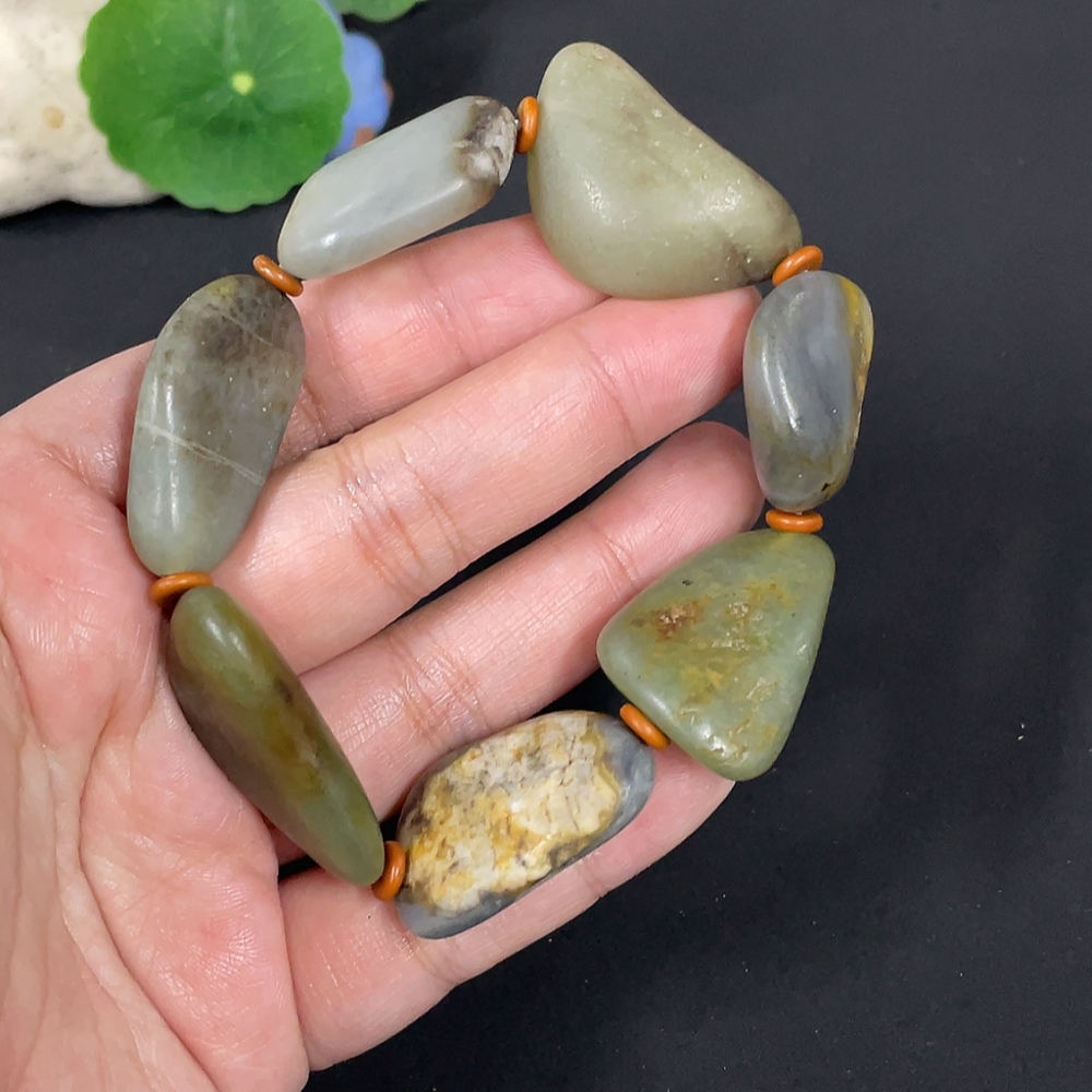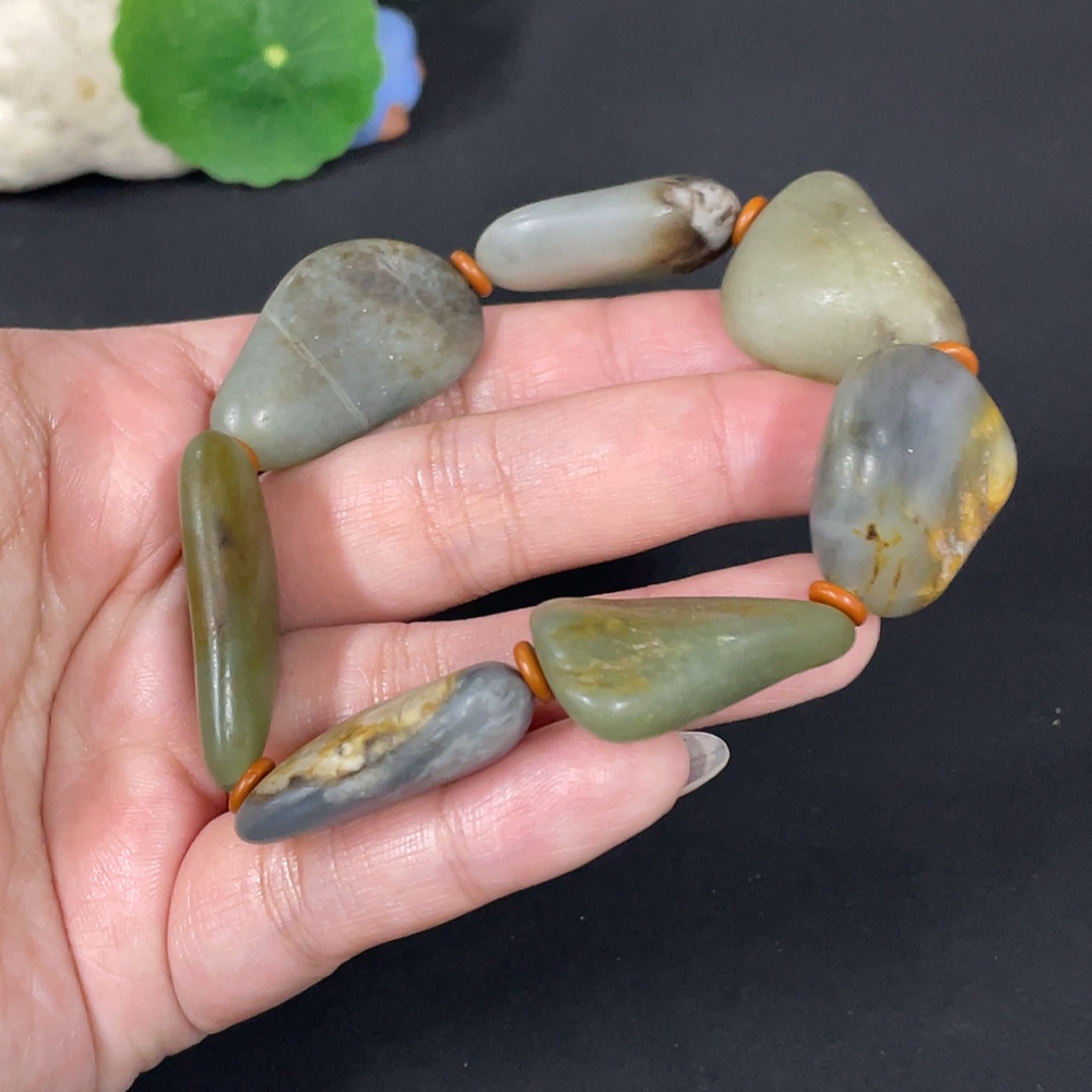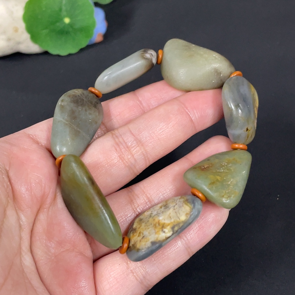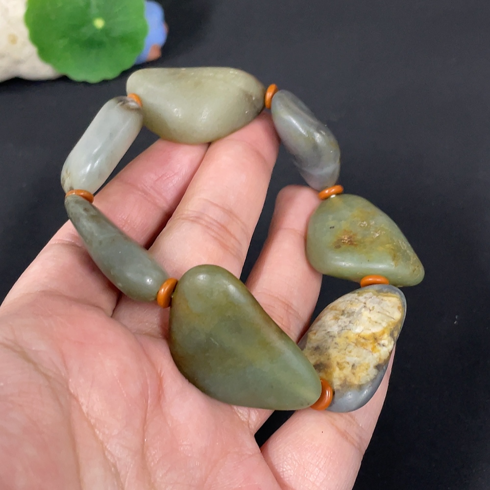 Hetian Jade Bracelet, Undetermined Skin Color Origin, Contains Other Mineral Components, Total Weight Approximately 75.9g