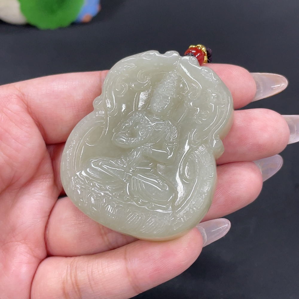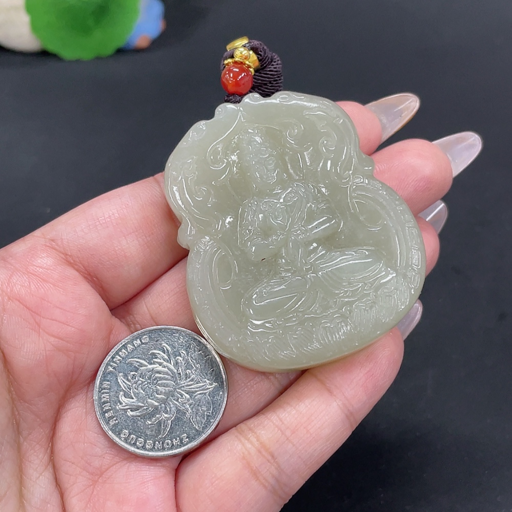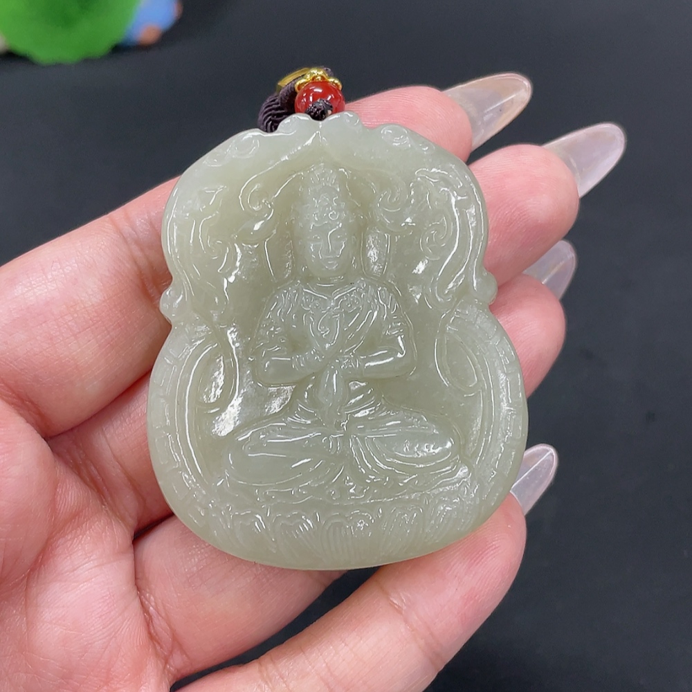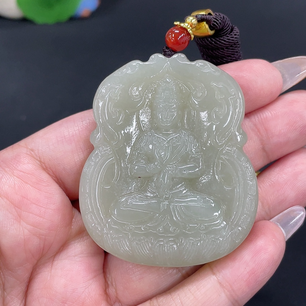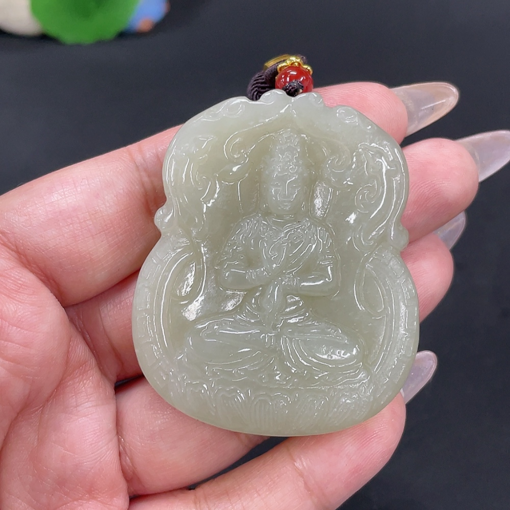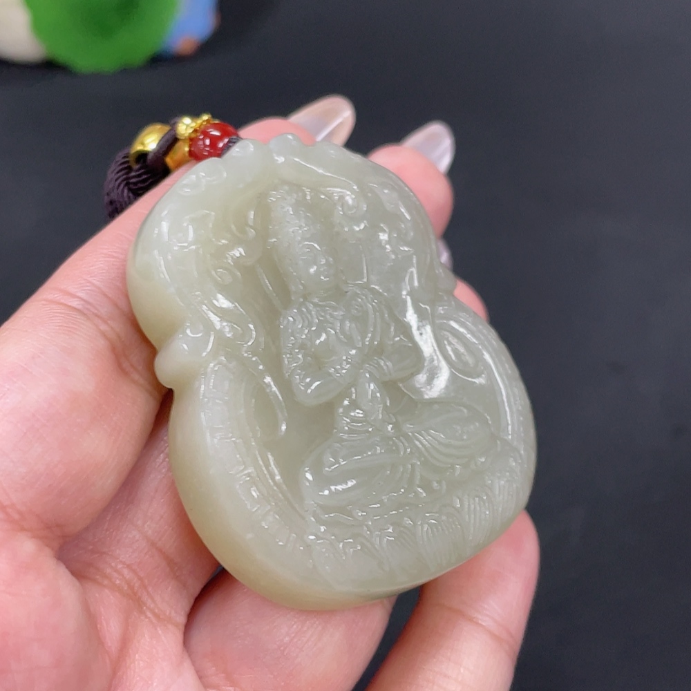 Hetian Jade Pendant Guanyin Total Weight Approx. [with rope] 64.9g Beads Not Hetian Jade