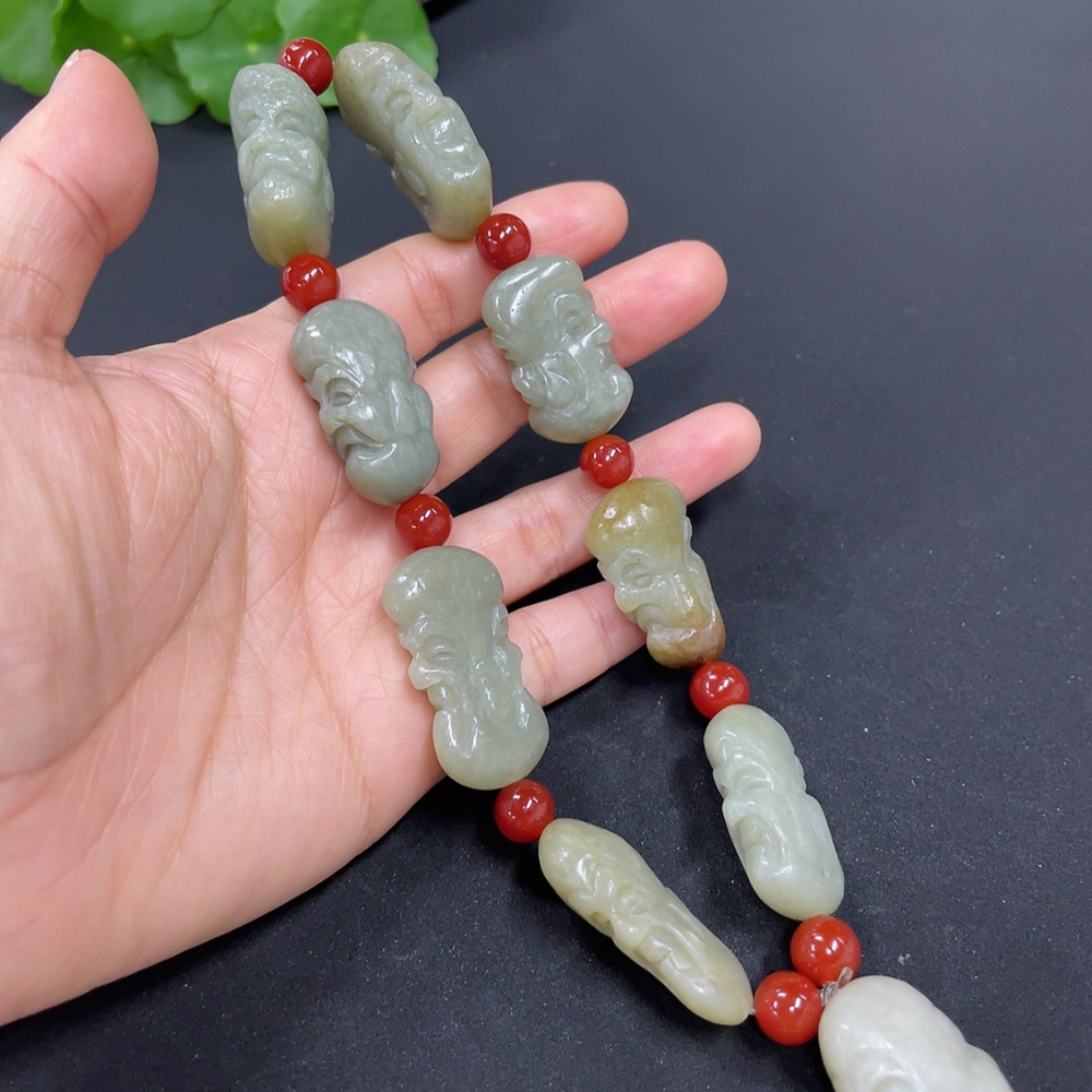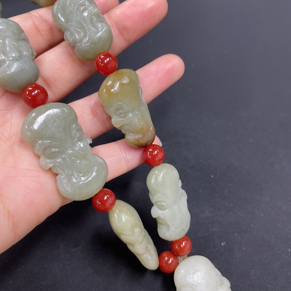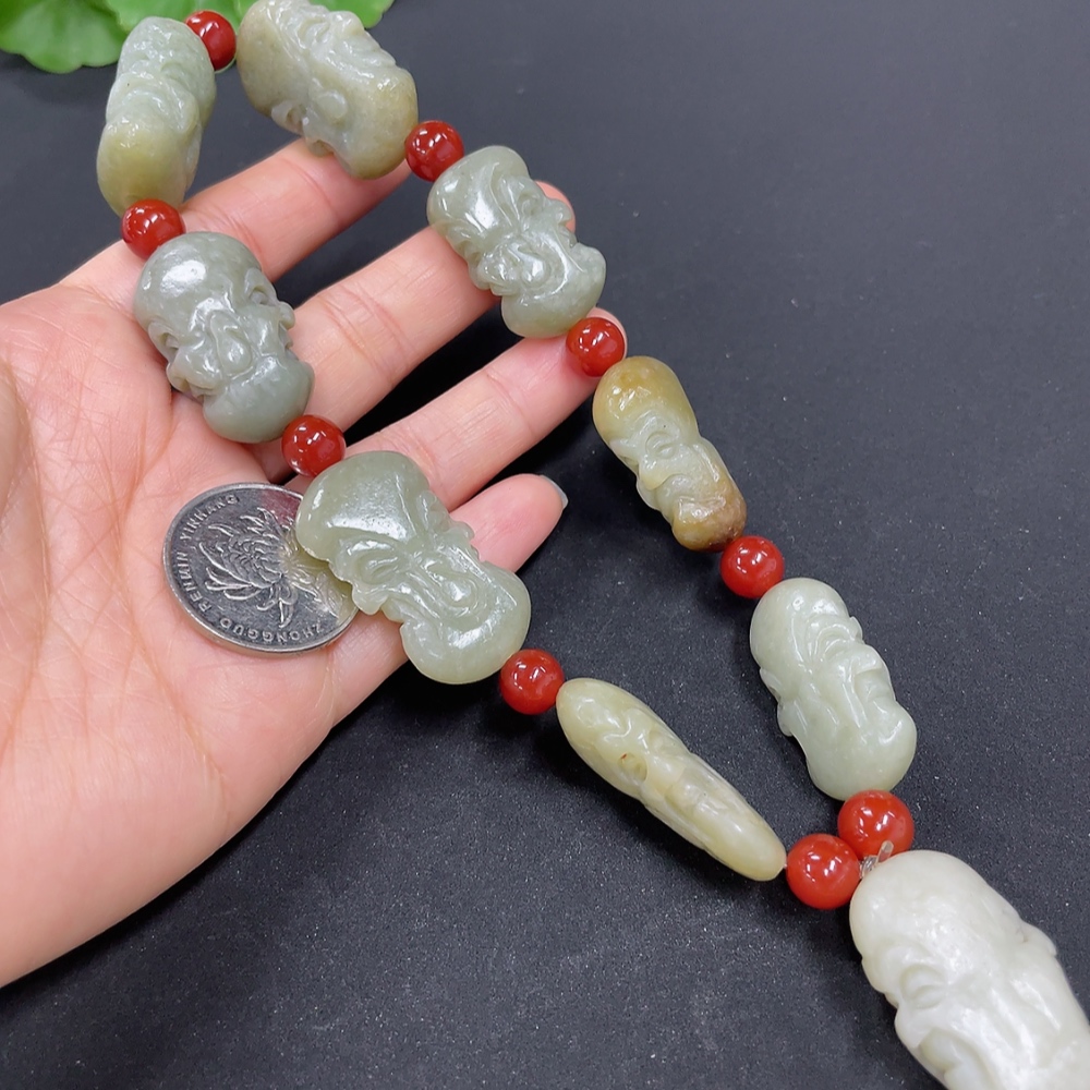 Hetian Jade Eighteen Arhats Bead Necklace
