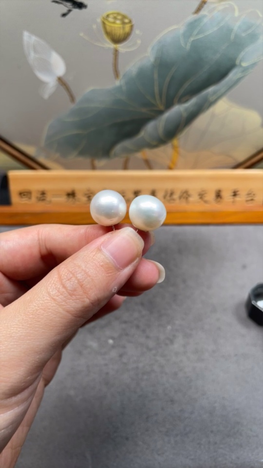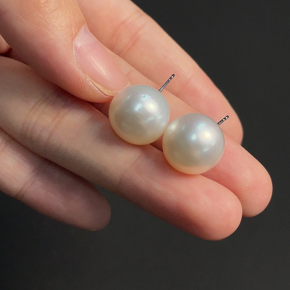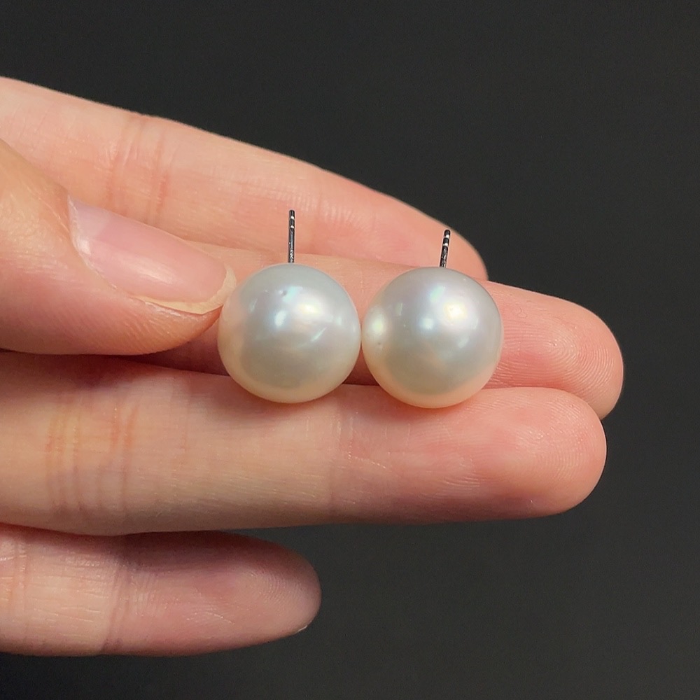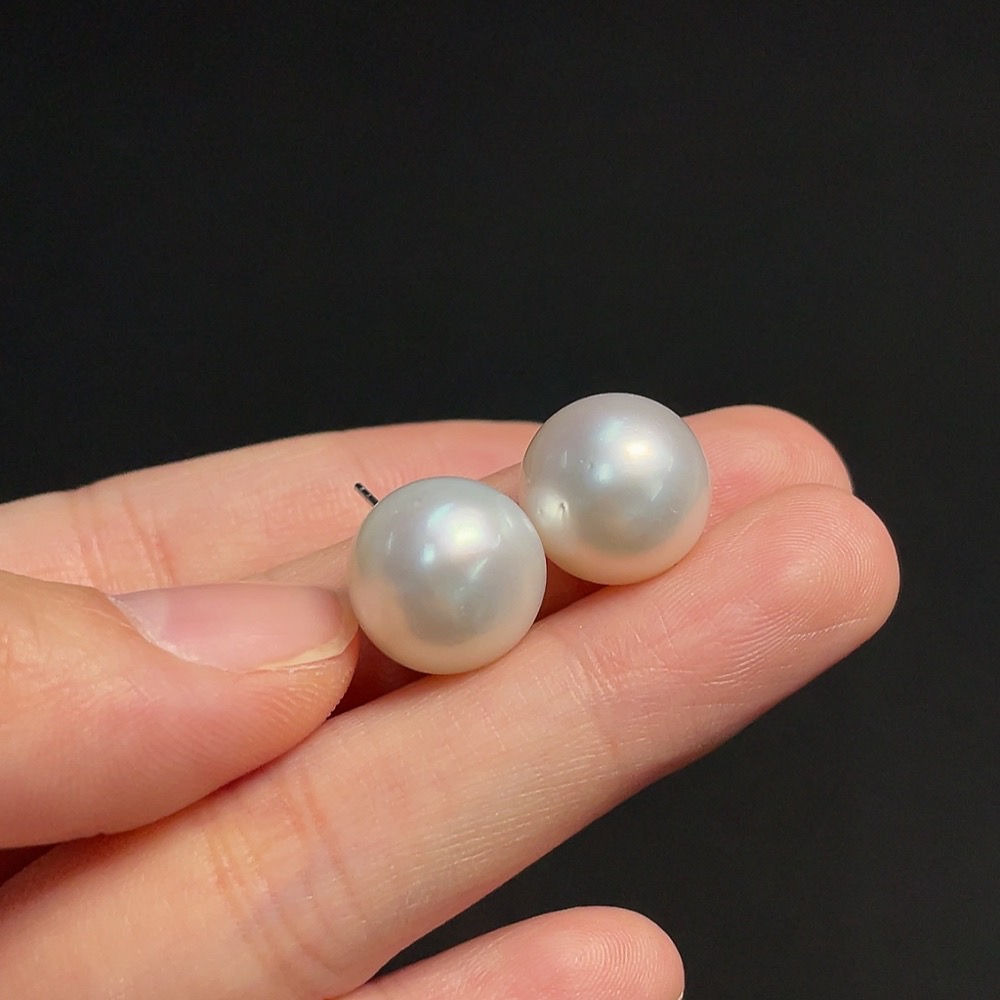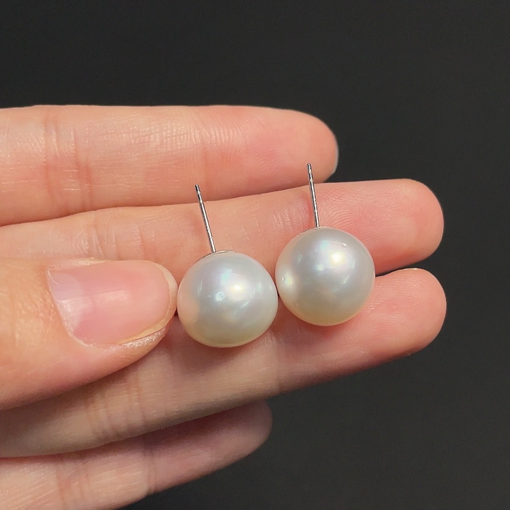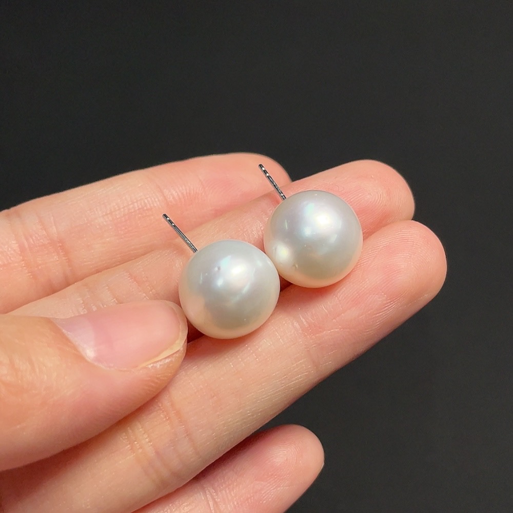 Seawater pearl stud earrings, 18k gold, card 12.8mm approx., total weight approx. 6.54g