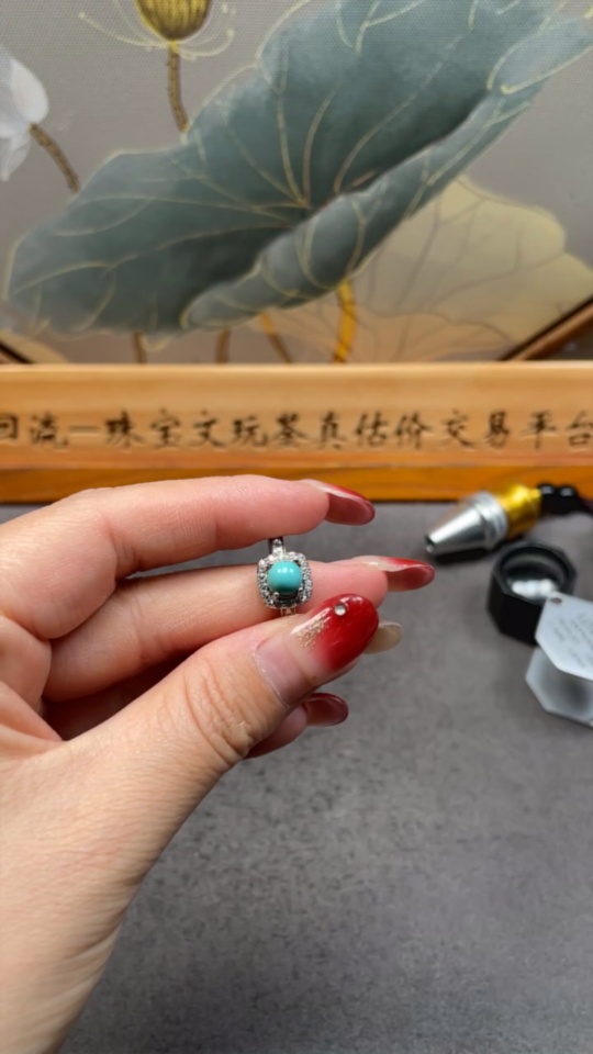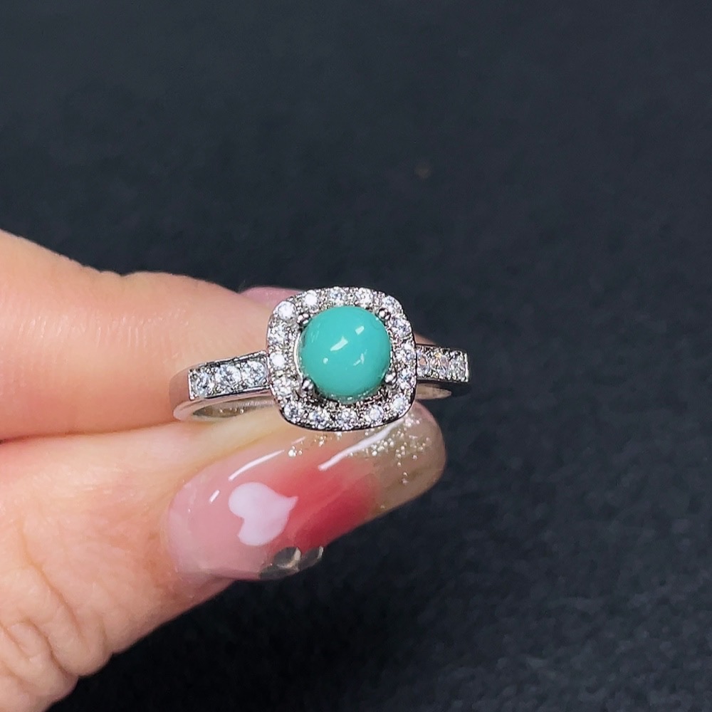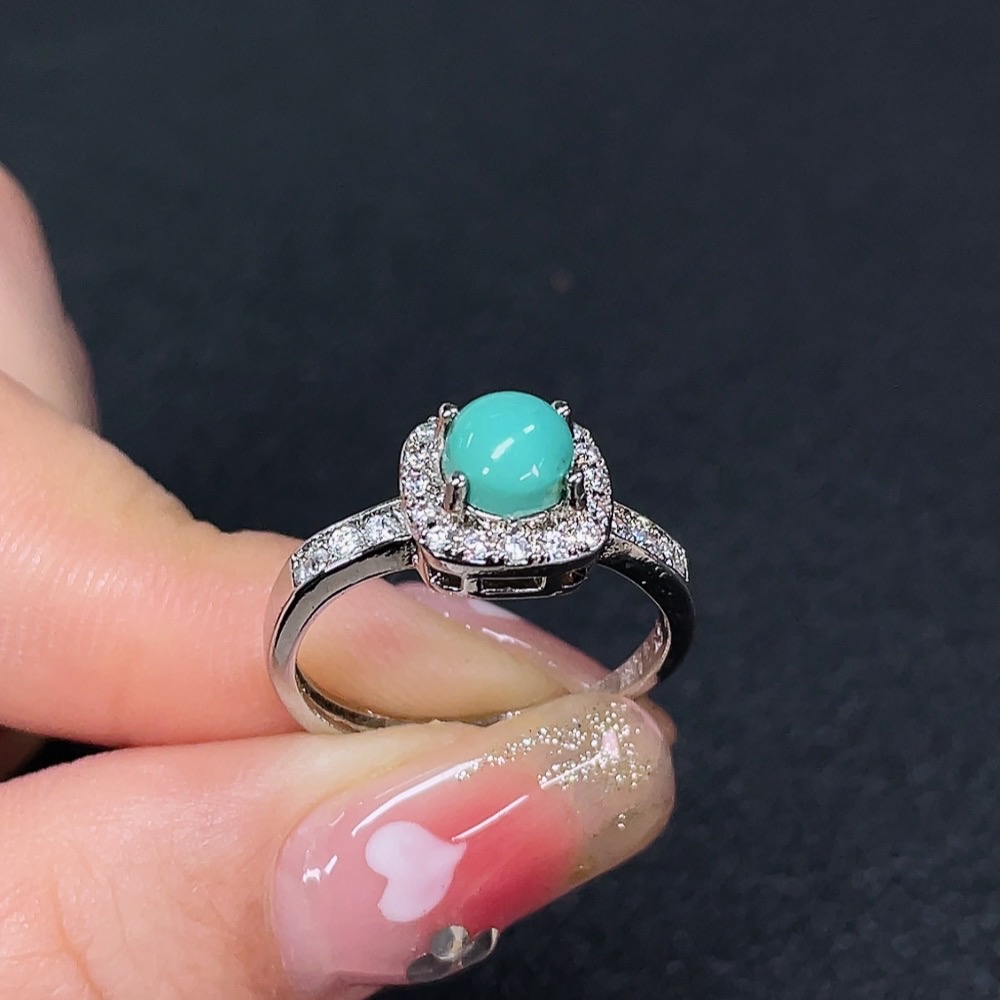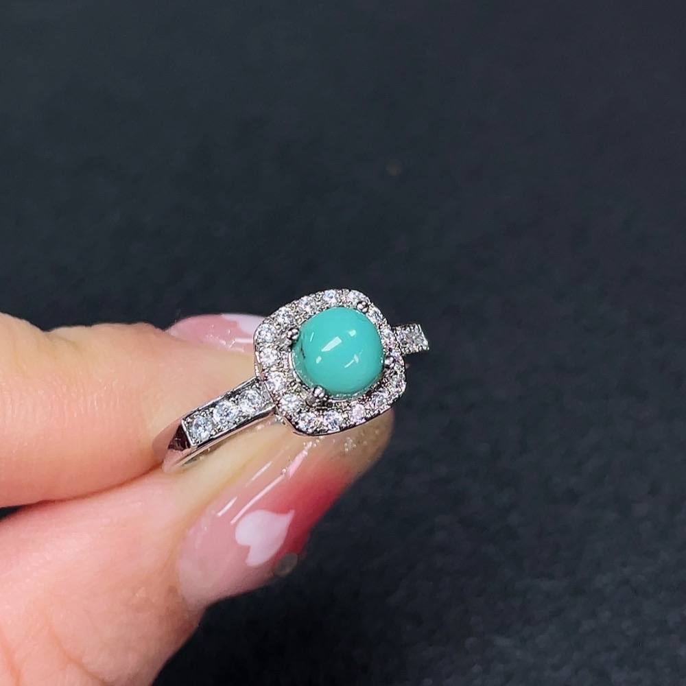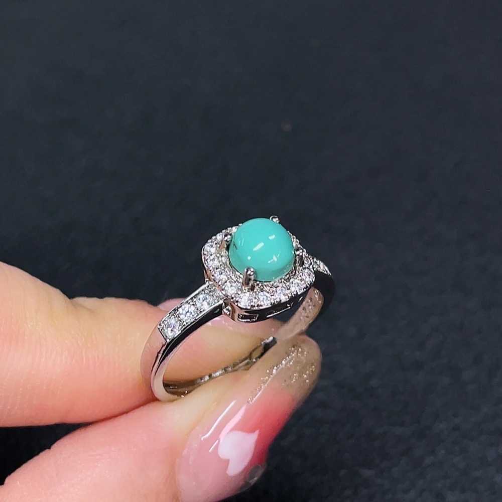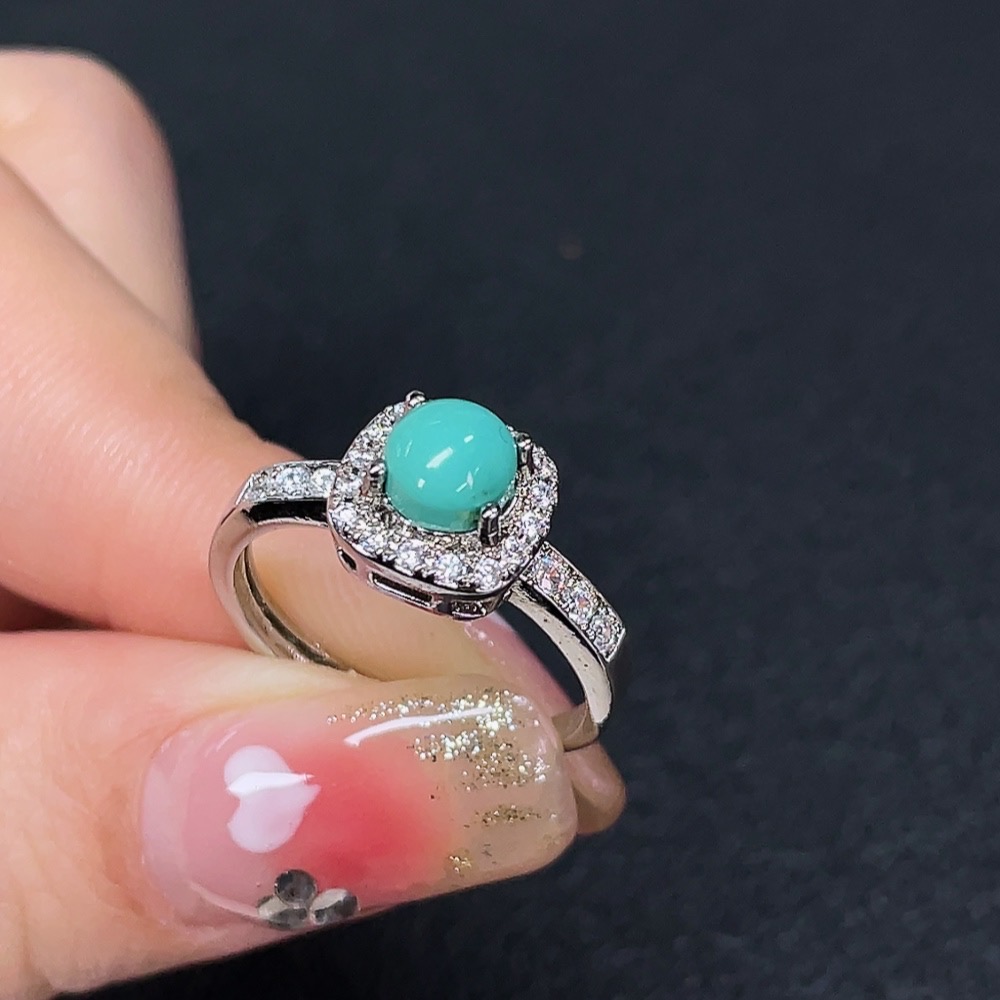 Turquoise inlaid ring, non-gold setting, adjustable, total weight approximately 2.35g