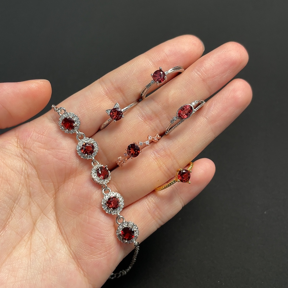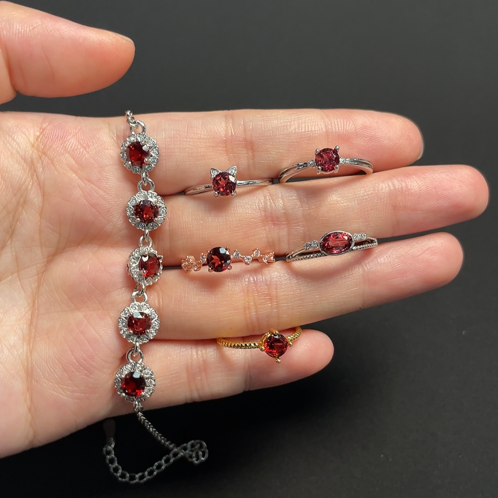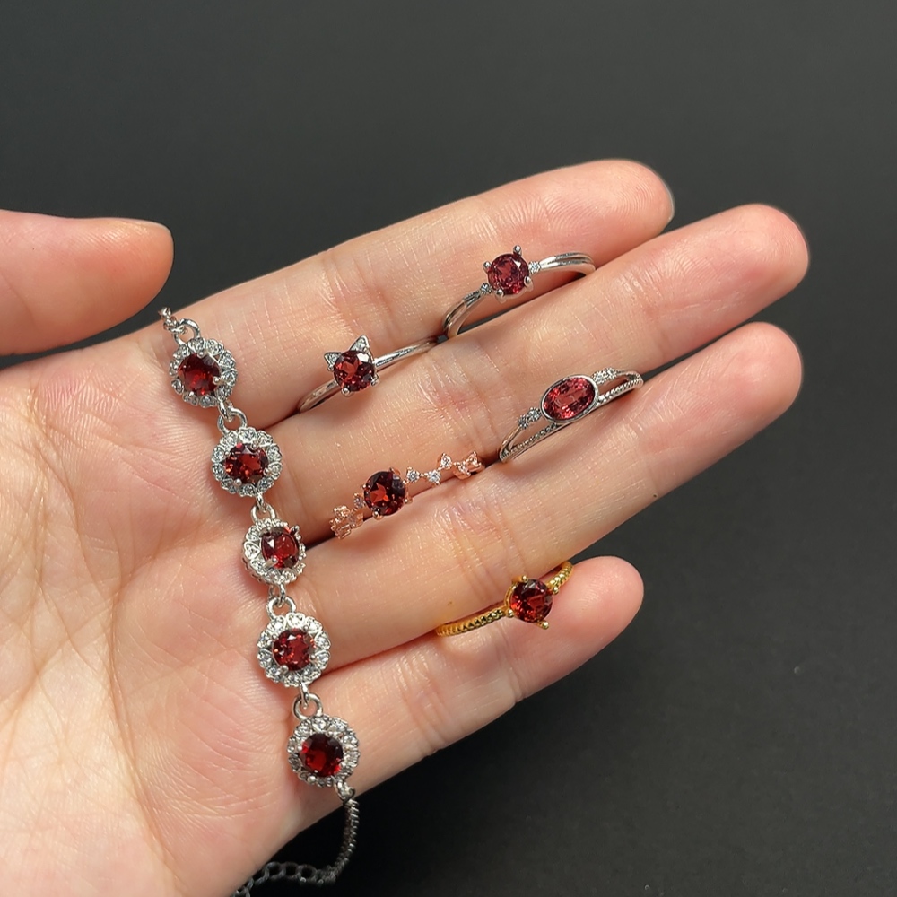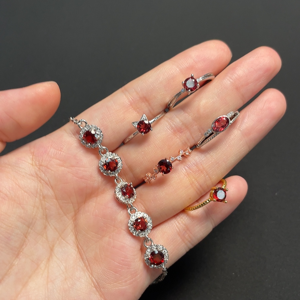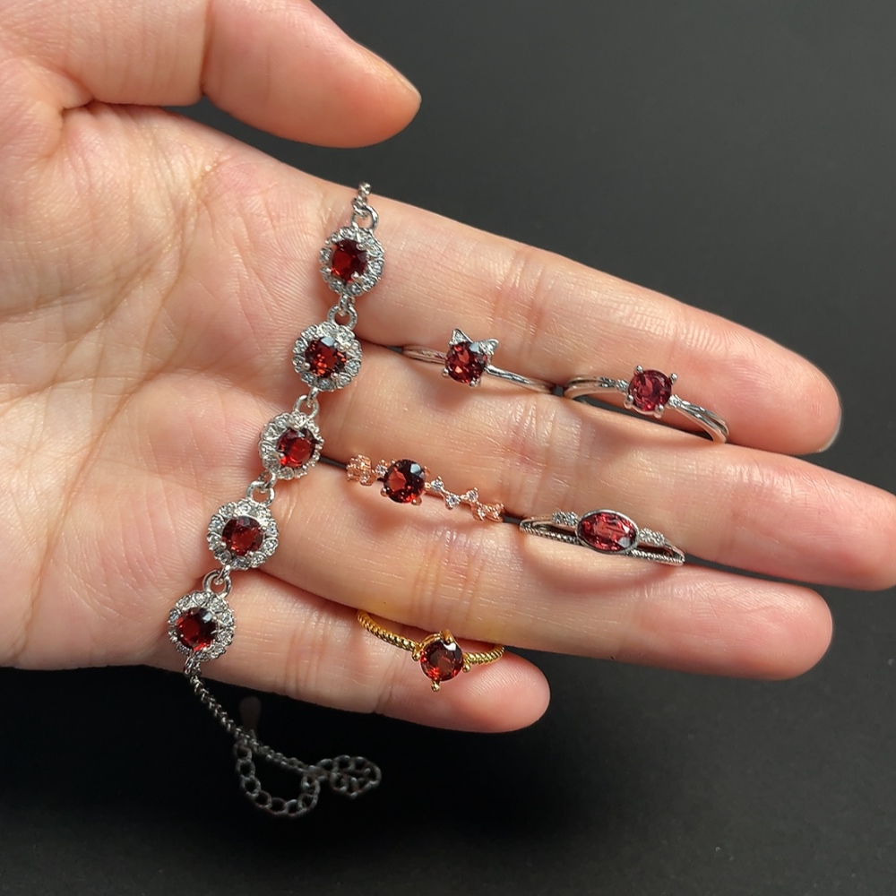 Garnet Ring + Bracelet Non-Gold Adjustable Total Weight Approx. 10.33g Sell as a Lot