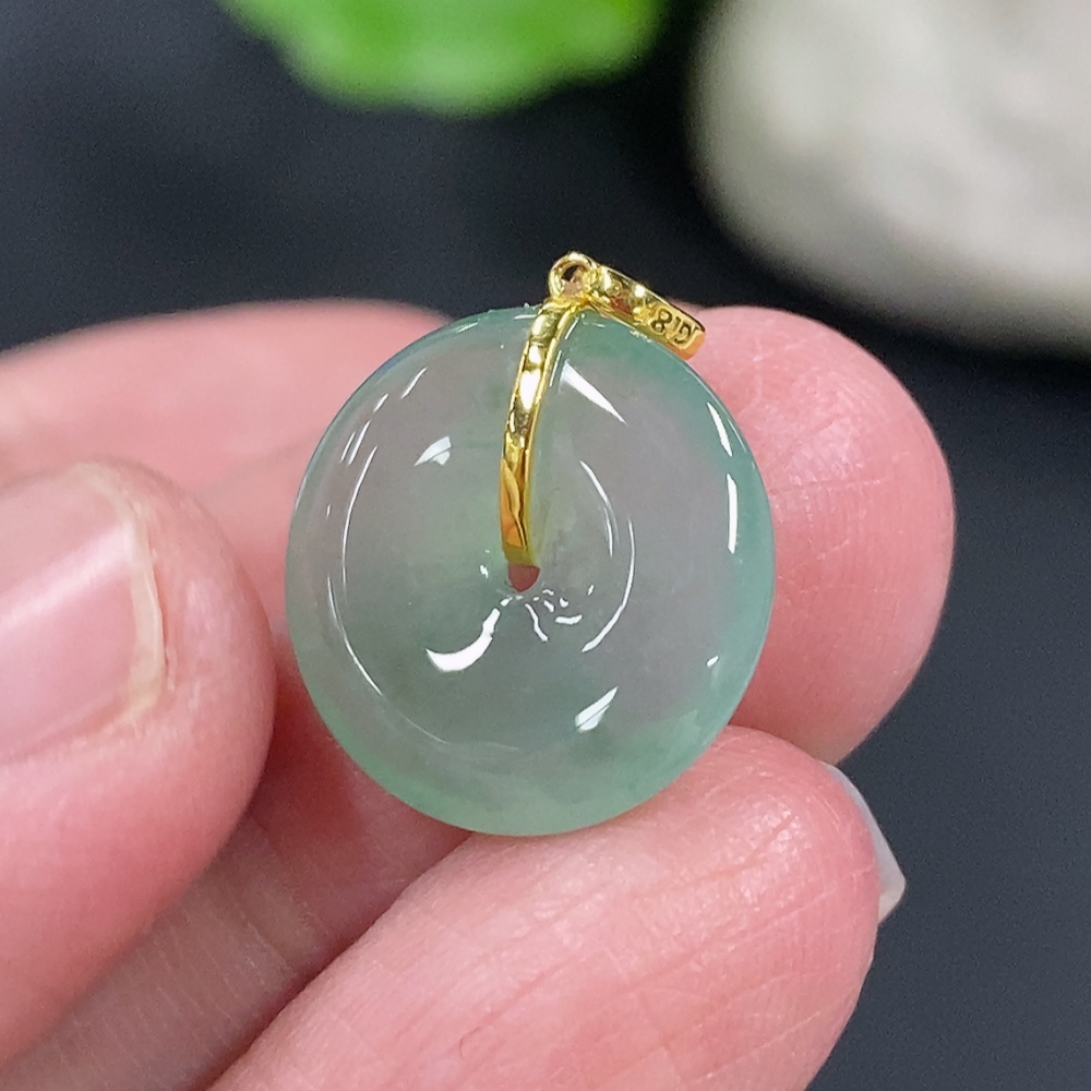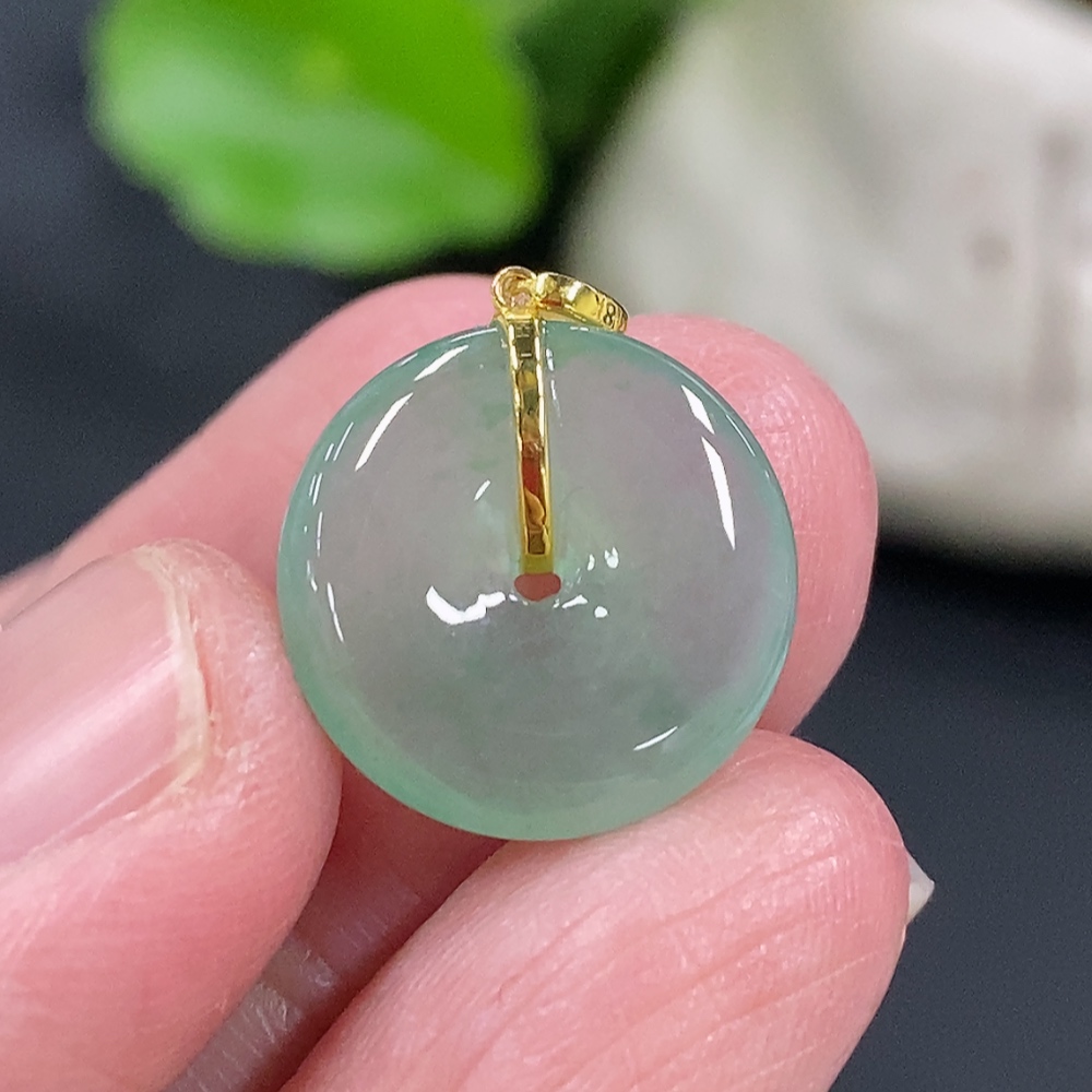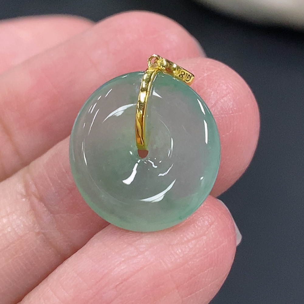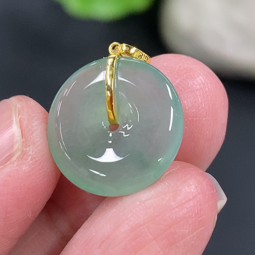 Jadeite Safety Buckle Pendant, Total Weight Approx. 1.59g, 18k Gold Buckle