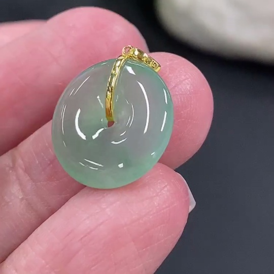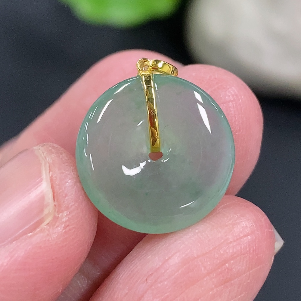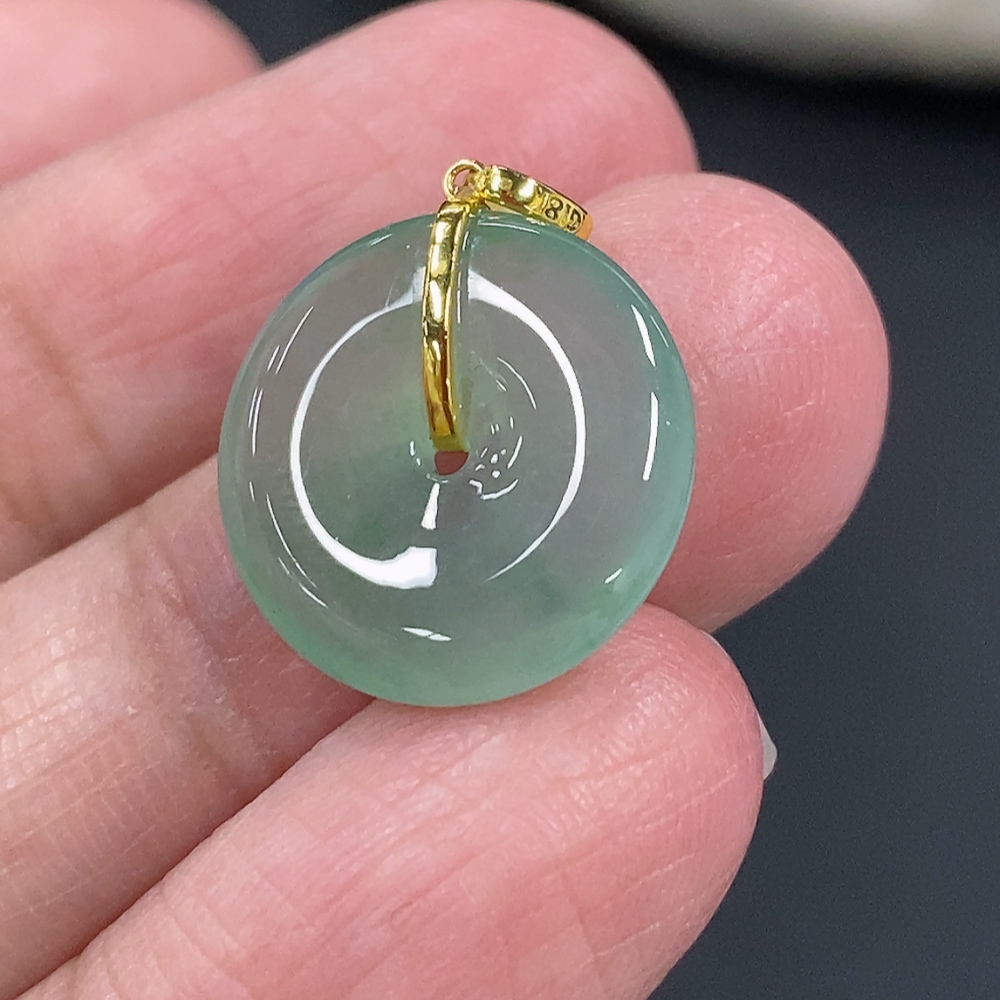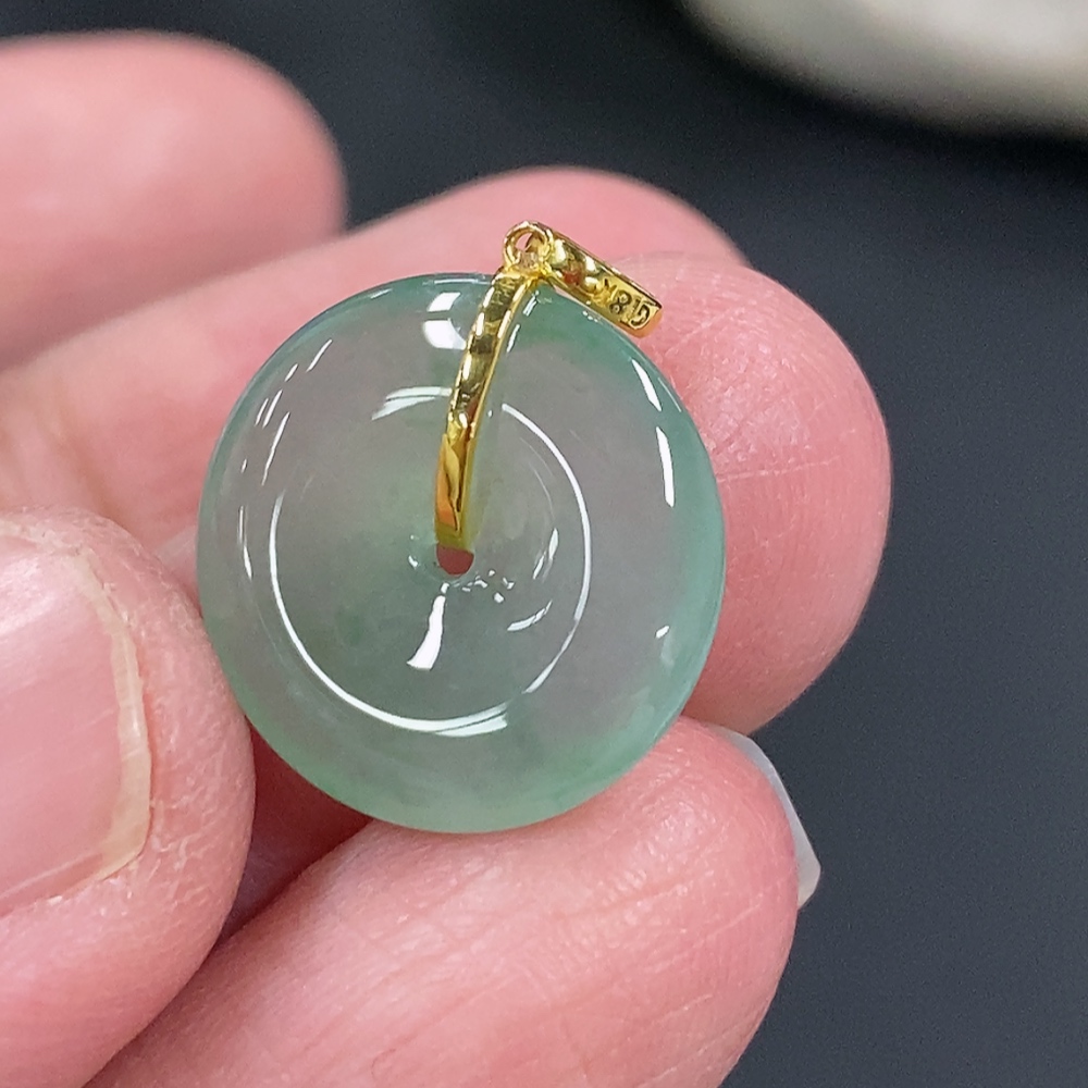 Jadeite Safety Buckle Pendant, Total Weight Approx. 1.59g, 18k Gold Buckle