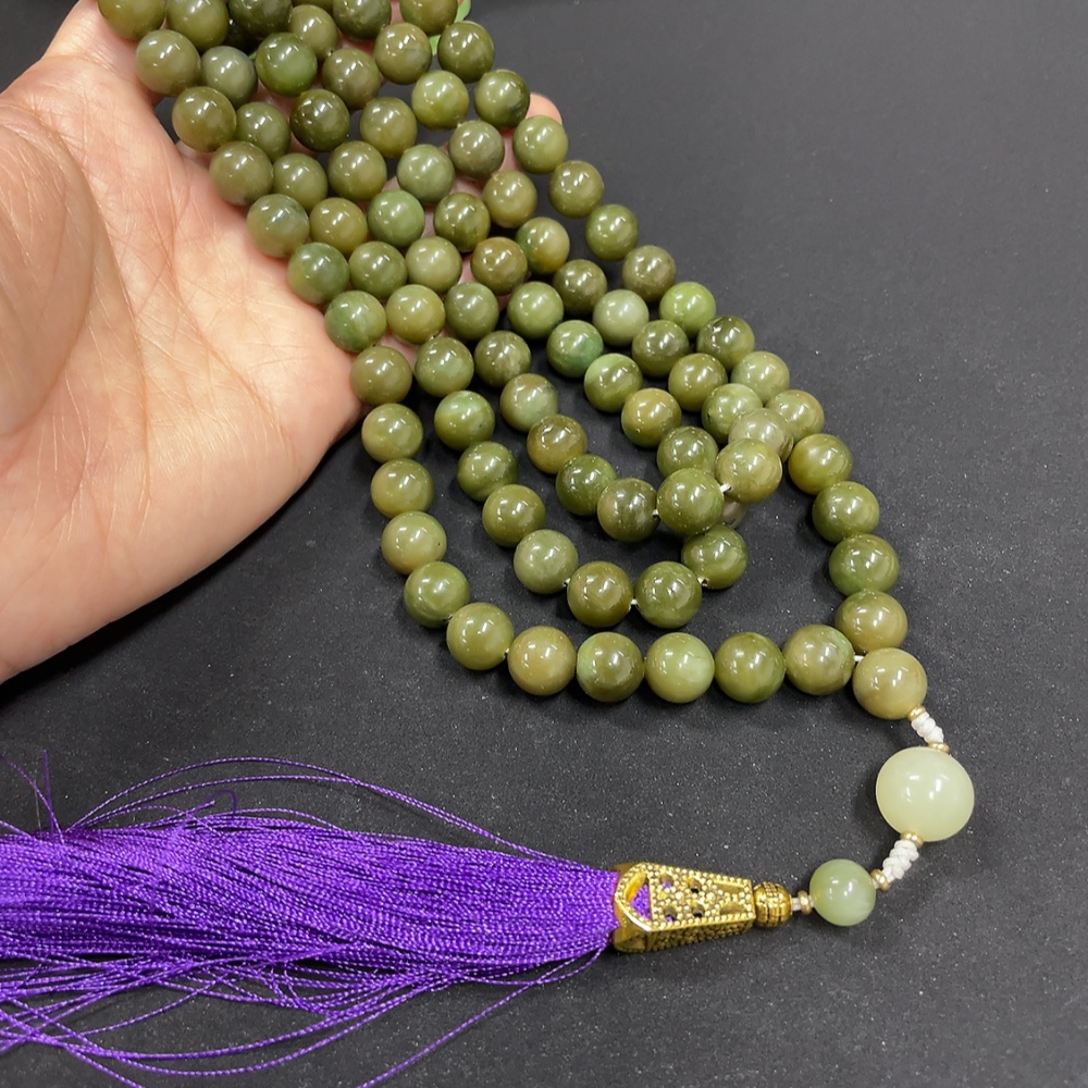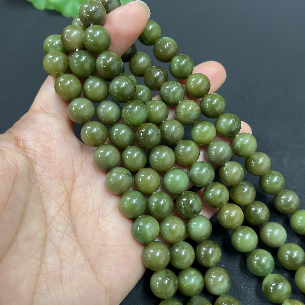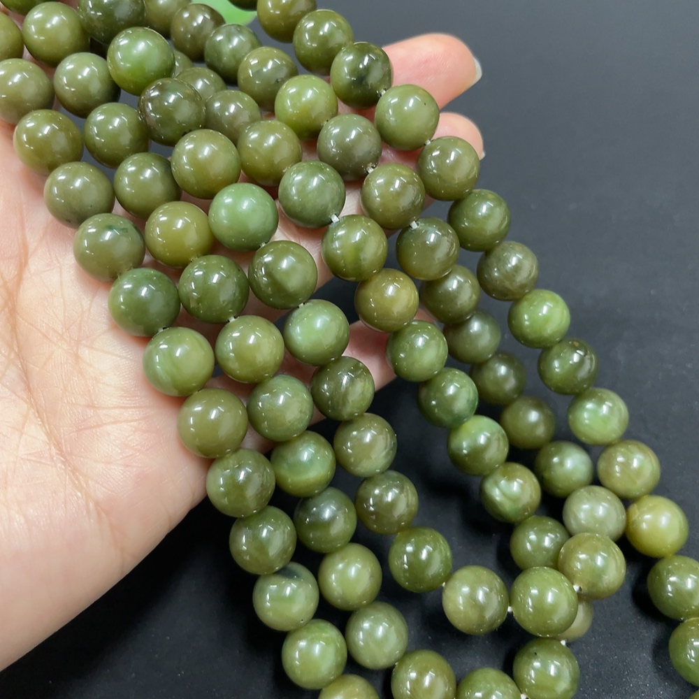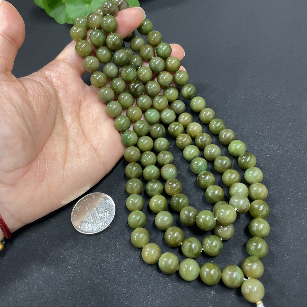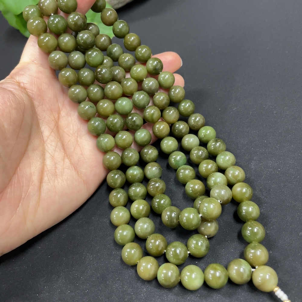 Hetian Jade Bead Necklace, approx. 9.7mm, non-gold inlaid, total weight approx. 172.7g