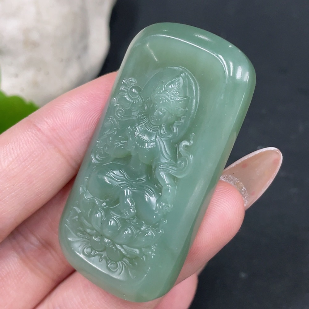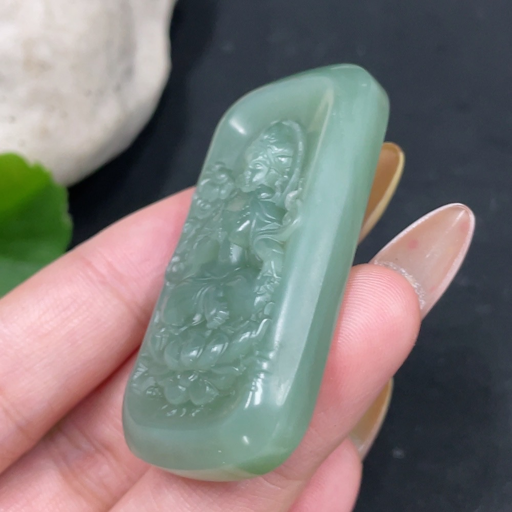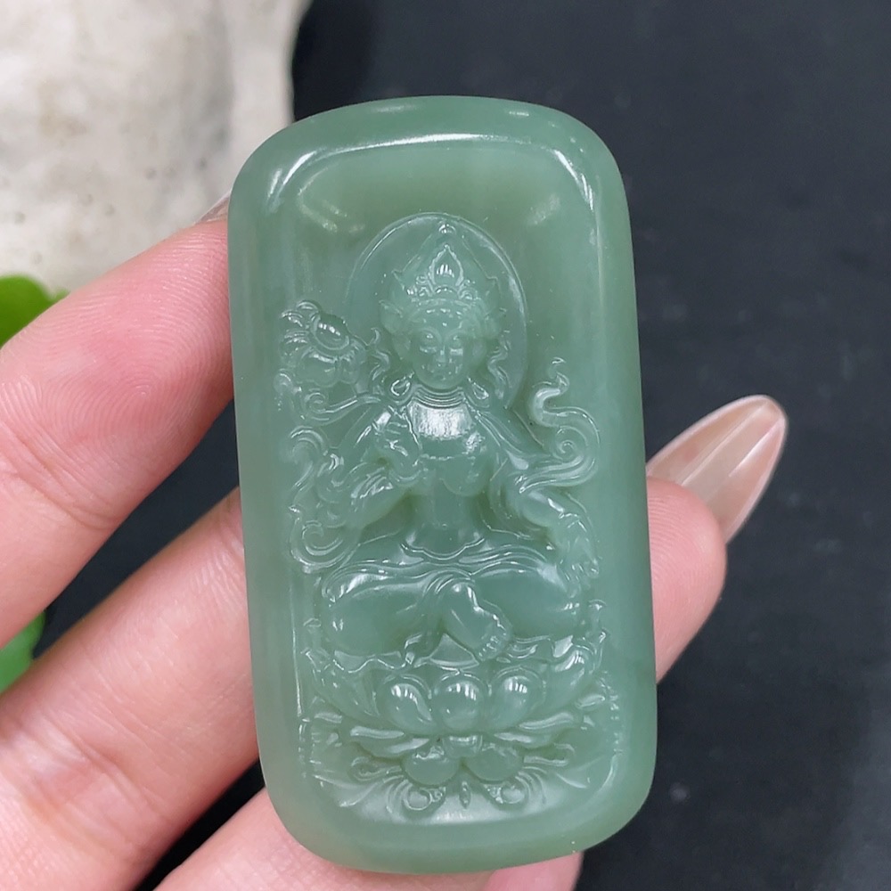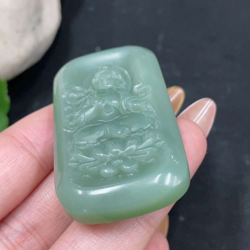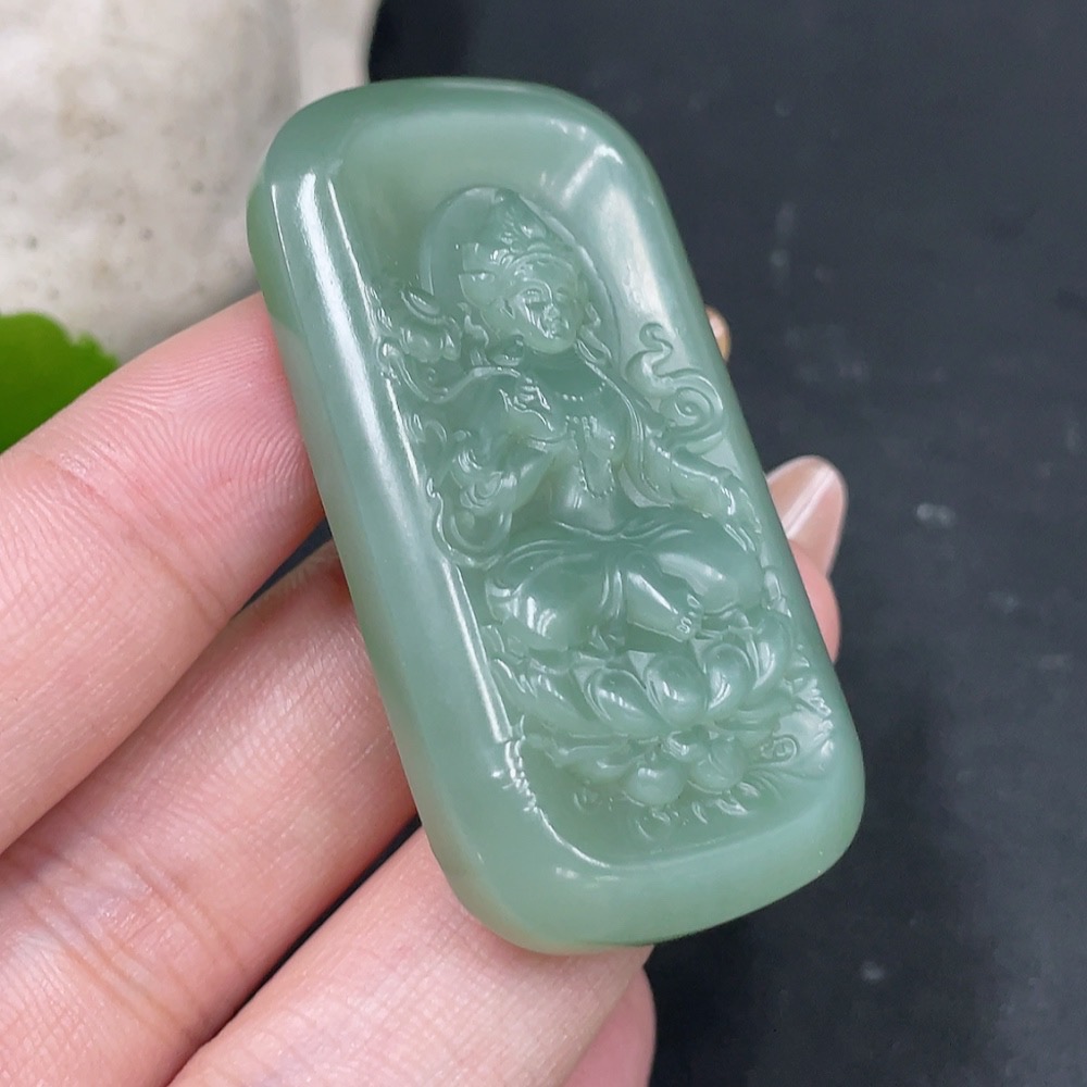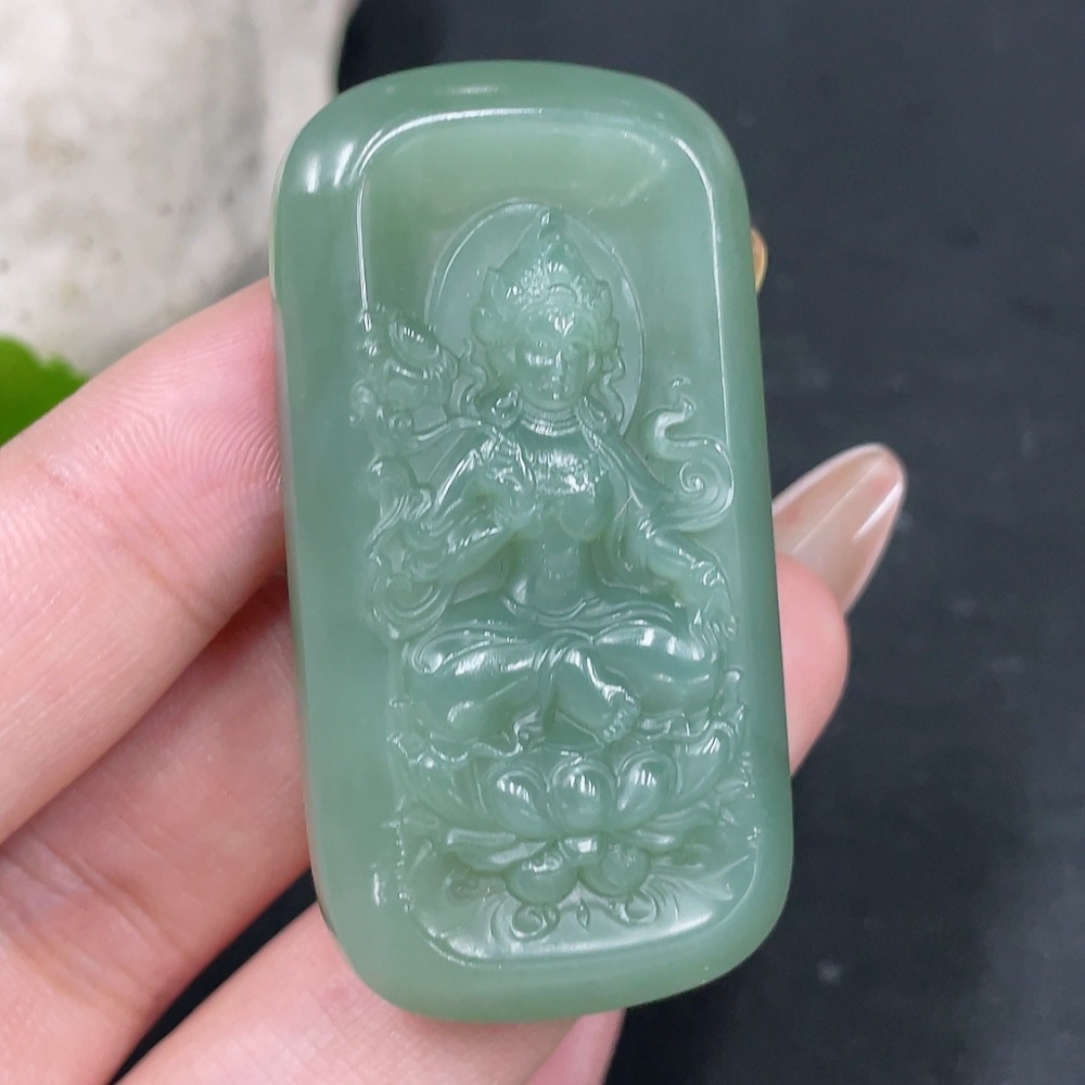 Hetian Jade Pendant Green Tara Total Weight Approx. 27.4g