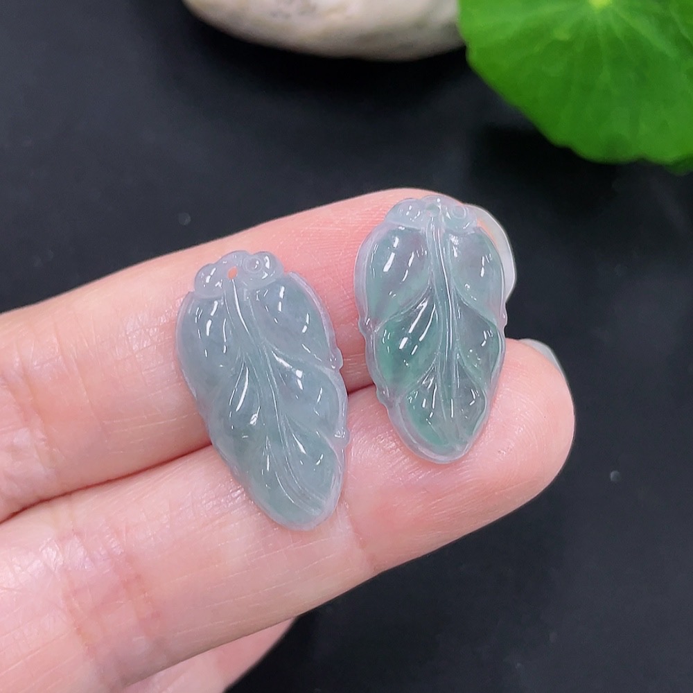 Trezaar - Jadeite Leaf Pendants Sell as a Lot