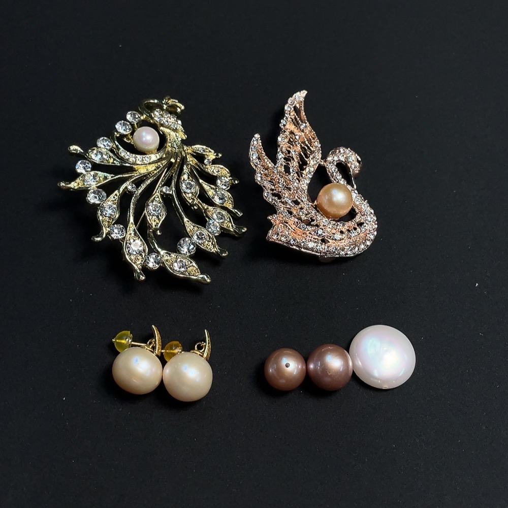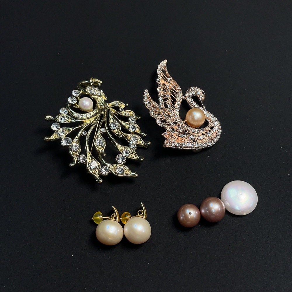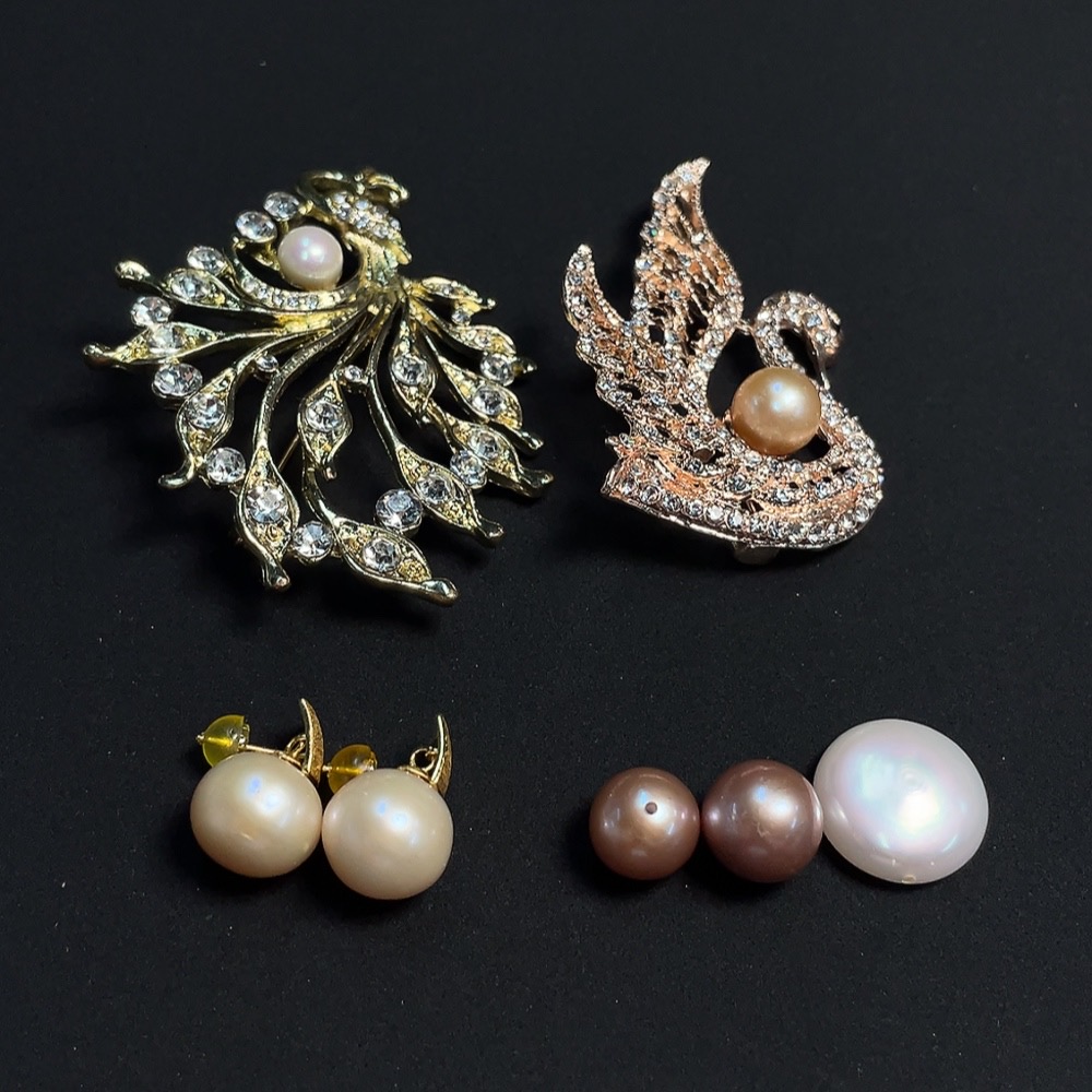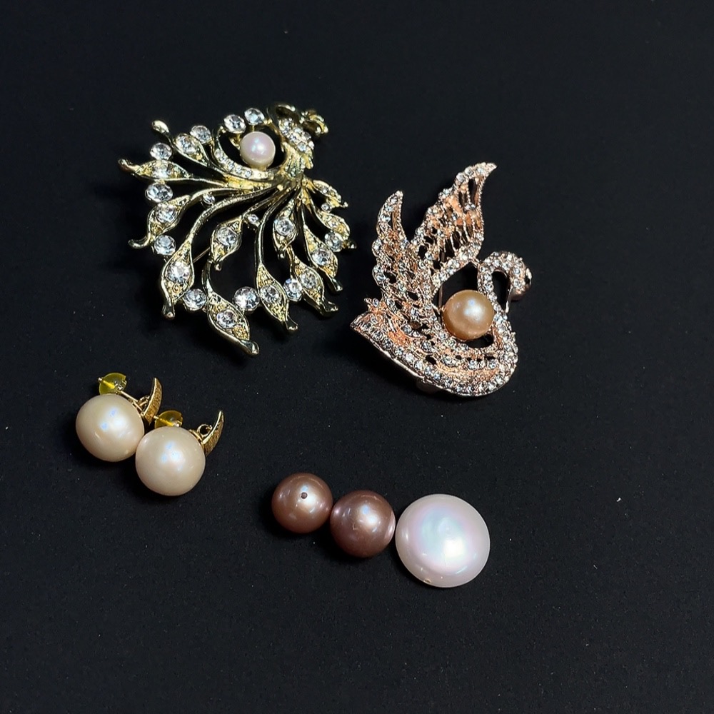 Pearl-set earrings + brooch + loose beads, non-gold setting, total weight approximately 46.27g