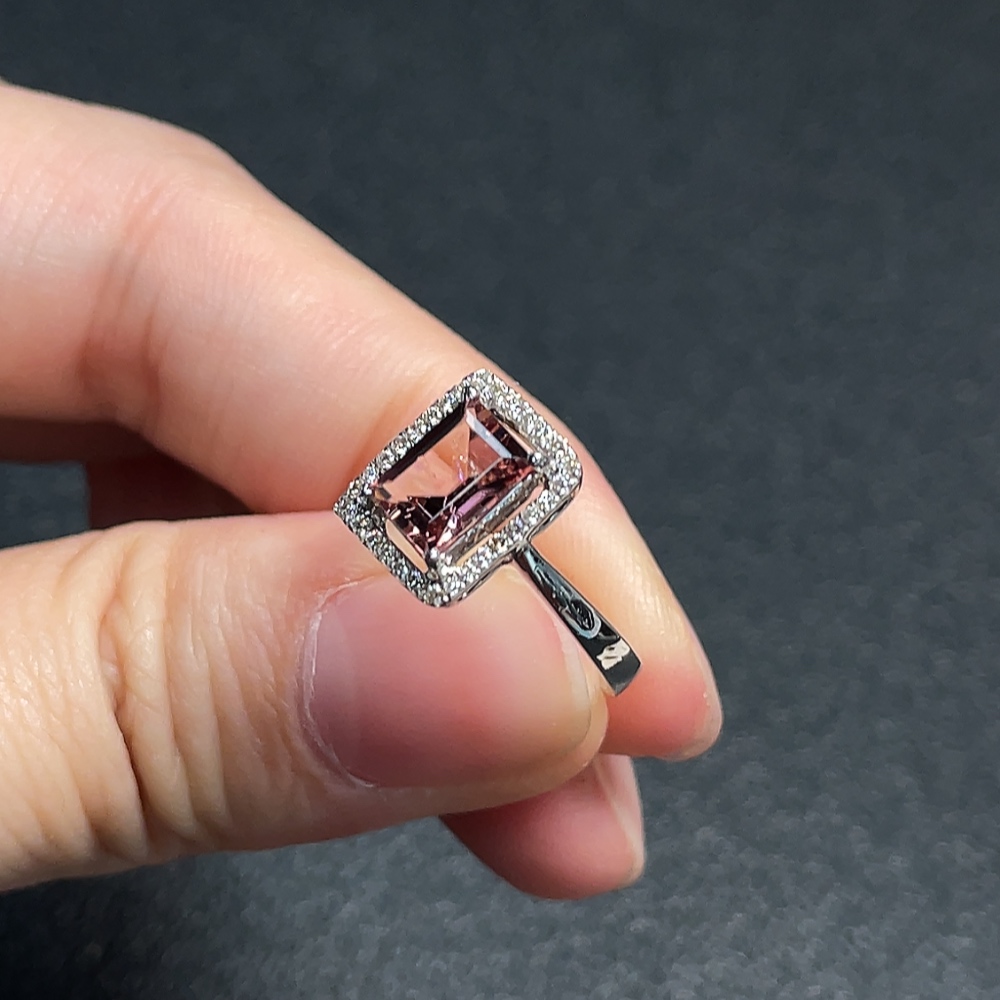Tourmaline ring with diamond accents, 69% gold content, total weight approximately 2.43g, size 12