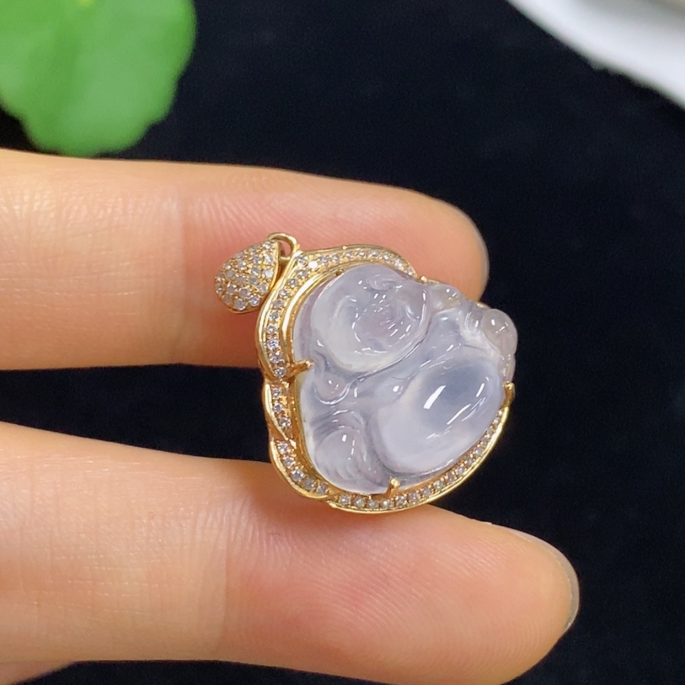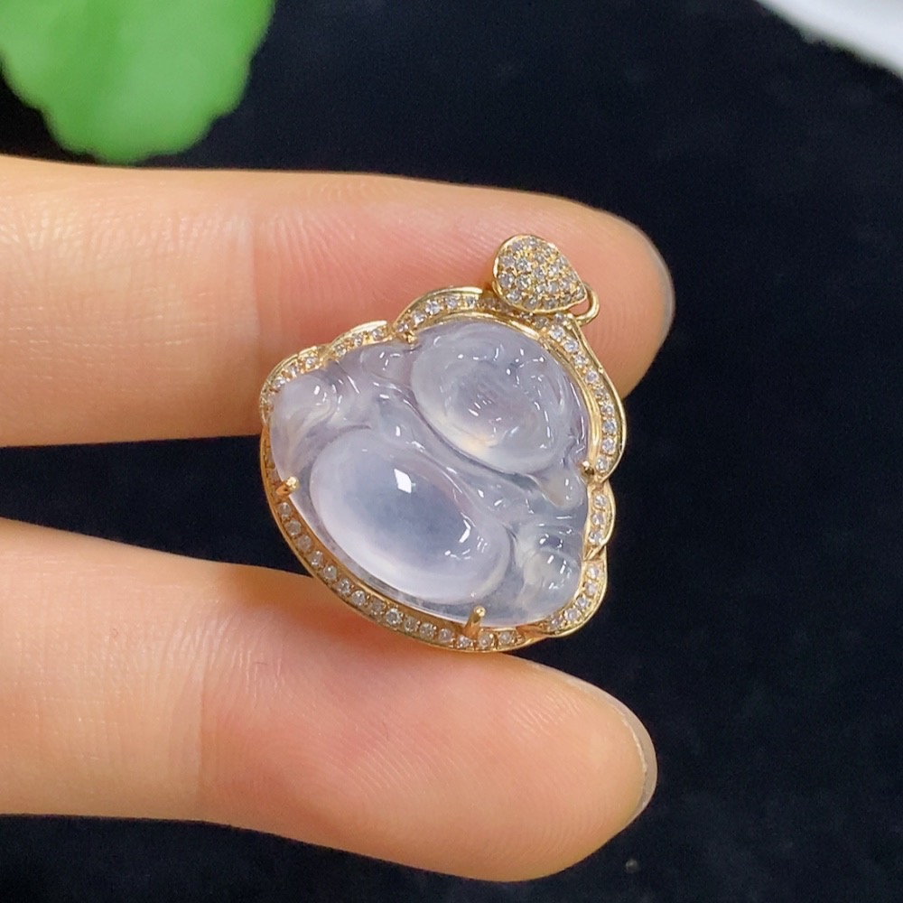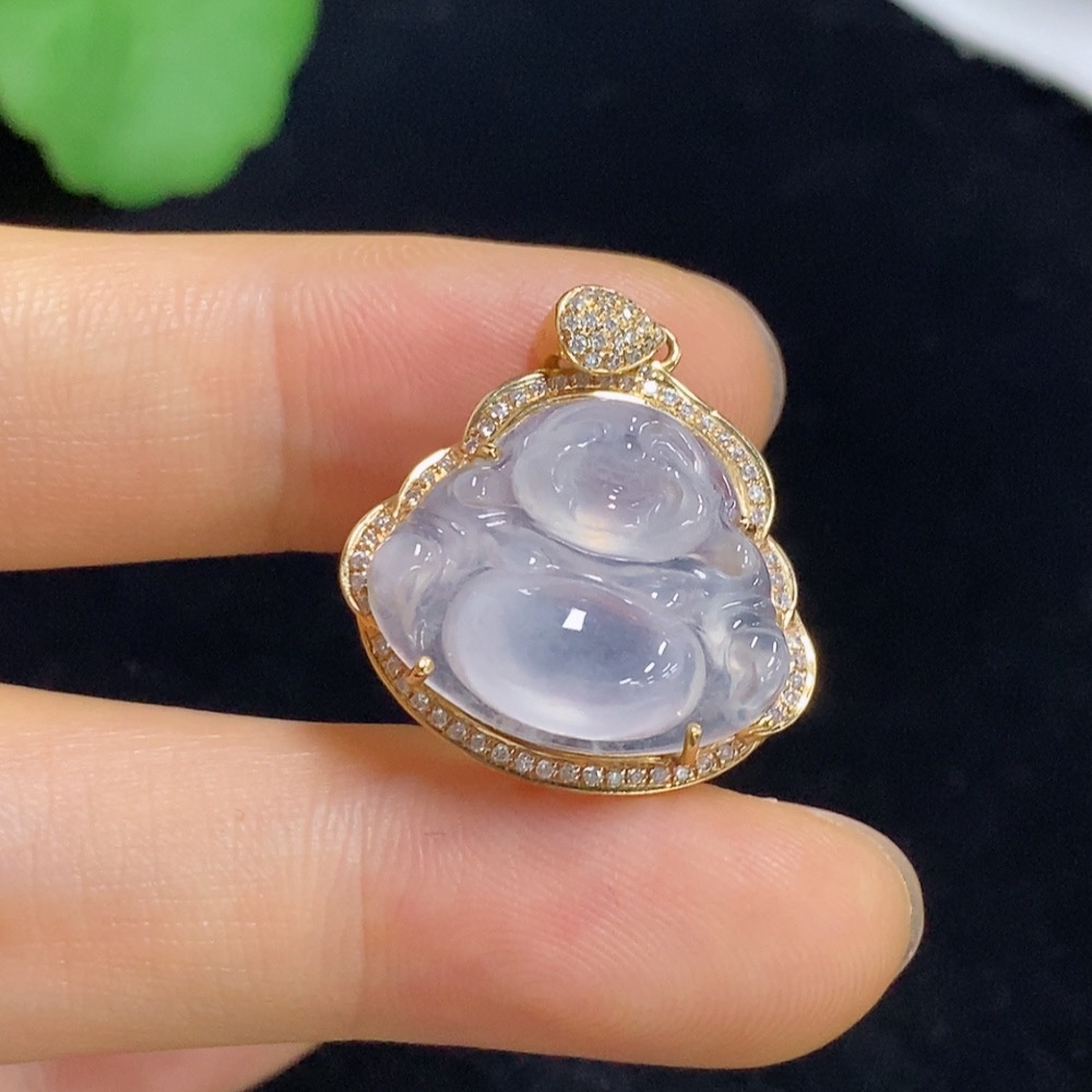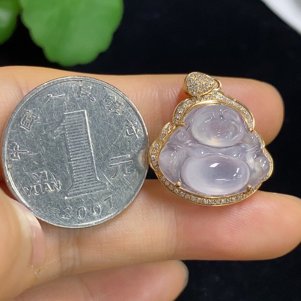Jadeite Buddha Pendant with 18k Gold and Diamond Accents, Total Weight Approximately 3.87g