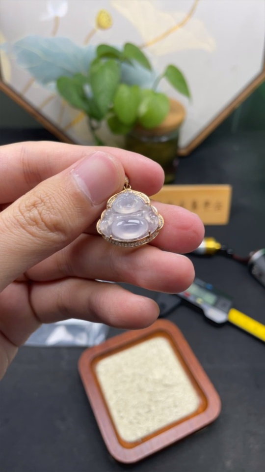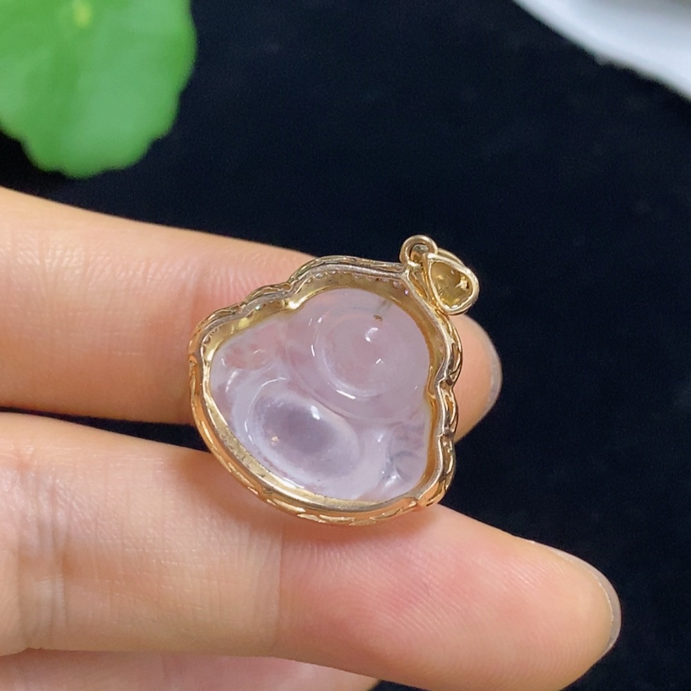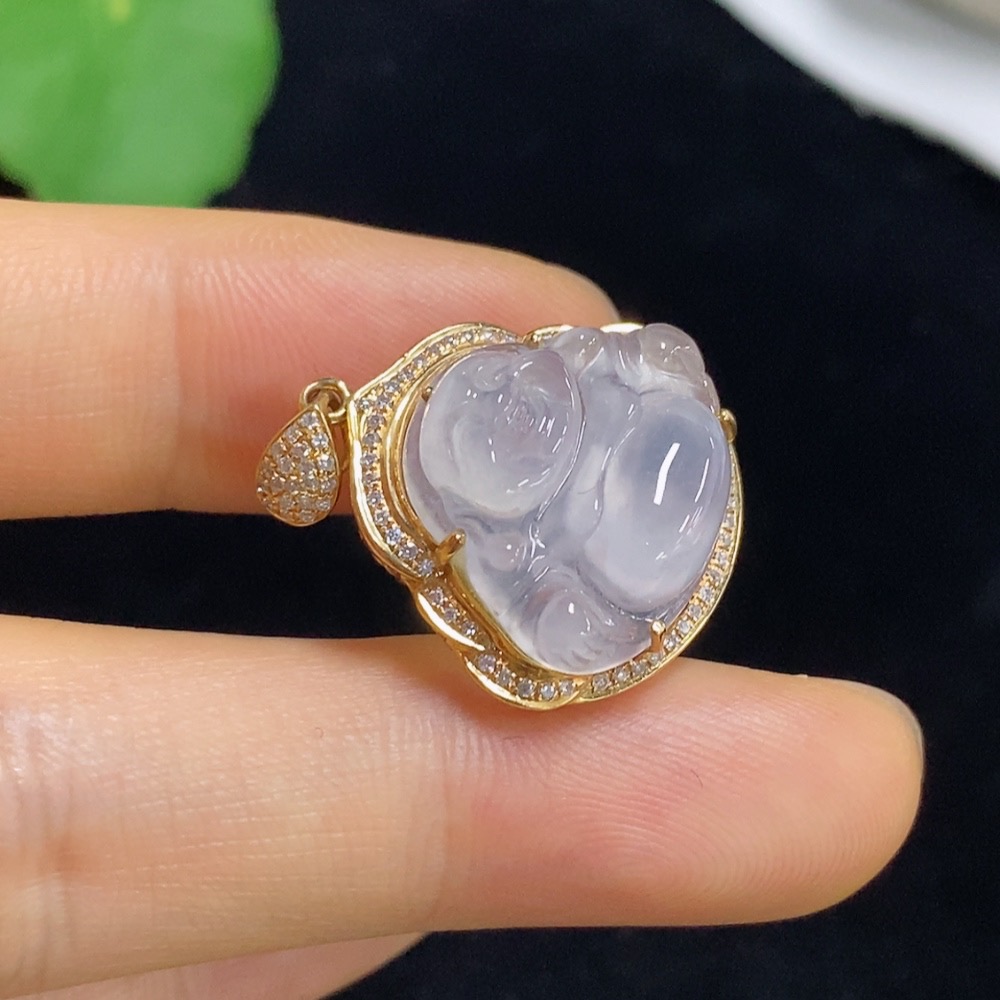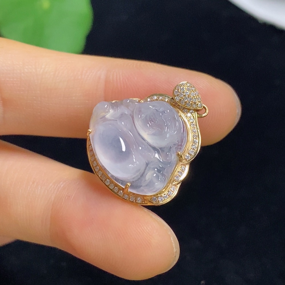 Jadeite Buddha Pendant with 18k Gold and Diamond Accents, Total Weight Approximately 3.87g
