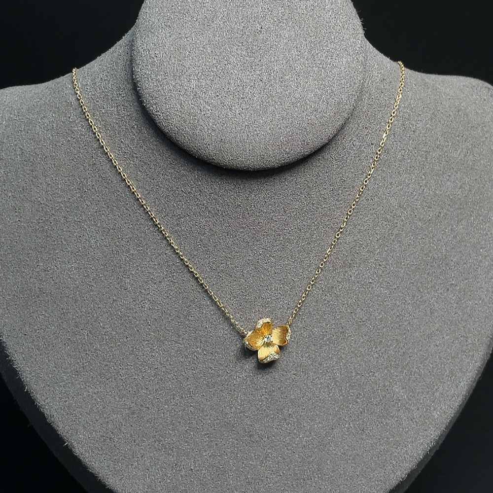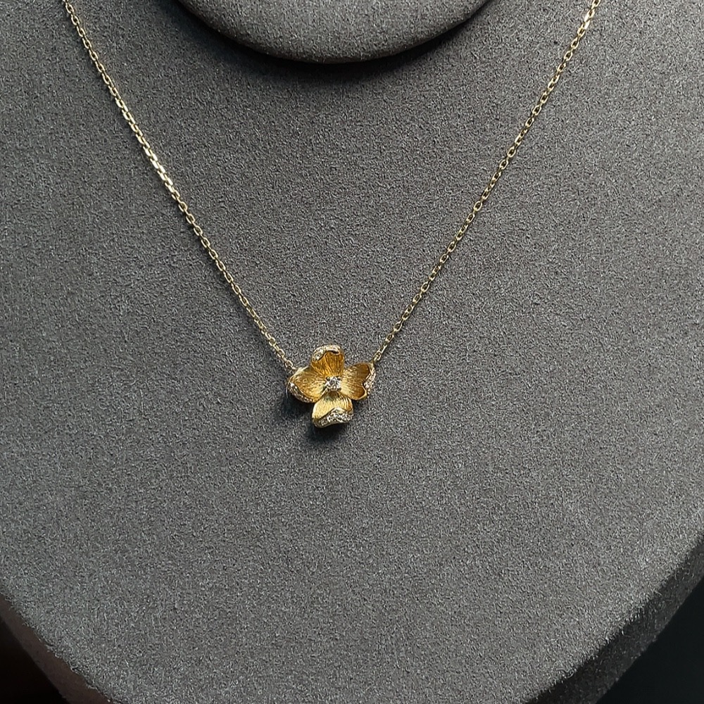 Diamond-set Necklace 18k Gold Total Weight Approx. 2.07g Marks d0.057ct D0.025ct