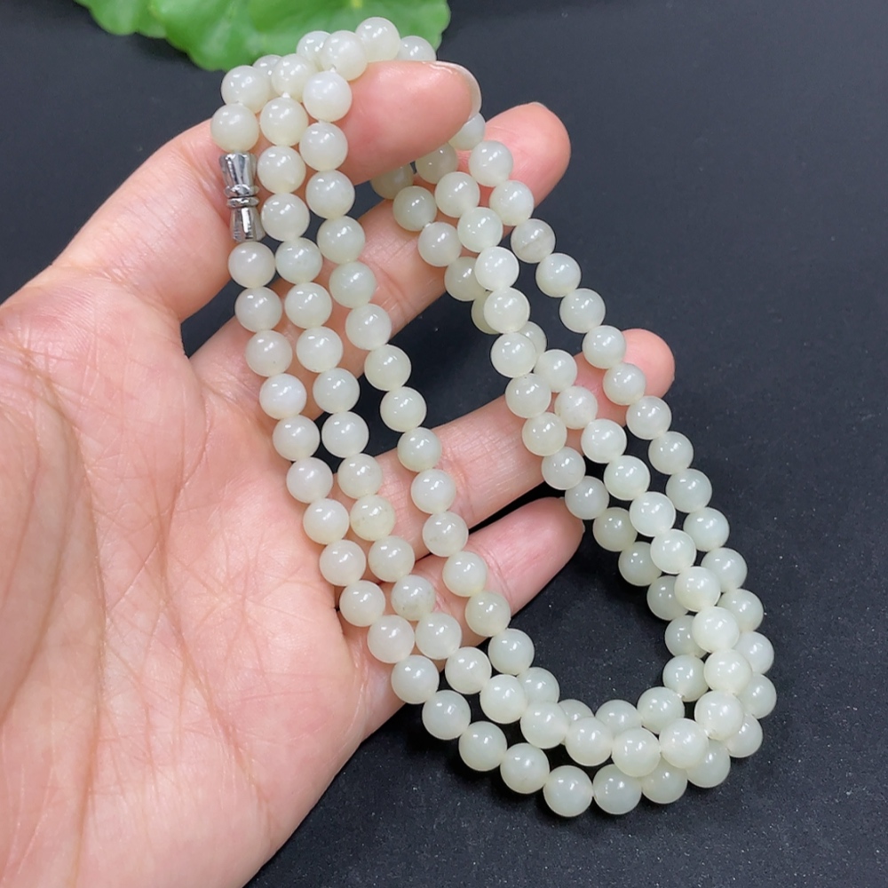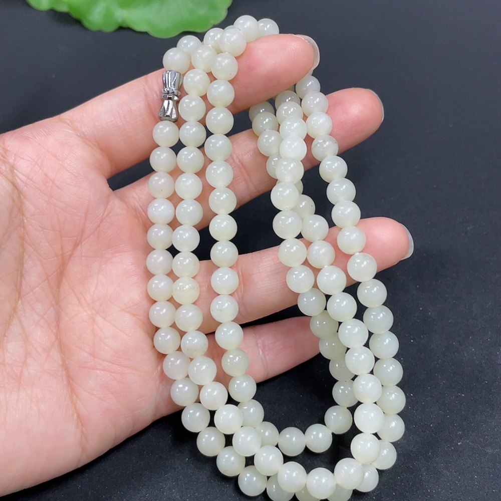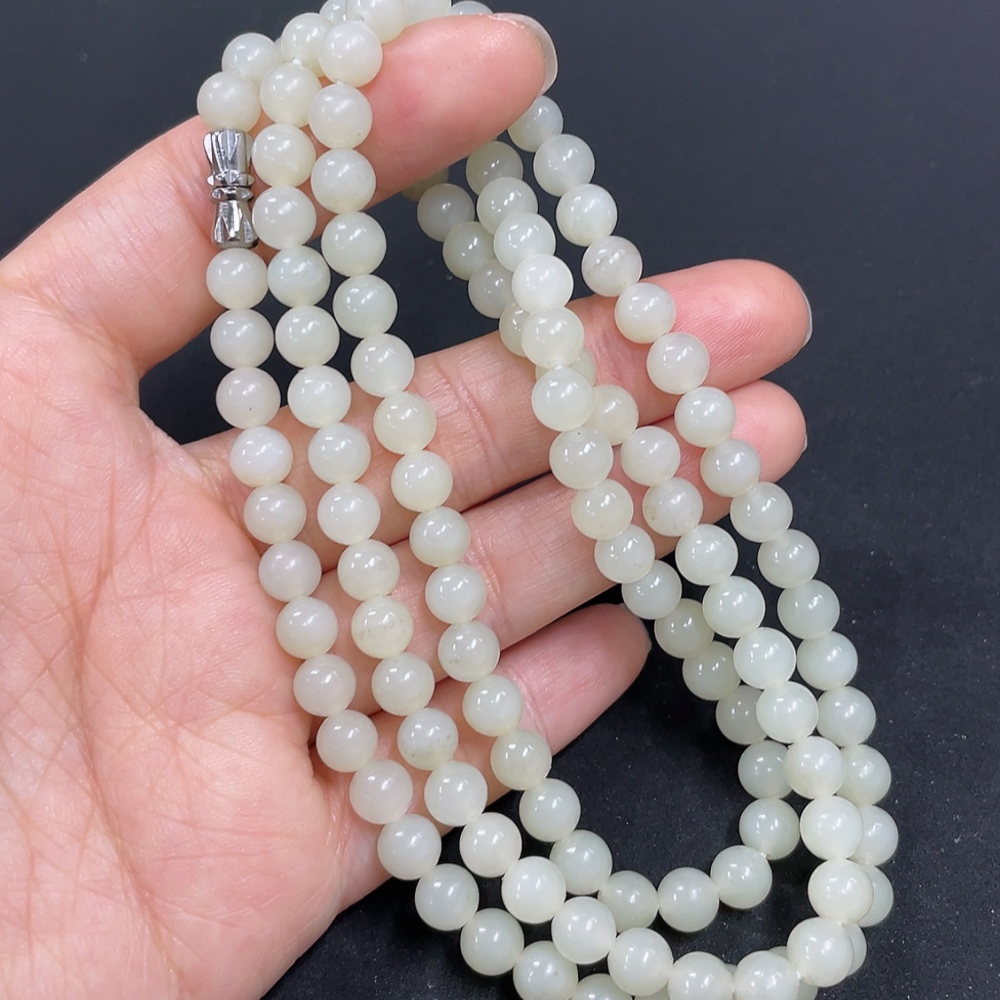 Hetian Jade Bead Necklace, Approx. 5.9mm, Total Weight Approx. 39.5g
