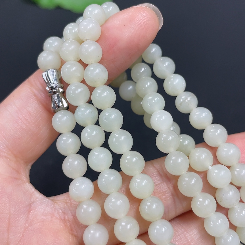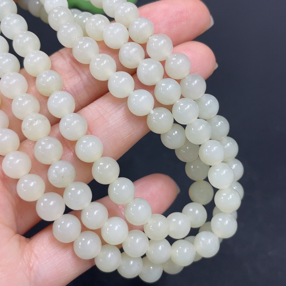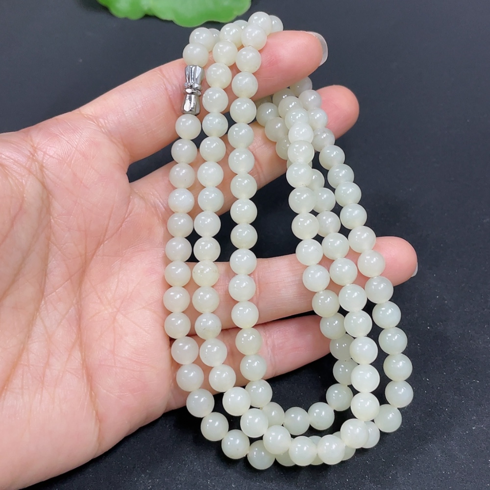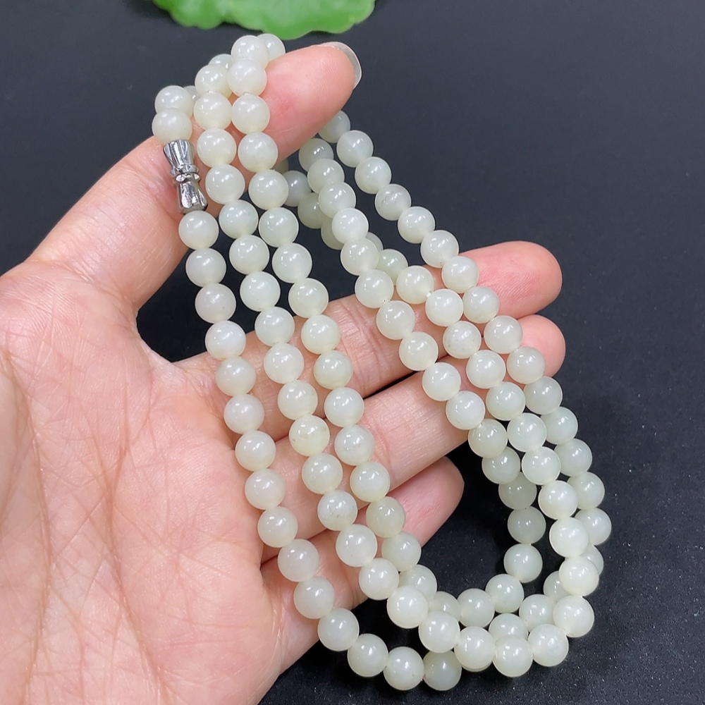 Hetian Jade Bead Necklace, Approx. 5.9mm, Total Weight Approx. 39.5g