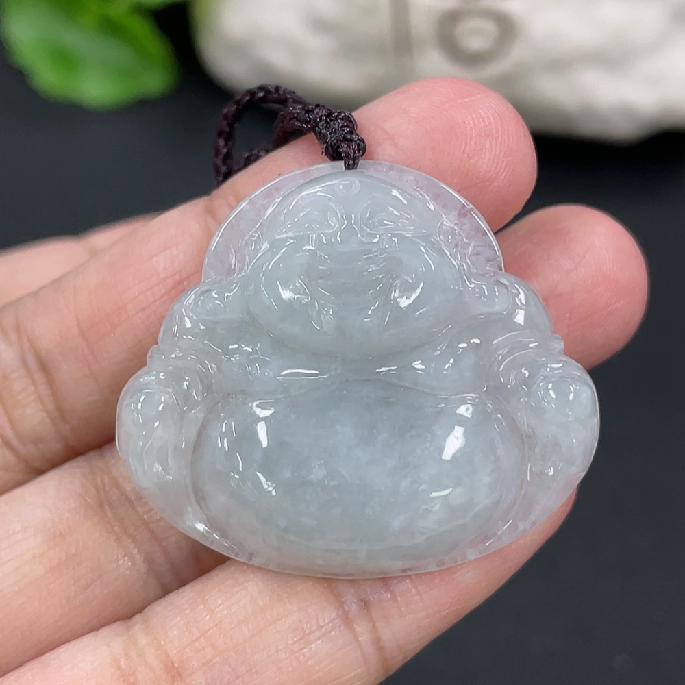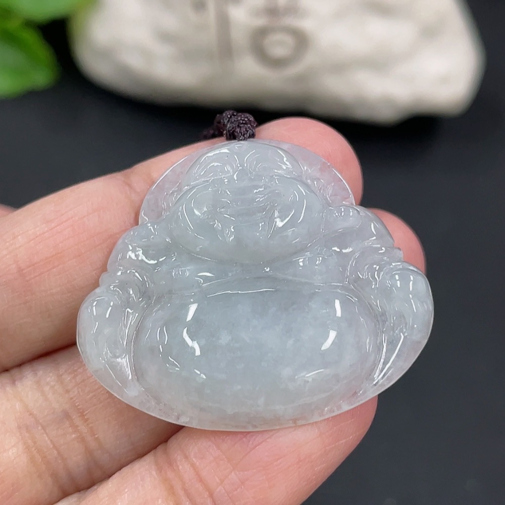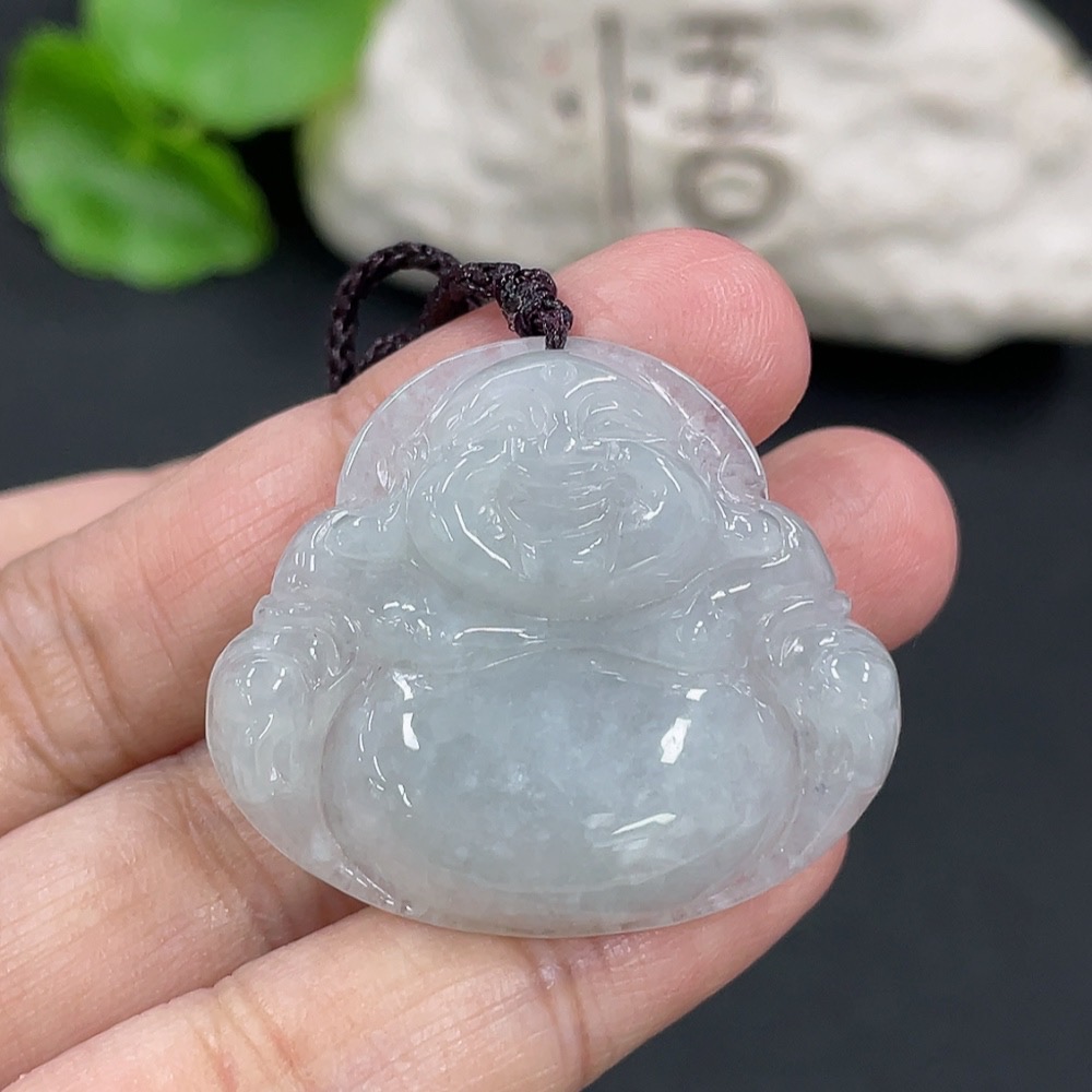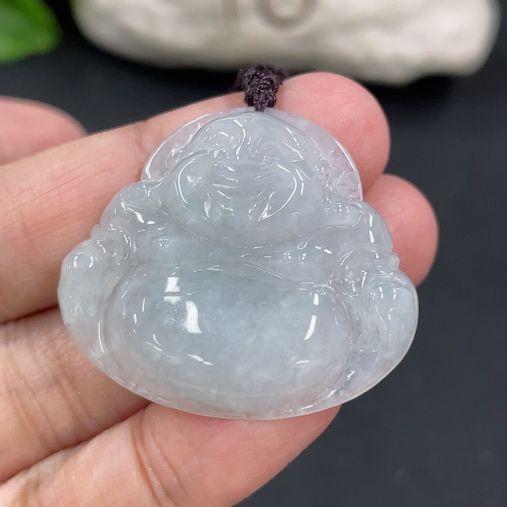 Jadeite Pendant Buddha, Total Weight Including Rope 9.4g