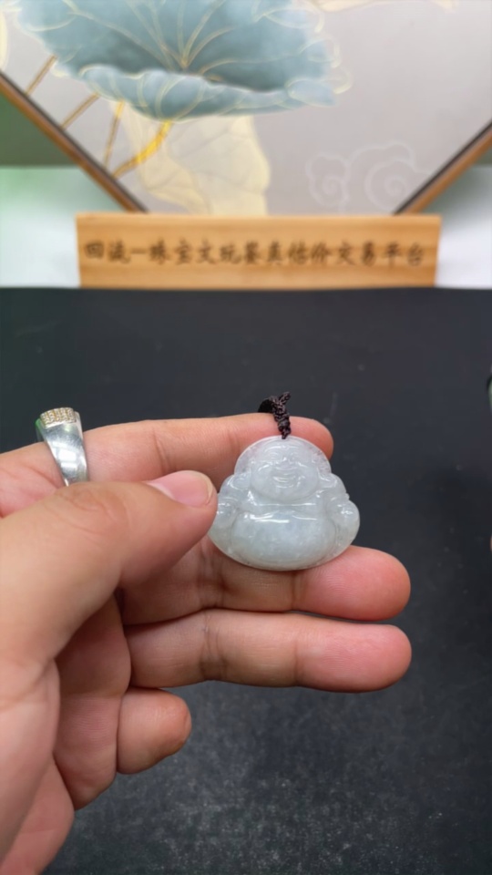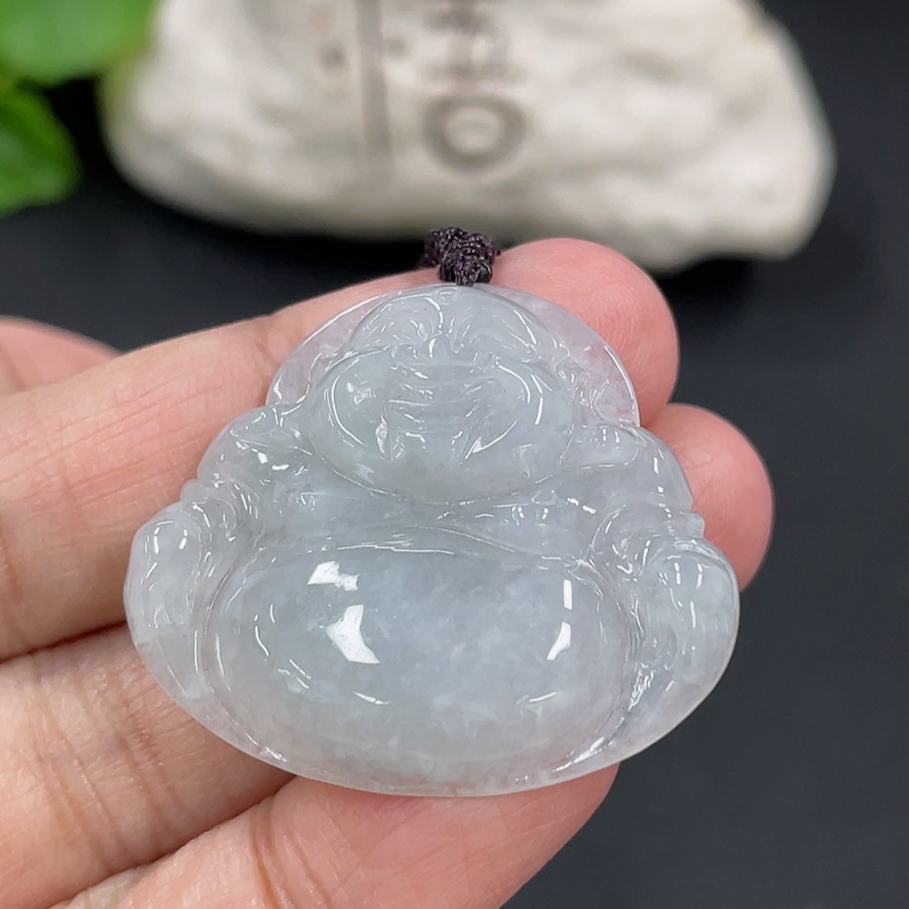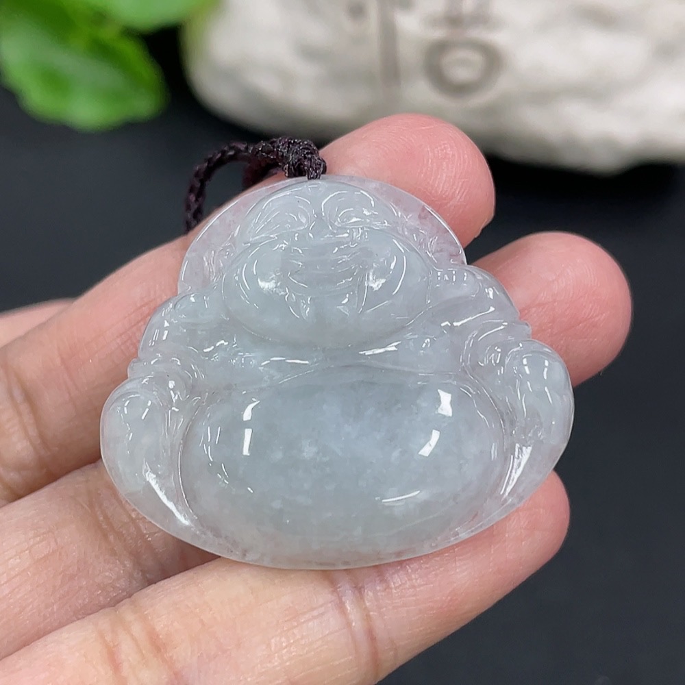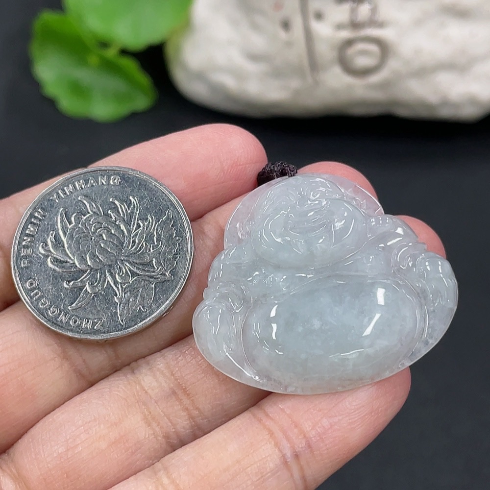 Jadeite Pendant Buddha, Total Weight Including Rope 9.4g
