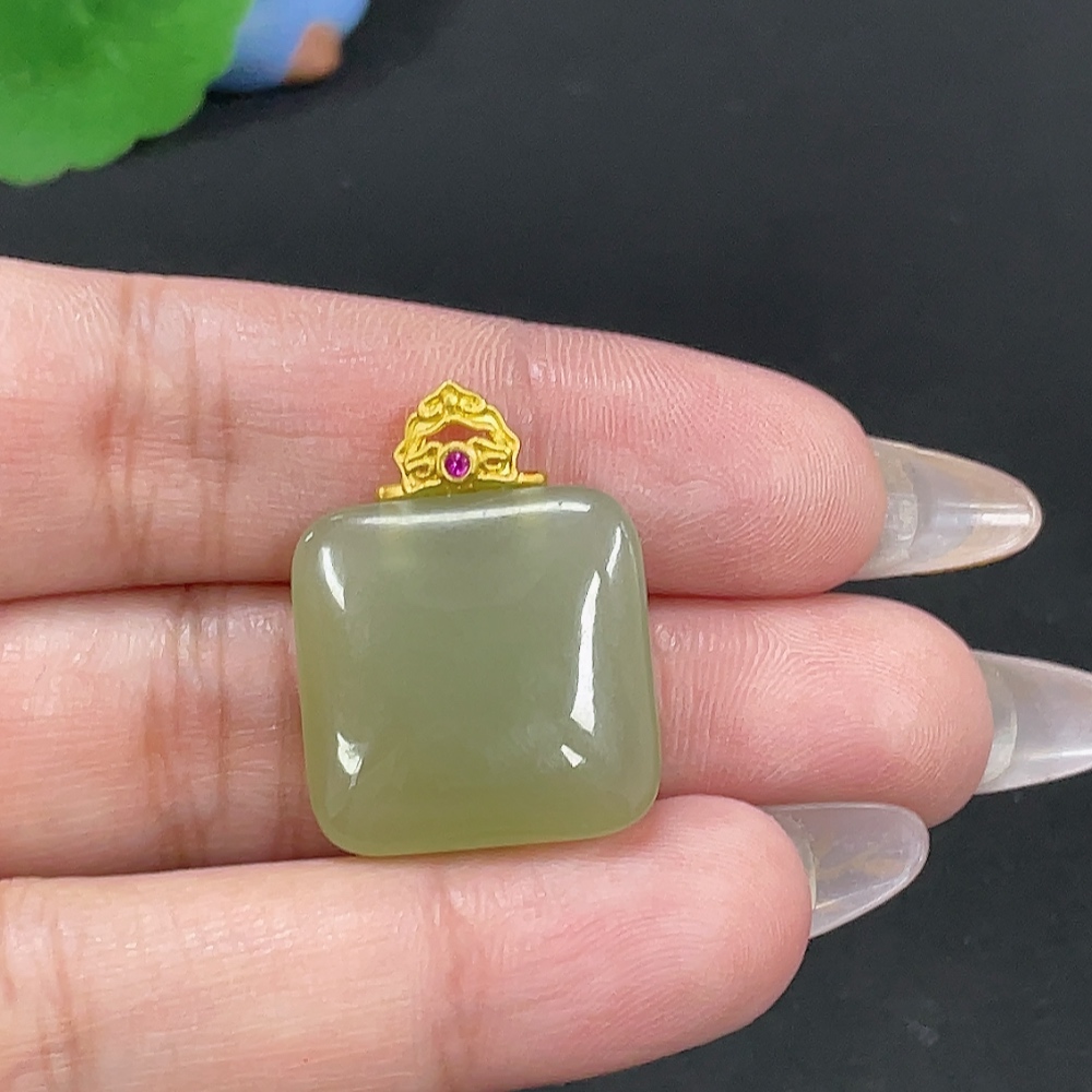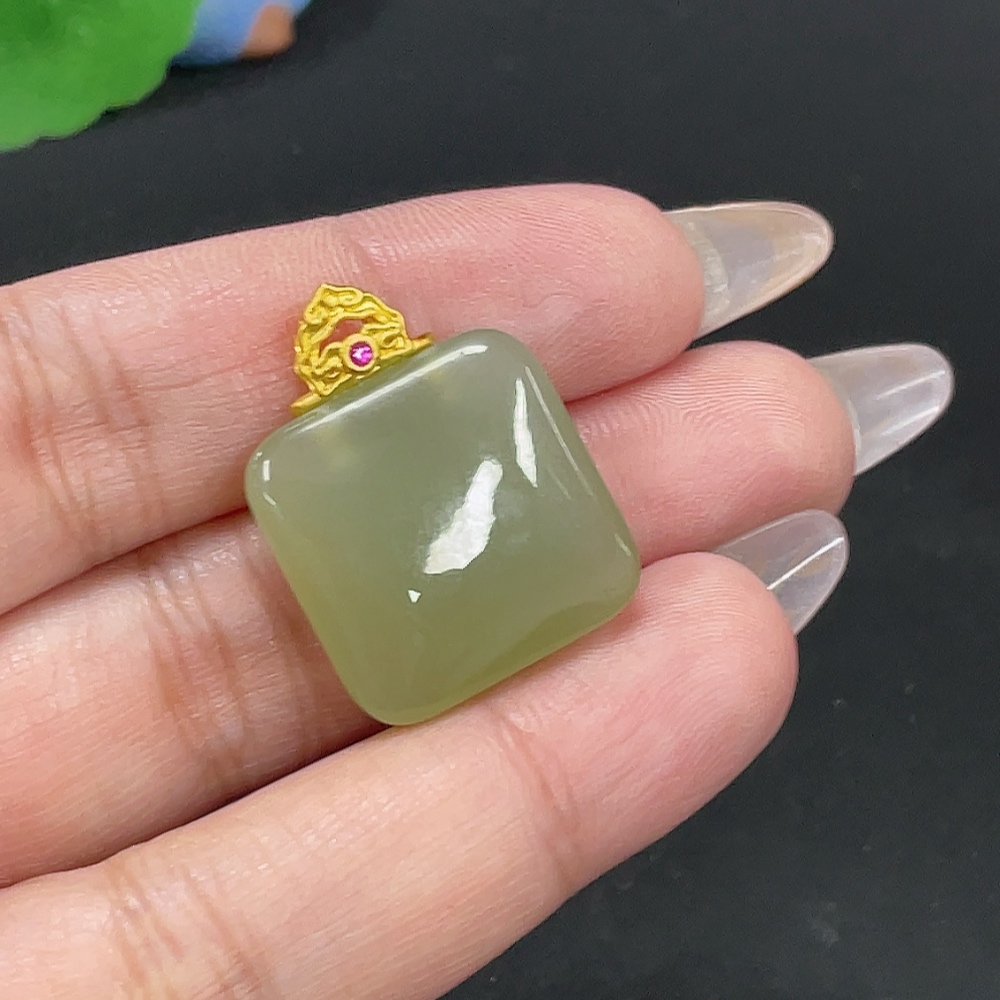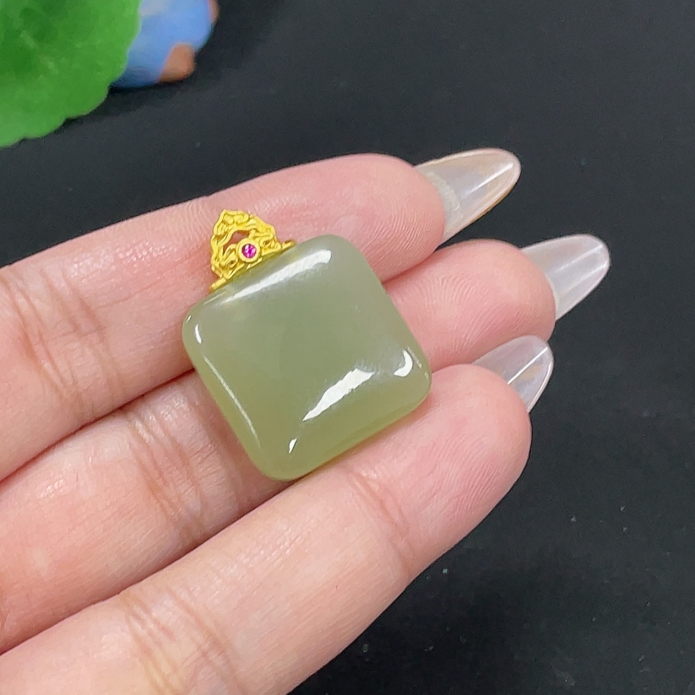 Hetian Jade Inlaid Plain Pendant, Total Weight Approx. 6.7g, Gold Content 99%