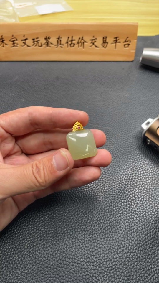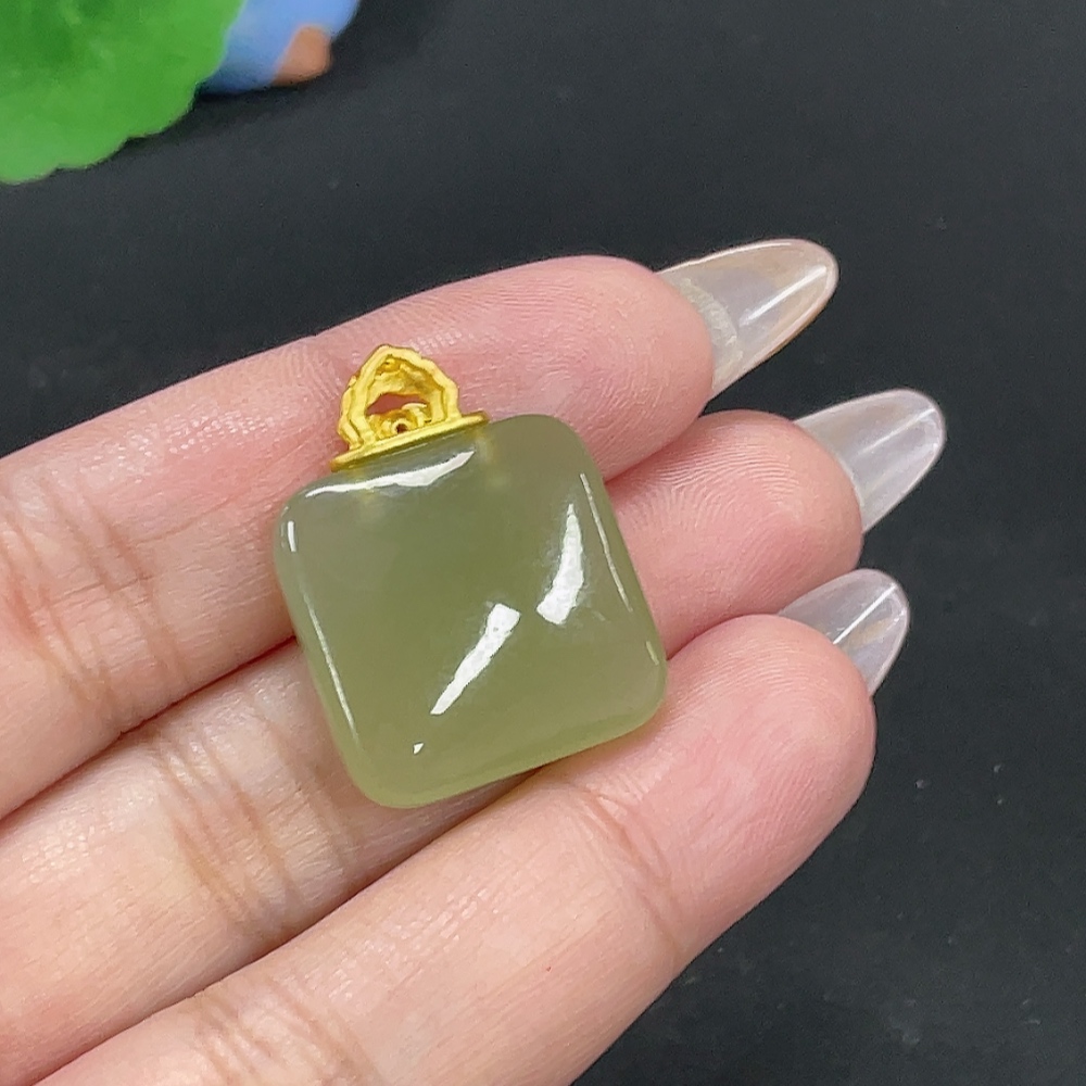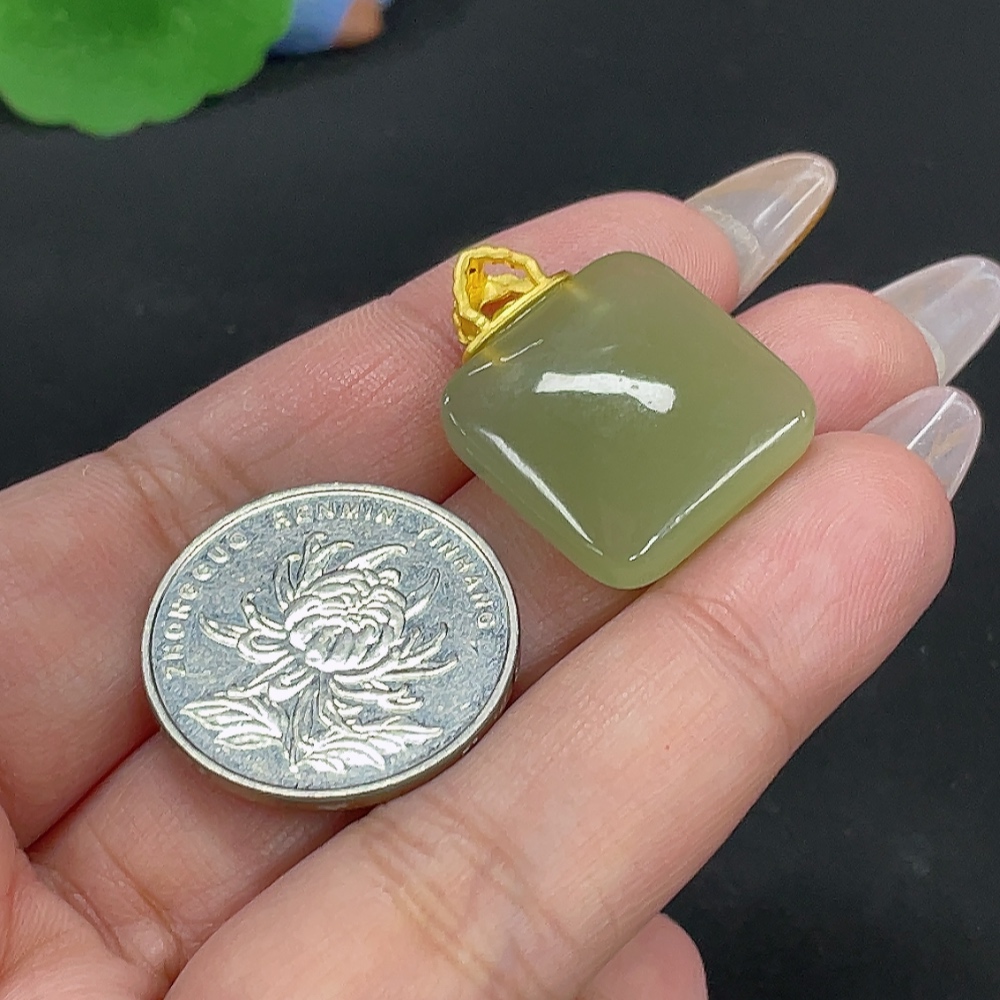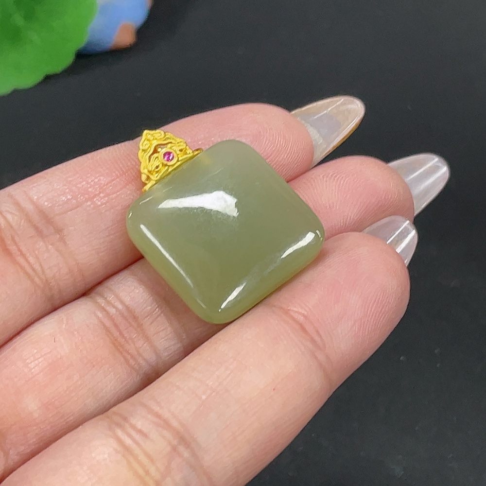 Hetian Jade Inlaid Plain Pendant, Total Weight Approx. 6.7g, Gold Content 99%