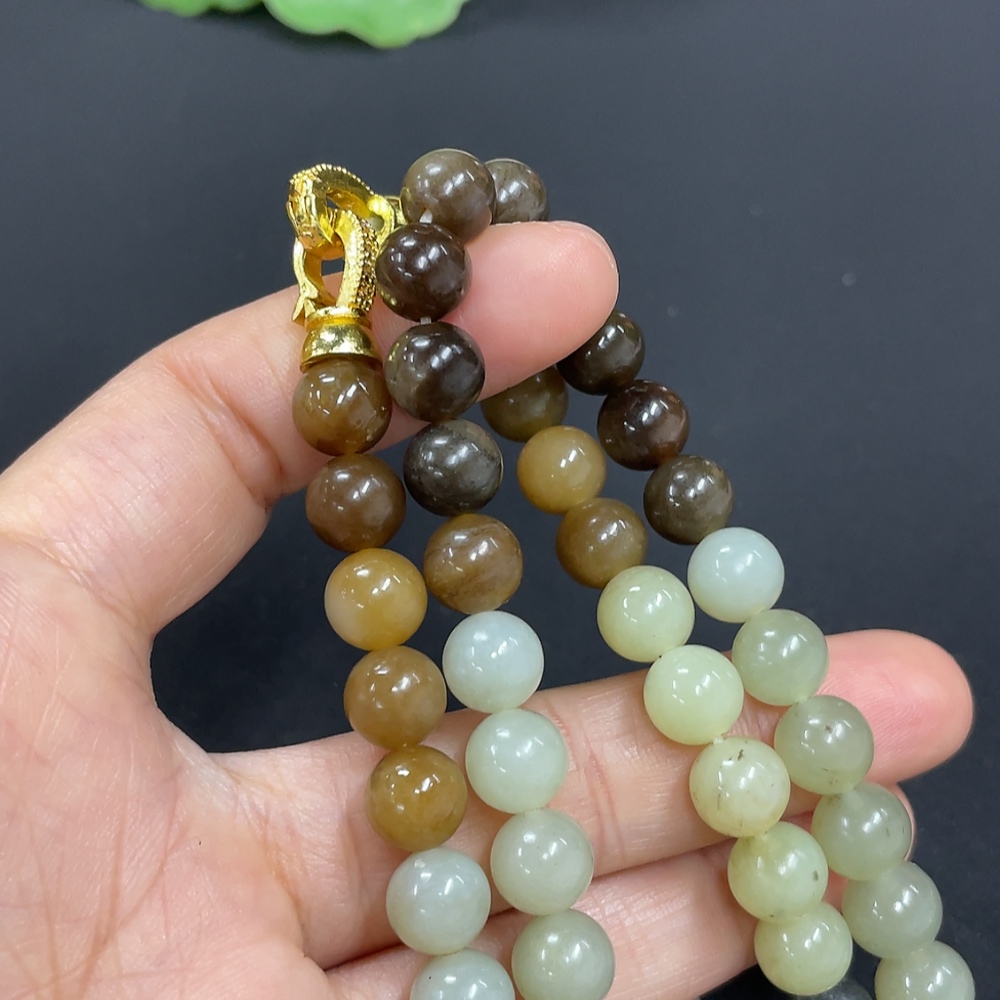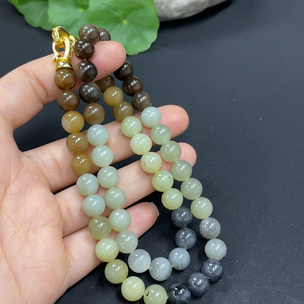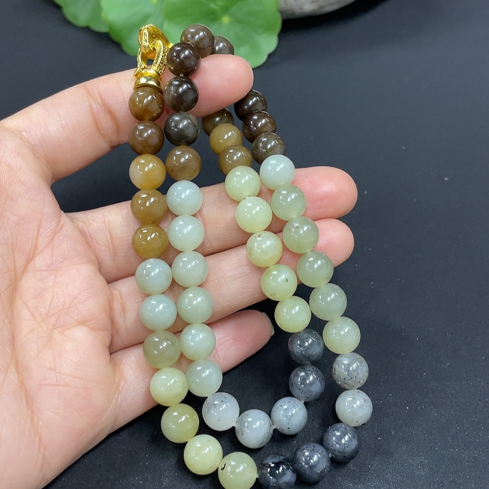 Hetian Jade Bead Necklace Approx. 7.8mm Non-Gold-Inlaid Total Weight Approx. 43.9g