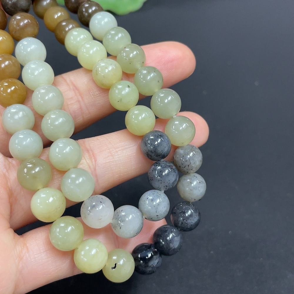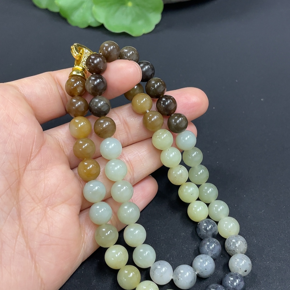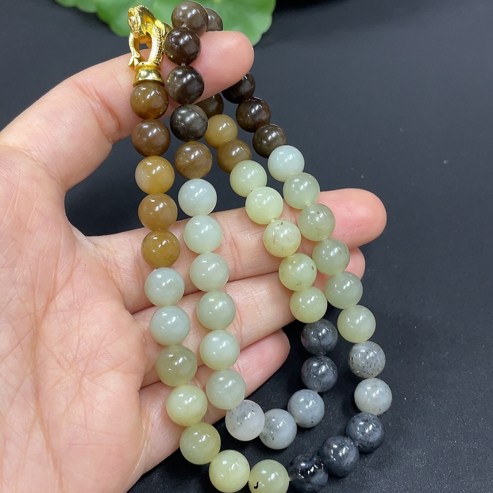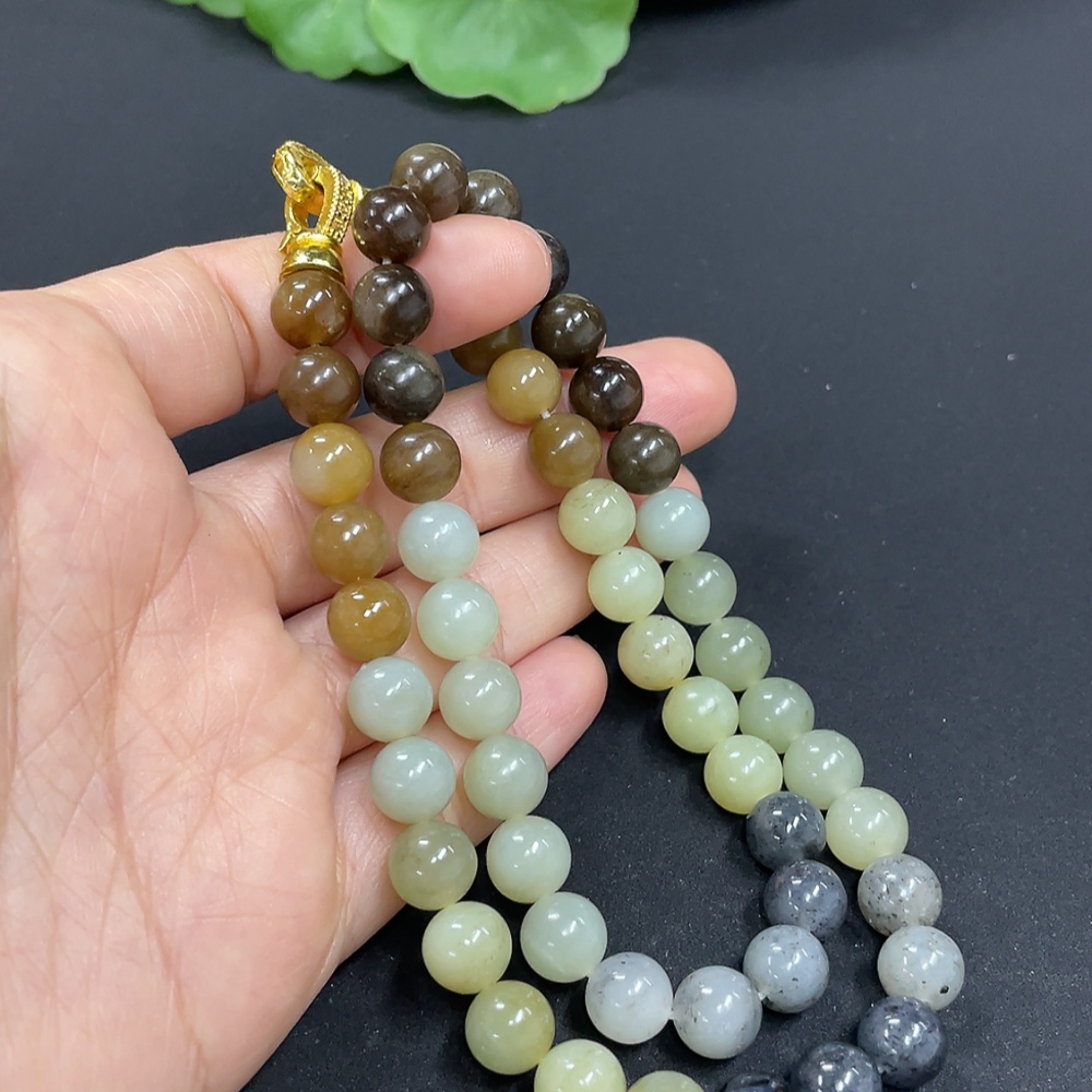 Hetian Jade Bead Necklace Approx. 7.8mm Non-Gold-Inlaid Total Weight Approx. 43.9g