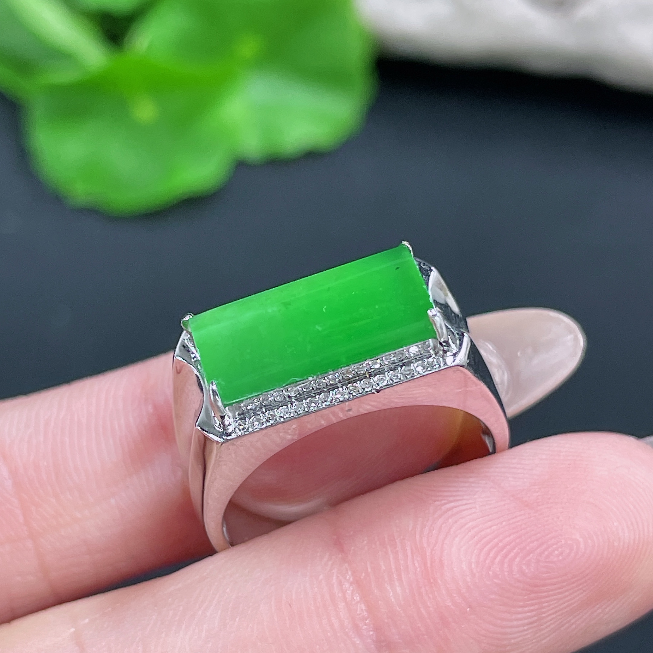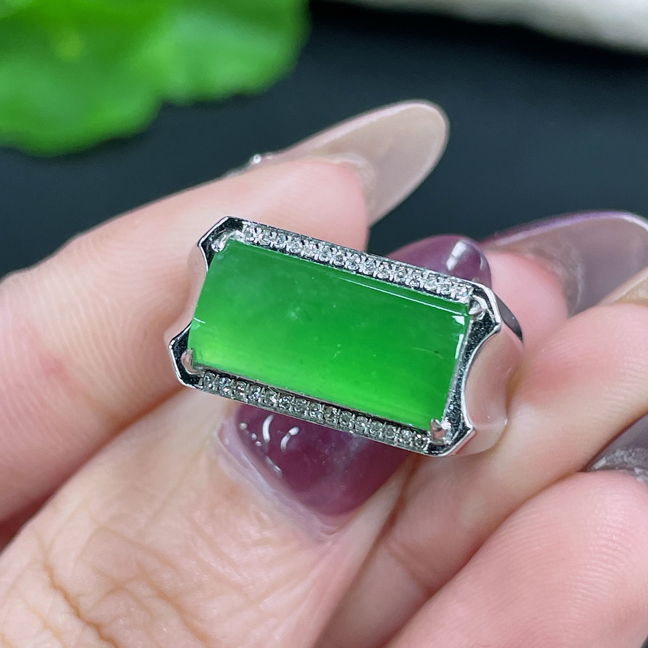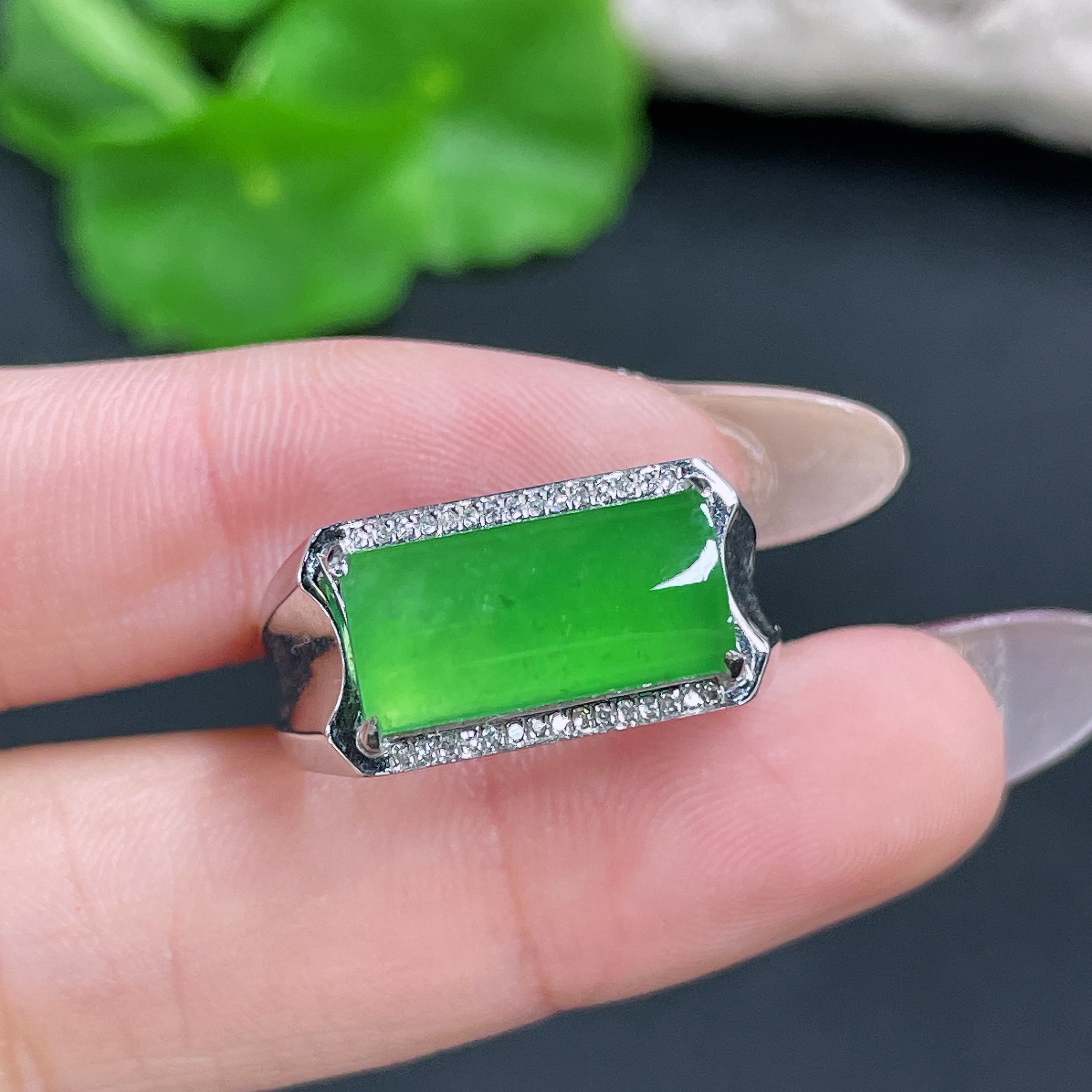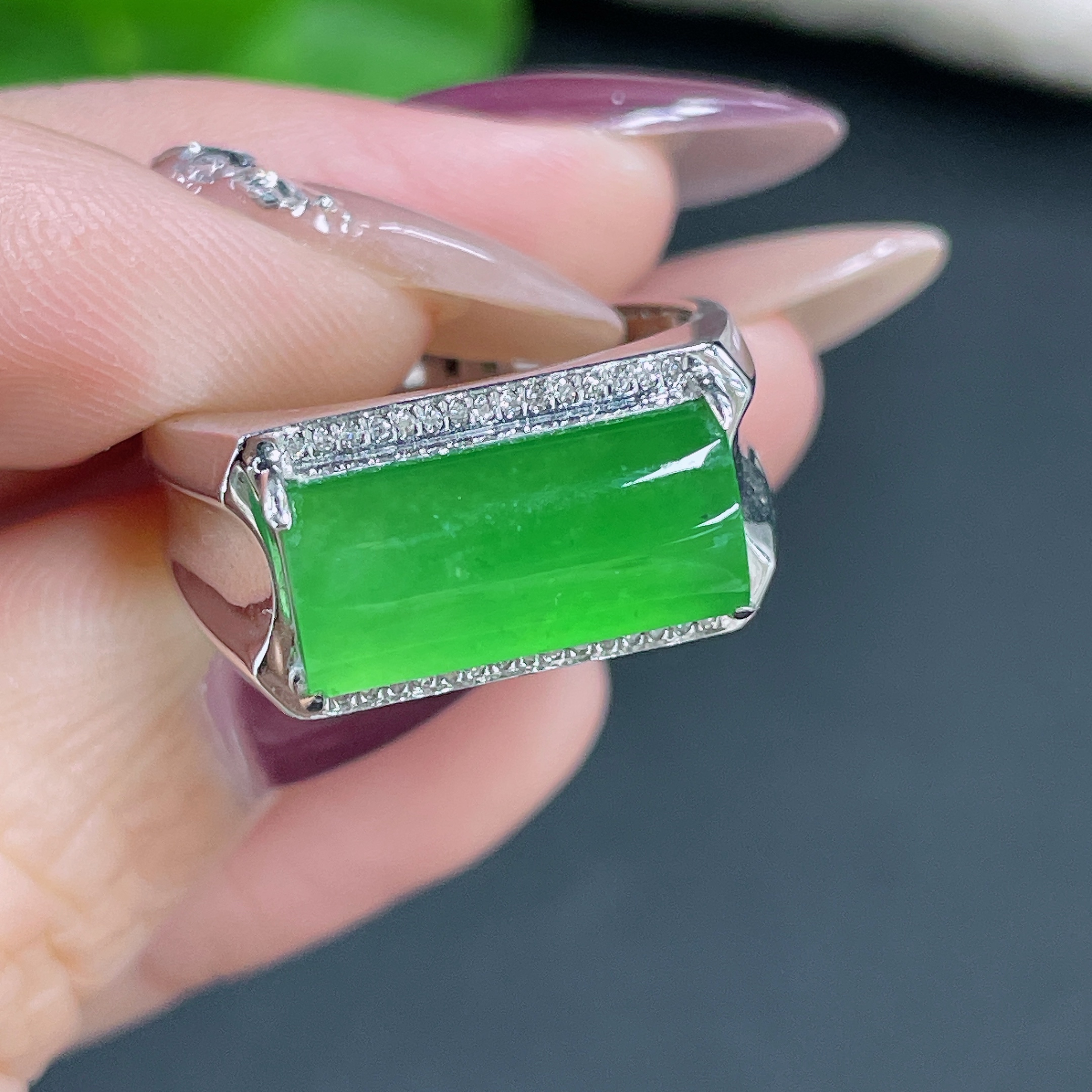 Jadeite Ring 18k Gold Setting with Diamond, Total Weight Approx. 7.8g, Size 19
