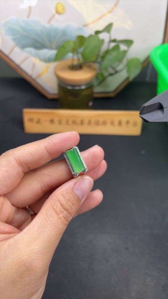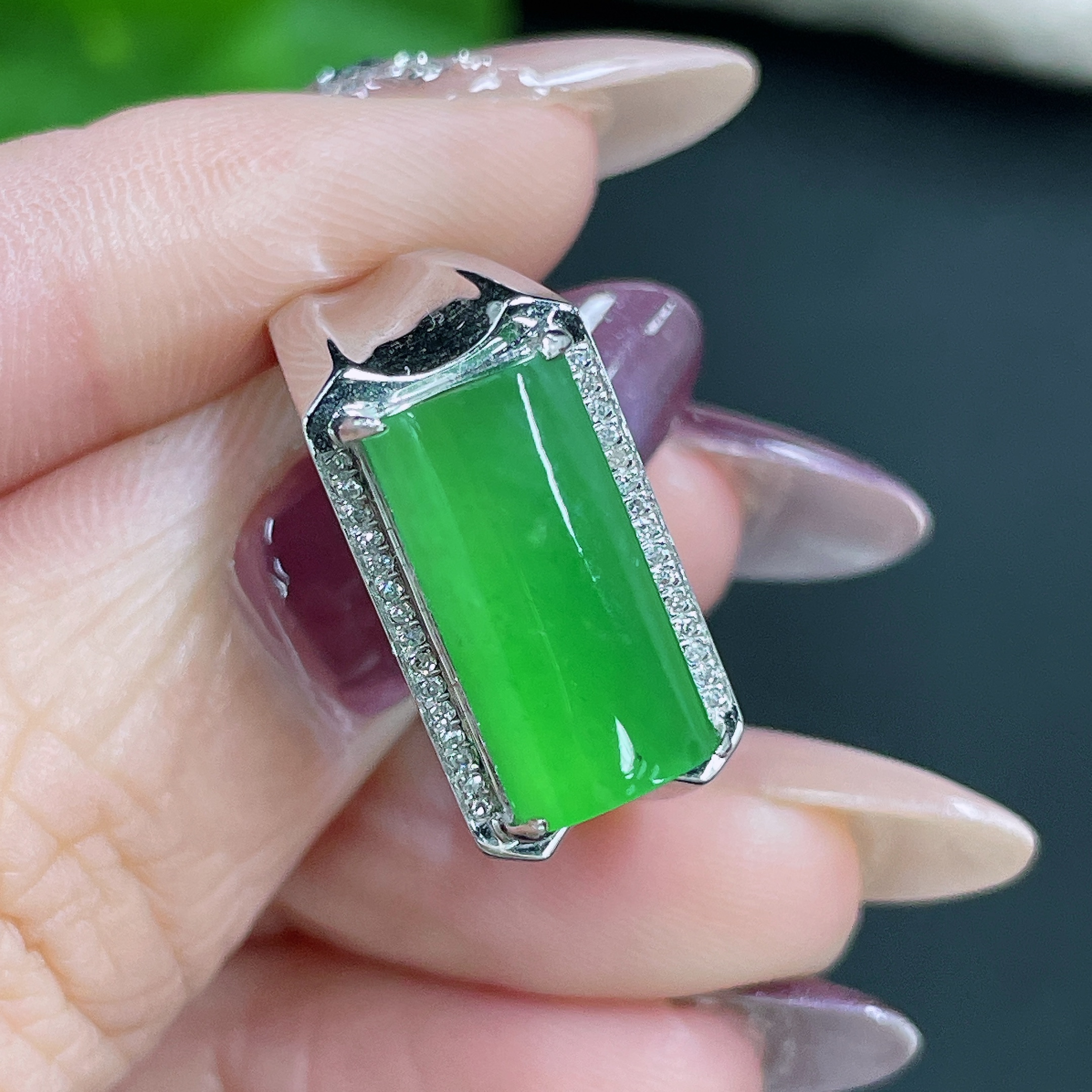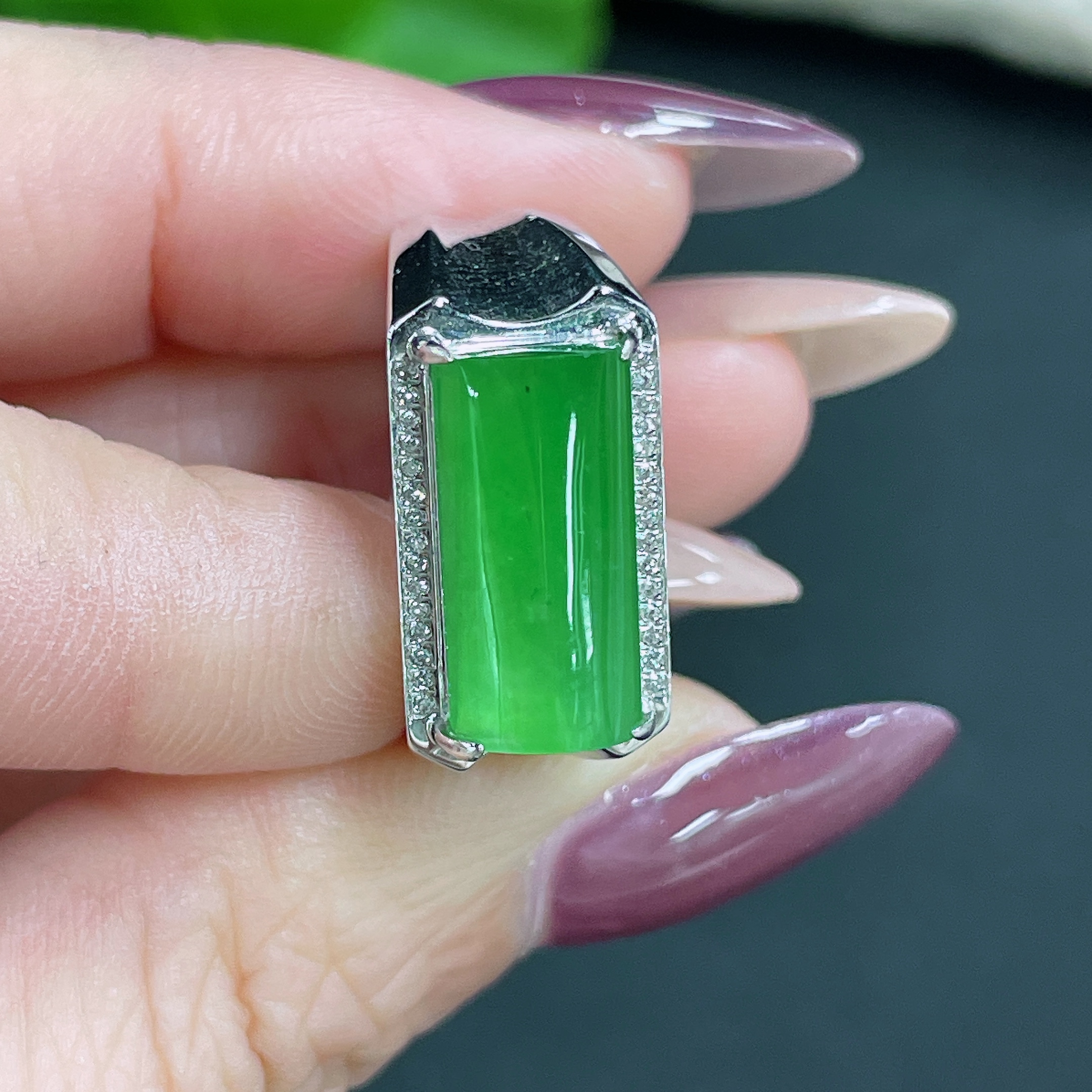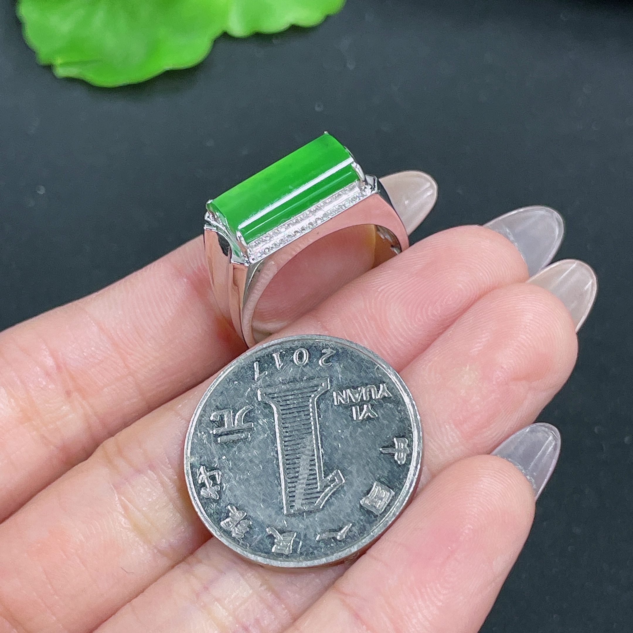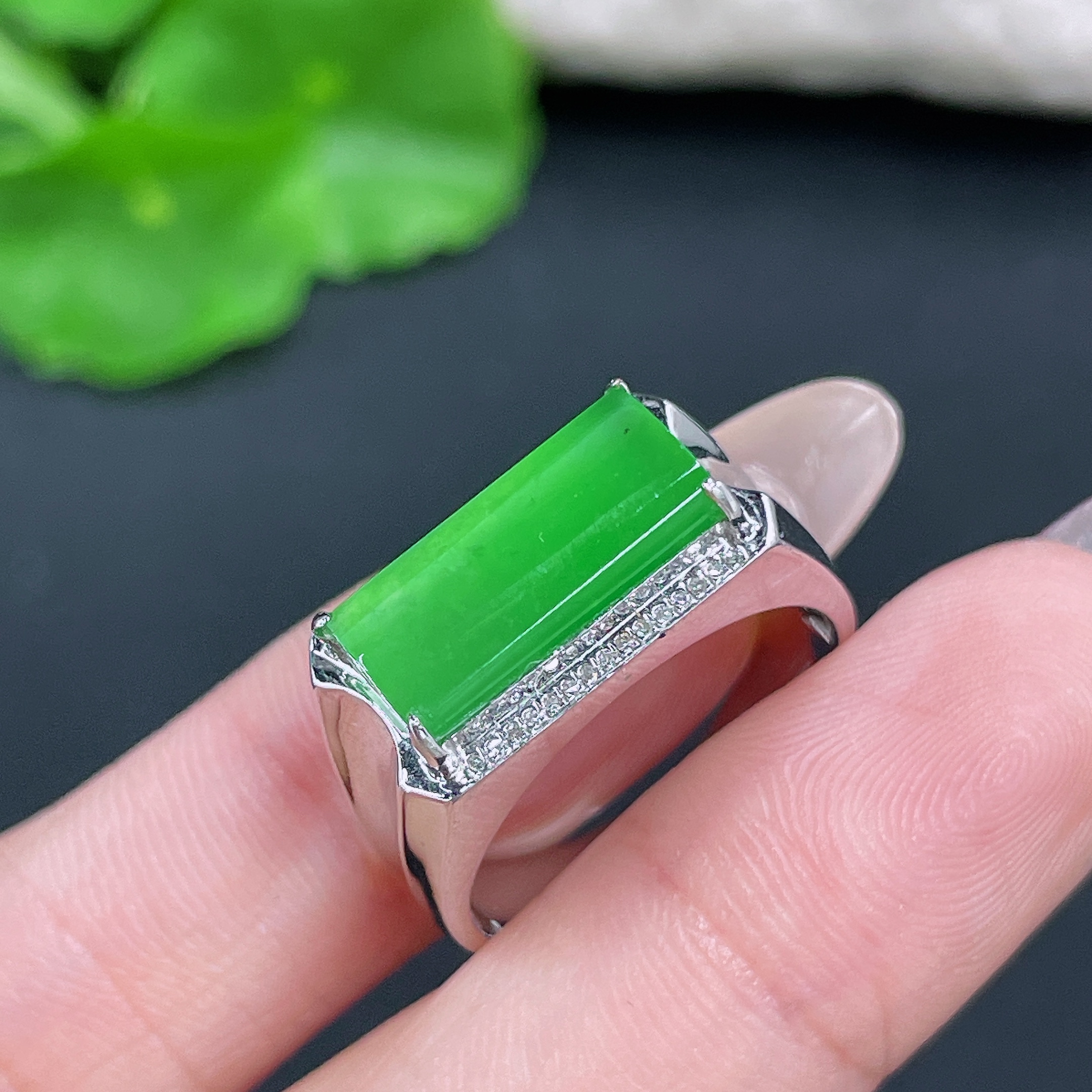 Jadeite Ring 18k Gold Setting with Diamond, Total Weight Approx. 7.8g, Size 19