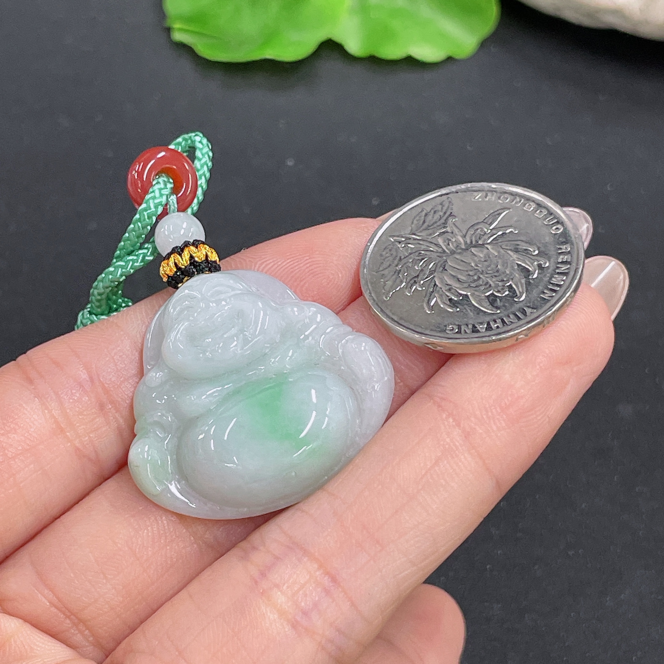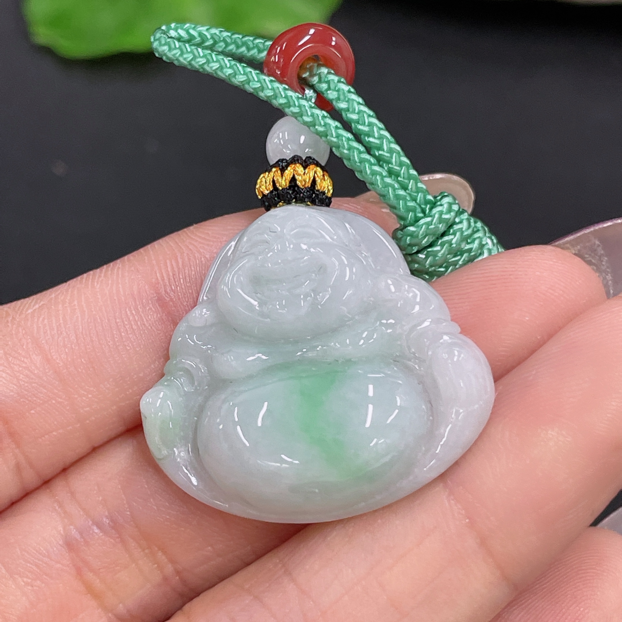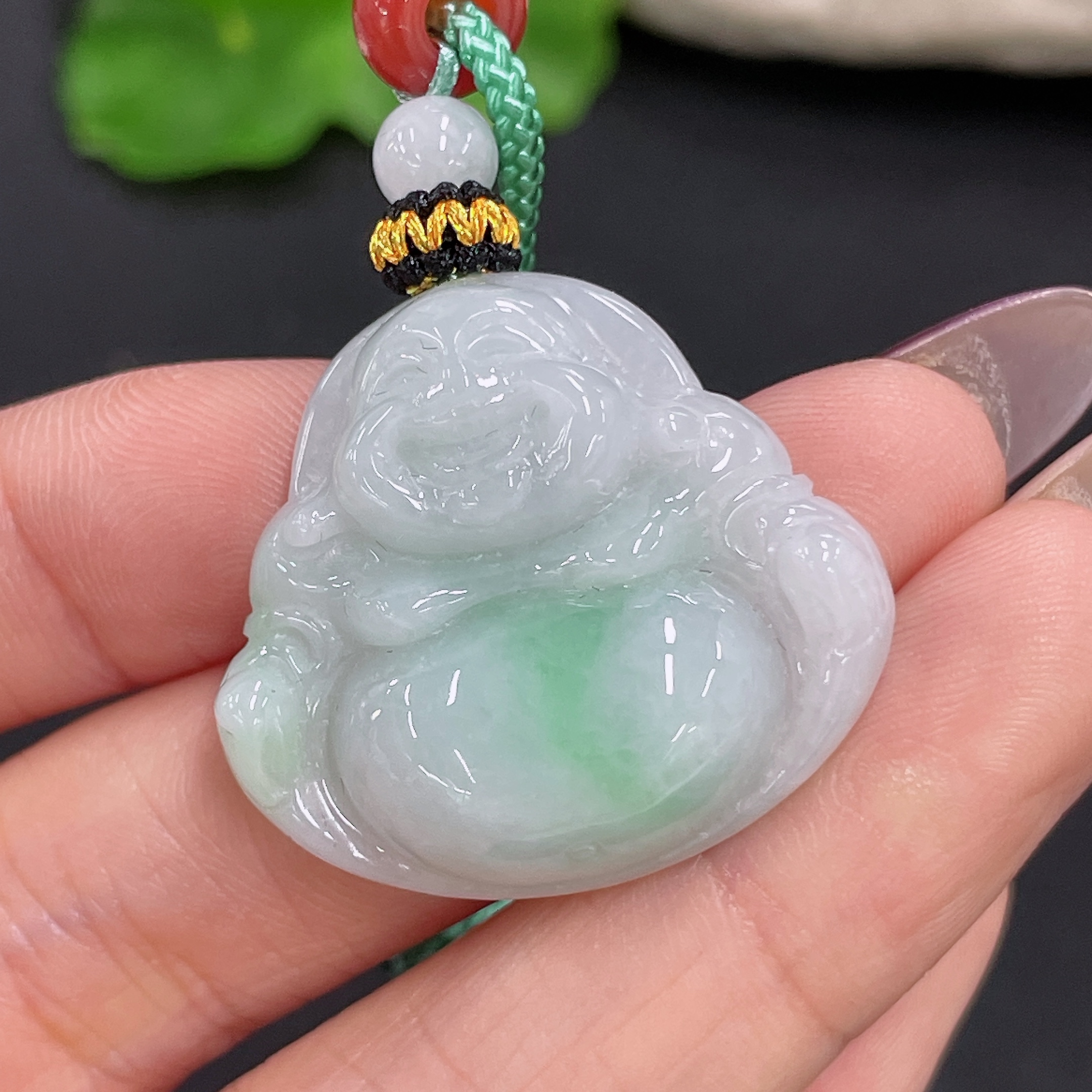 Jadeite Pendant Buddha with Non-A Beads Including Cord Total Weight Approx. 11.56g