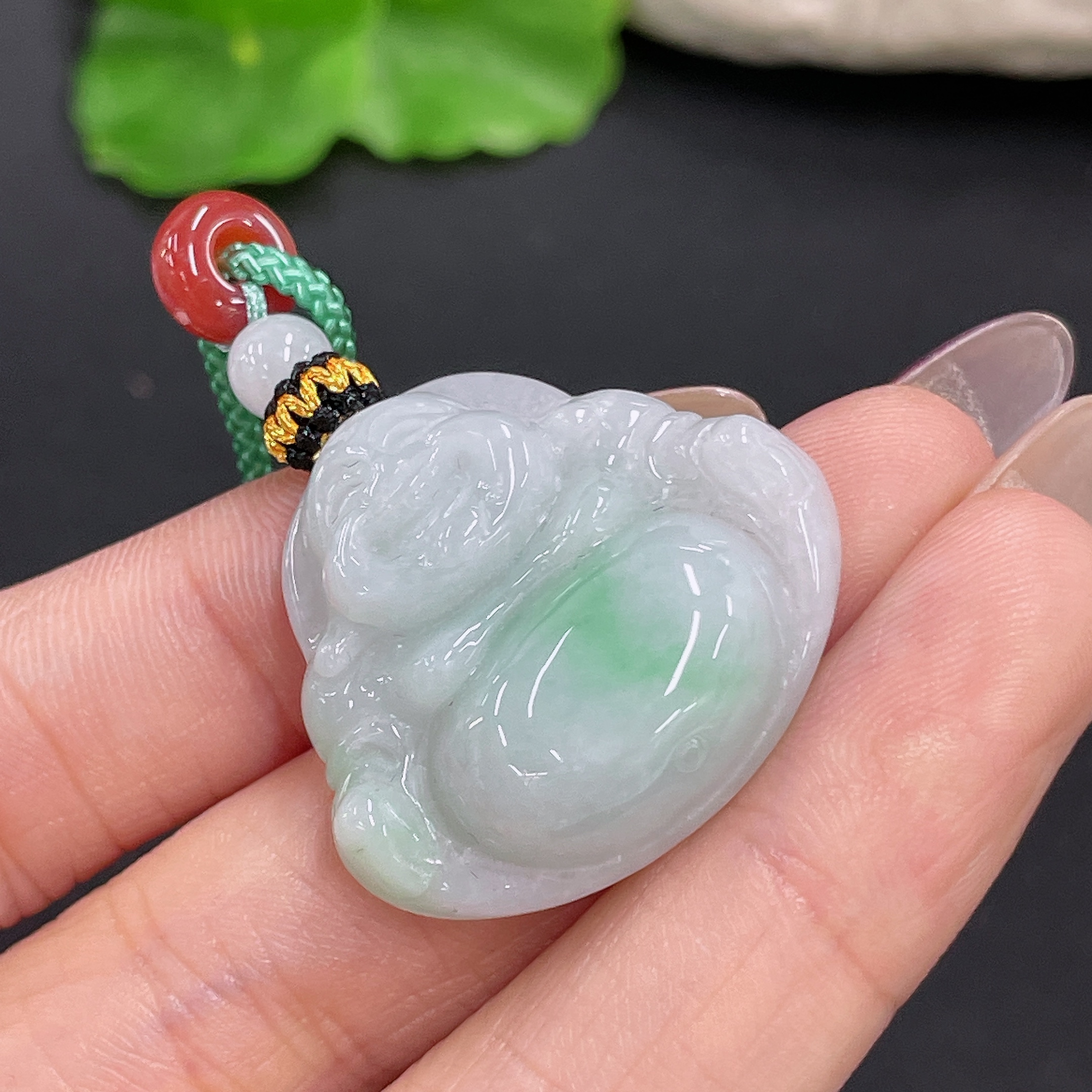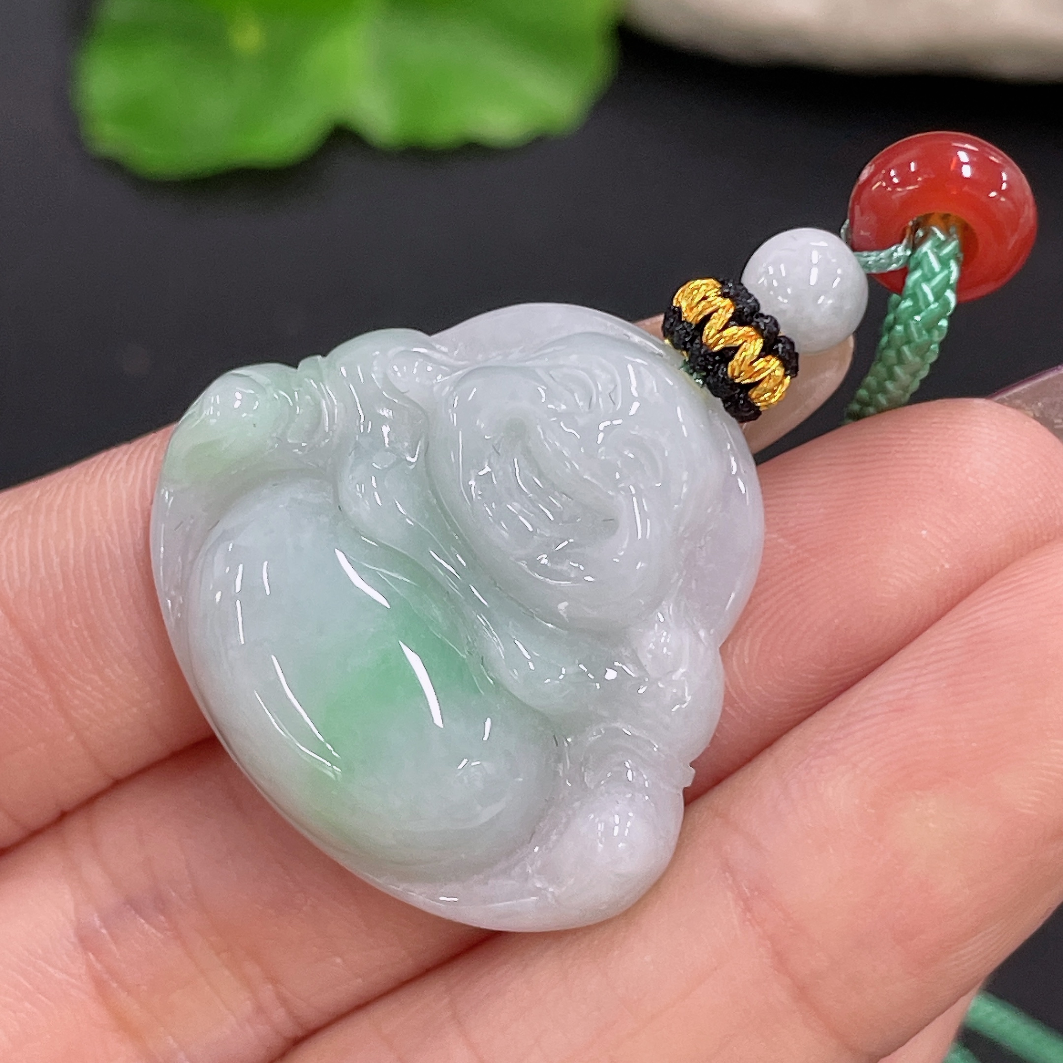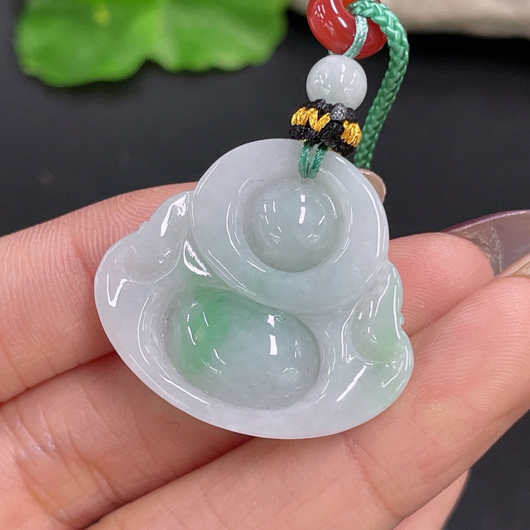 Jadeite Pendant Buddha with Non-A Beads Including Cord Total Weight Approx. 11.56g