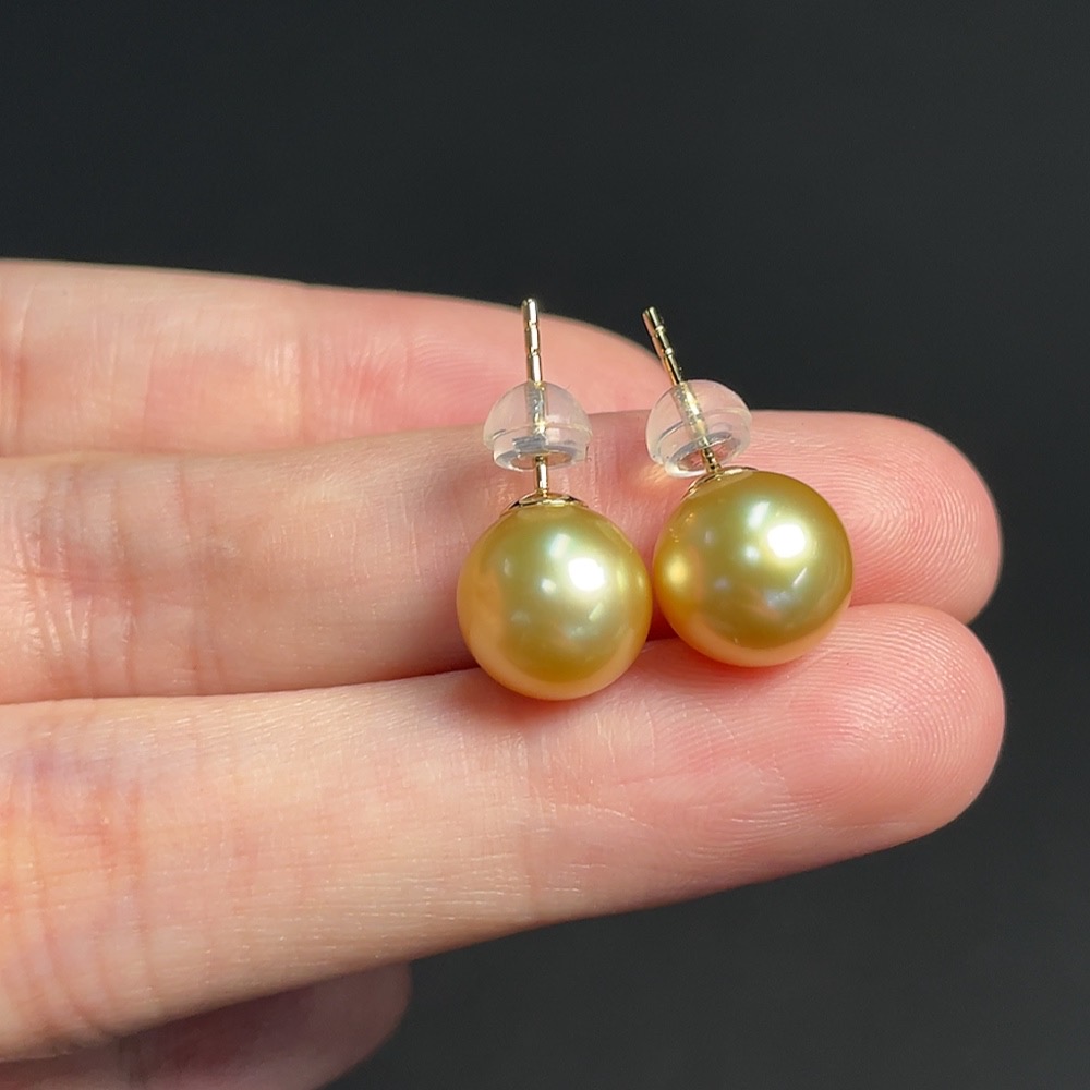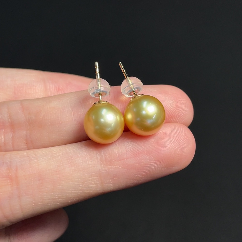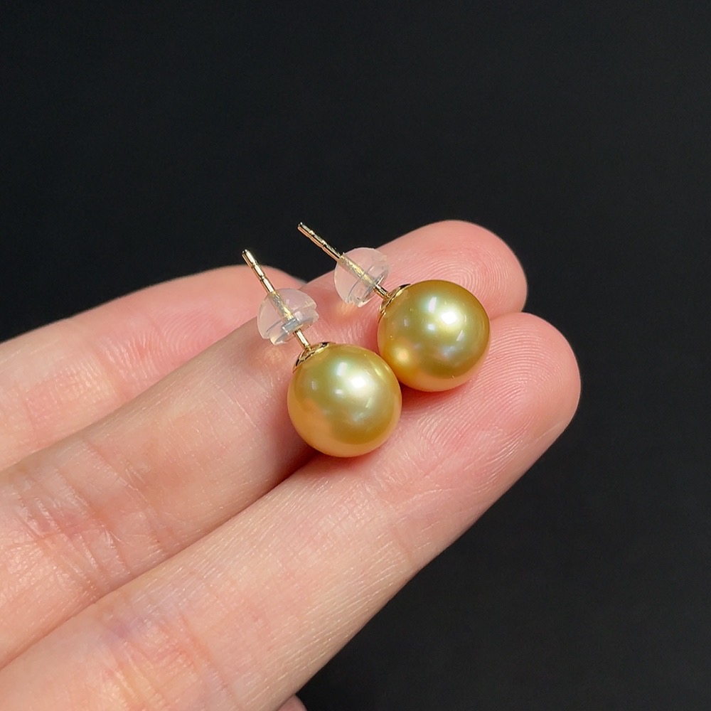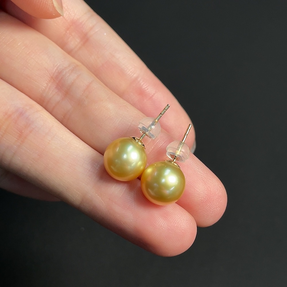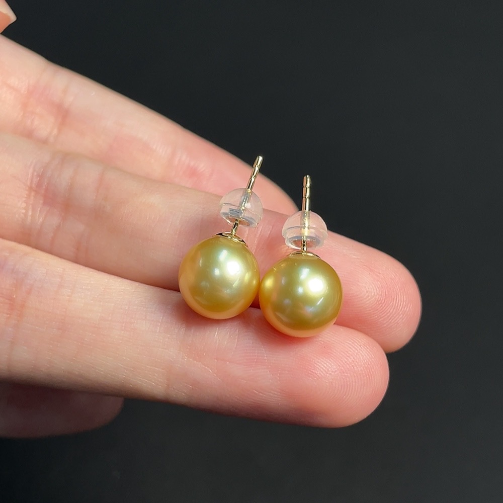Seawater Pearl Earrings Set in 18K Gold, Approximately 9.3mm, Total Weight About 2.86g, Color Origin Undetermined