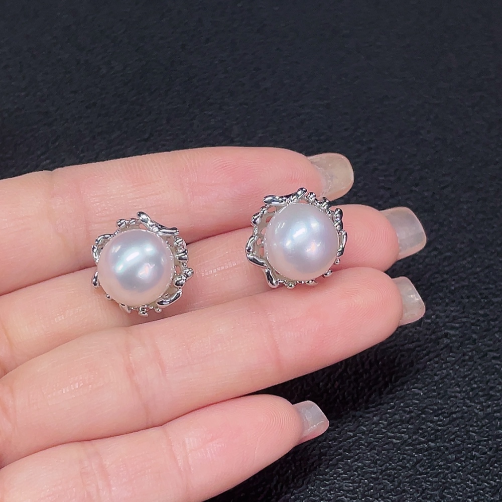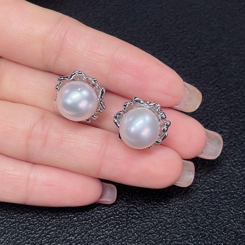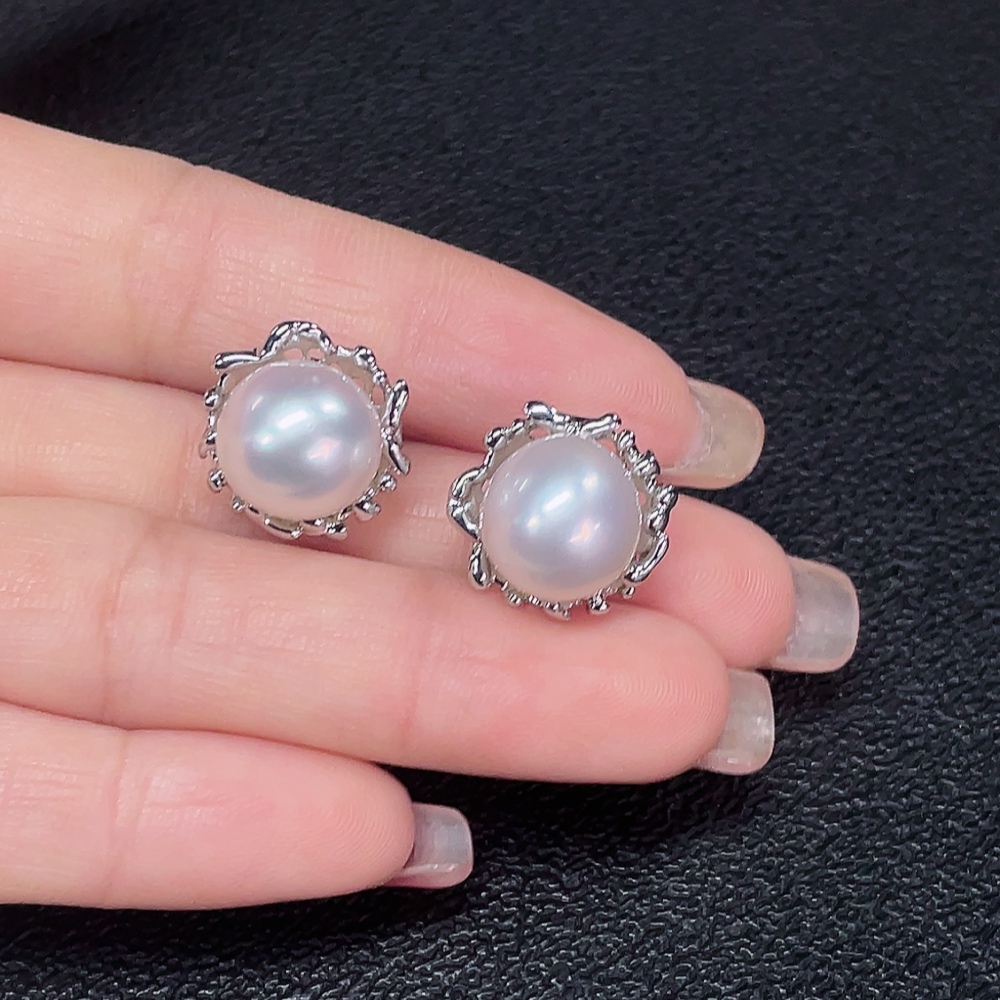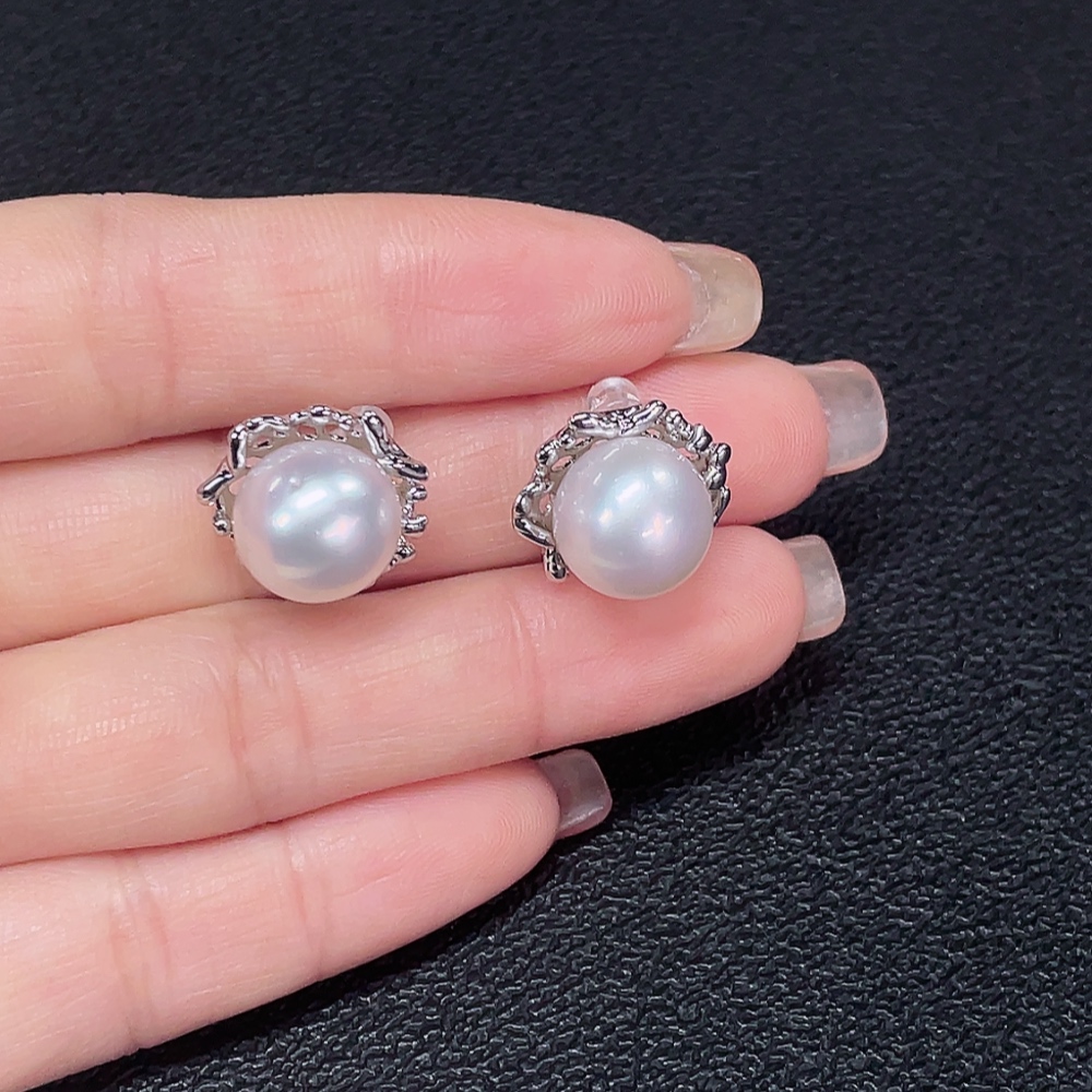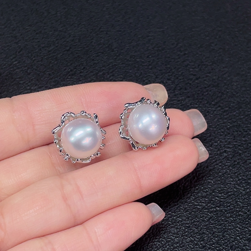 Seawater pearl earrings non-gold total weight about 6.64g size approx. 10.9mm
