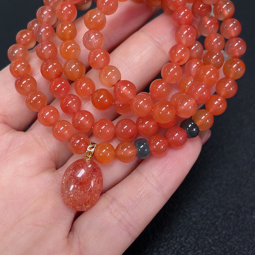 Sunstone Pendant Set in 18K Gold with Jadeite and Southern Red Agate