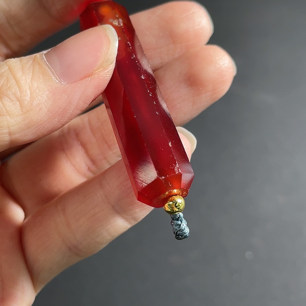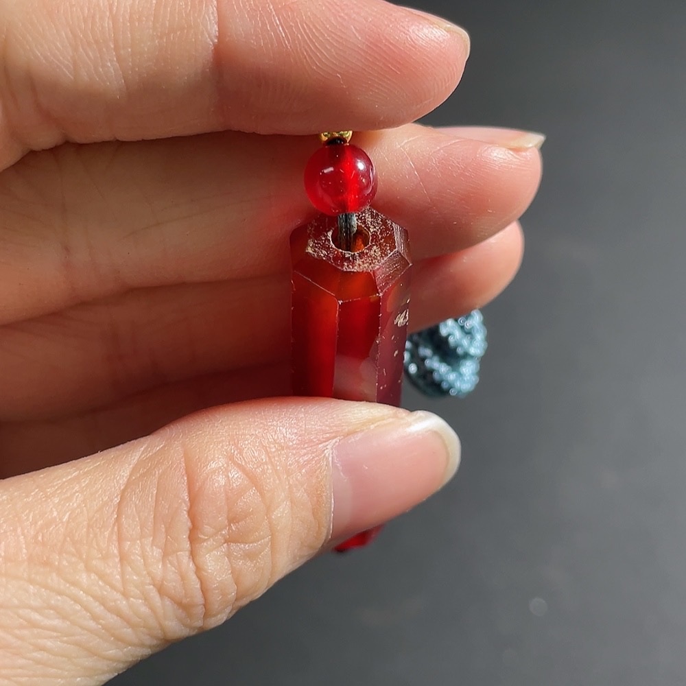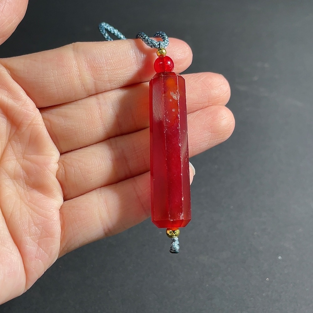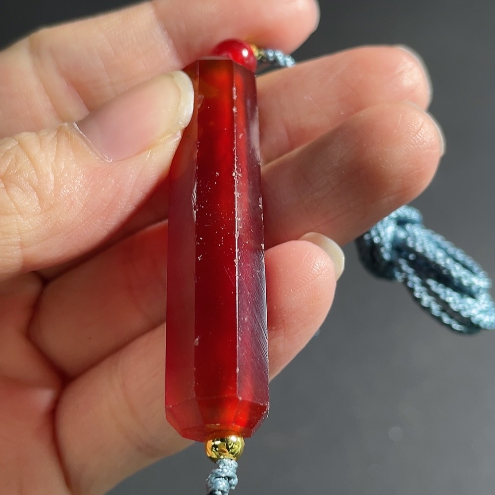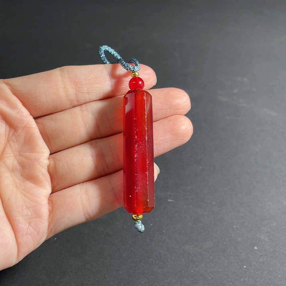 Doubtful 18th-19th Century Agate Faceted Long Tube Bead, Vintage Bead