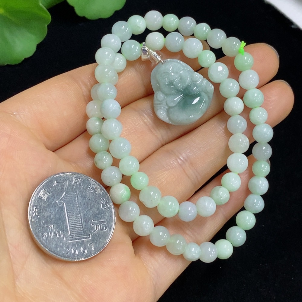 Jadeite Buddha Pendant Total Weight Approx. 25.72g (Including Chain) Beads Not Grade A