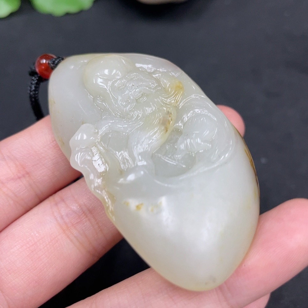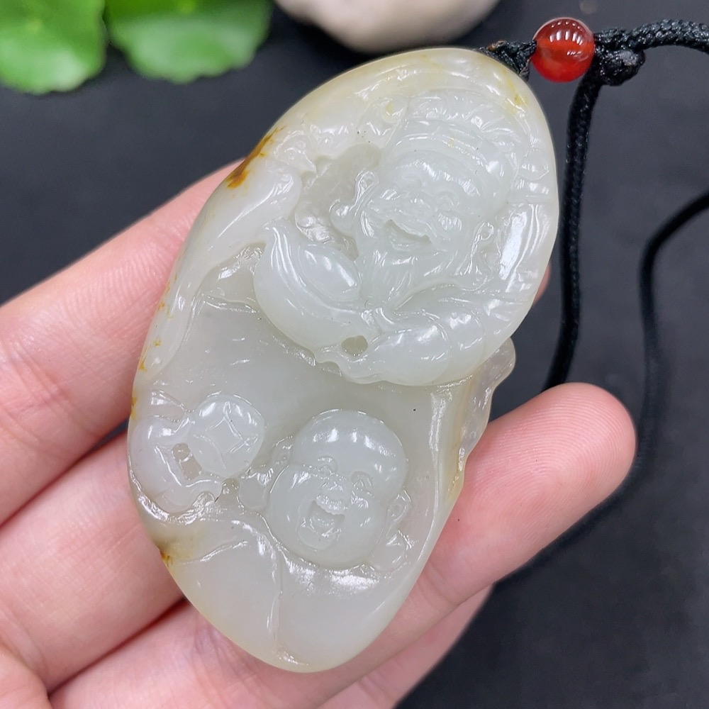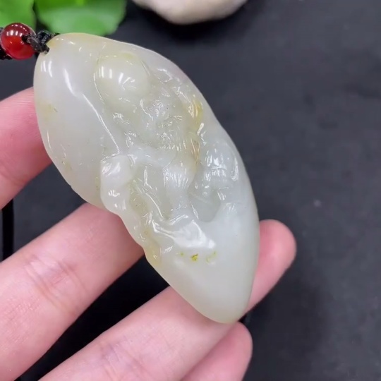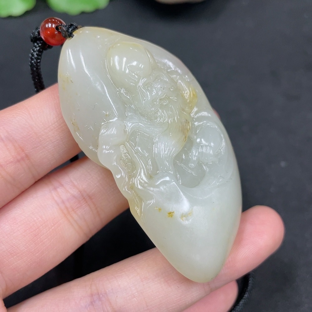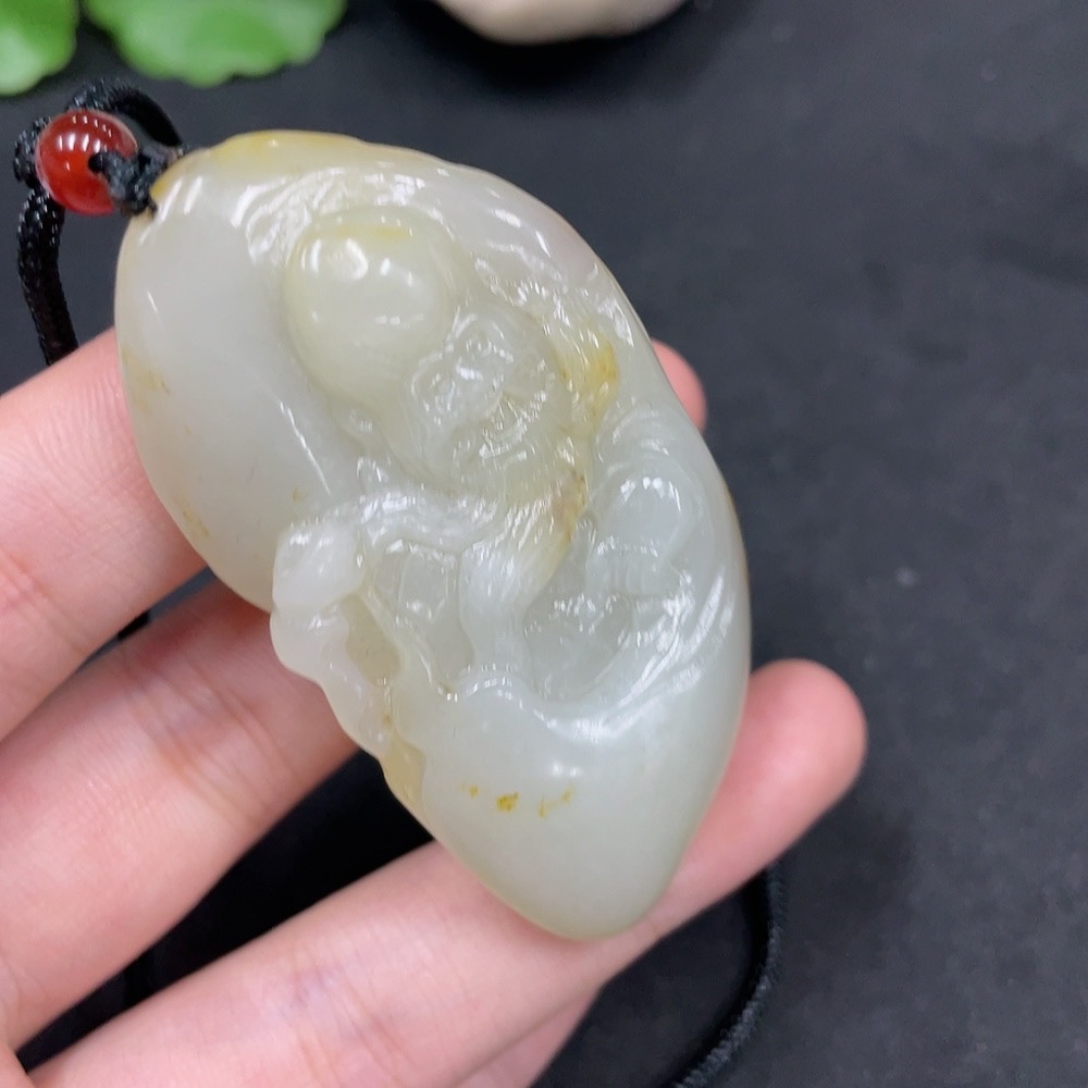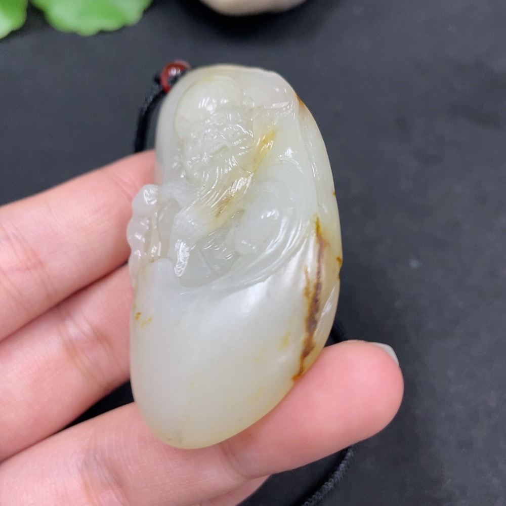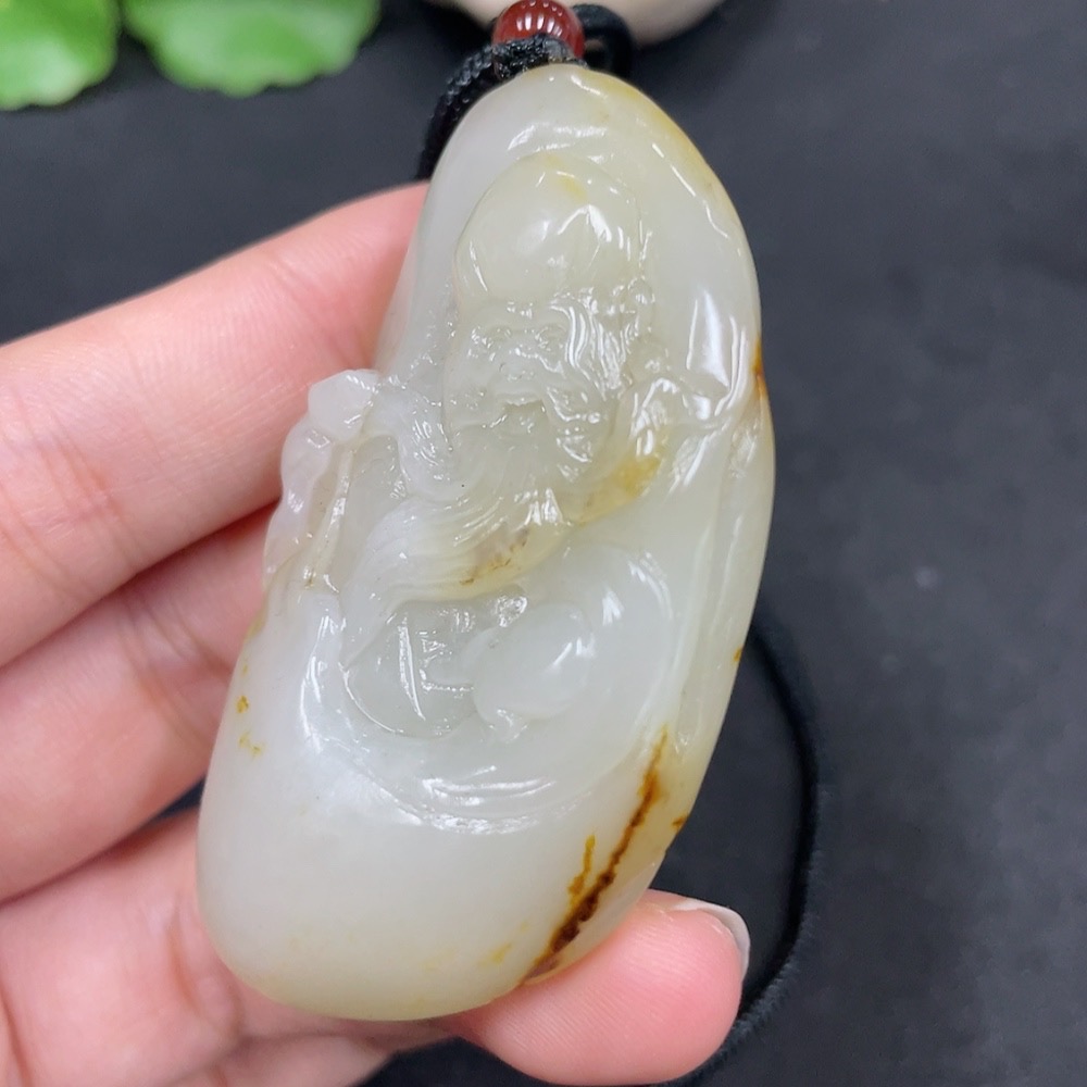 Hetian Jade Seed Material Pendant - Longevity Deity, Undetermined Skin Color Origin, Non-Hetian Jade Beads, Total Weight Approx. (Including Cord) 44.1g