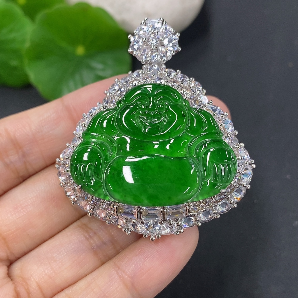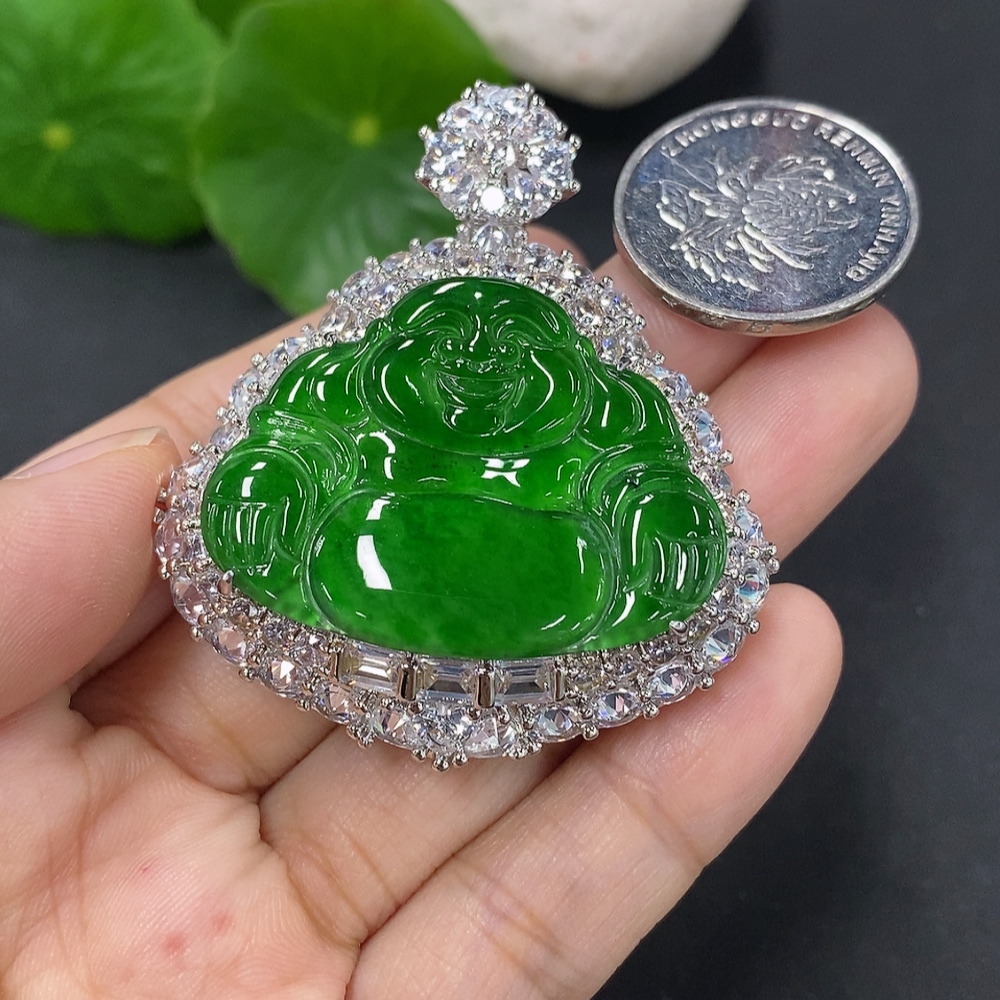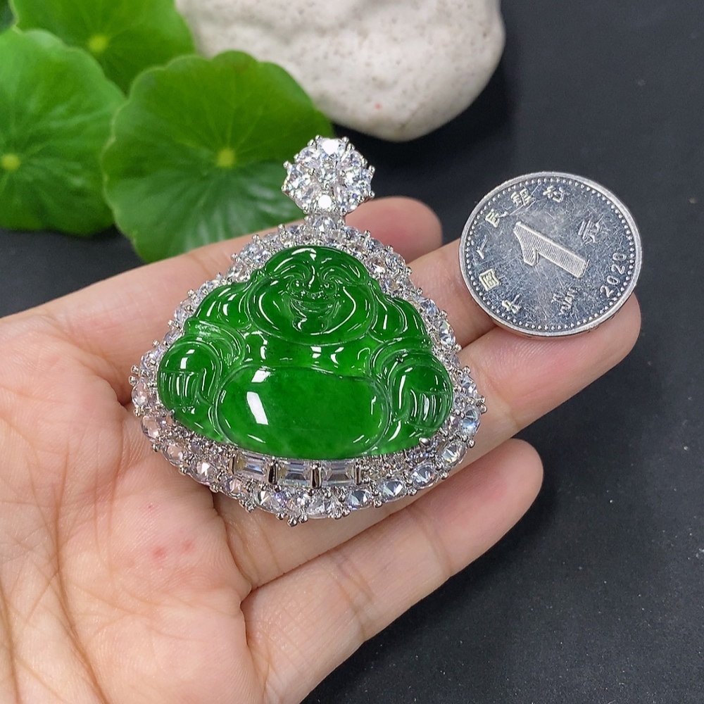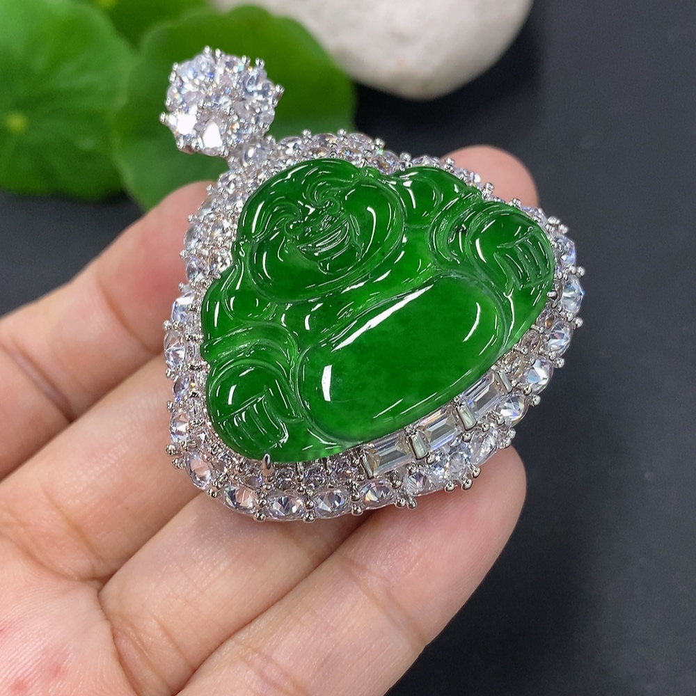 Jadeite Buddha Pendant with Inlay Non-Gold Inlay Total Weight Approx. 28g