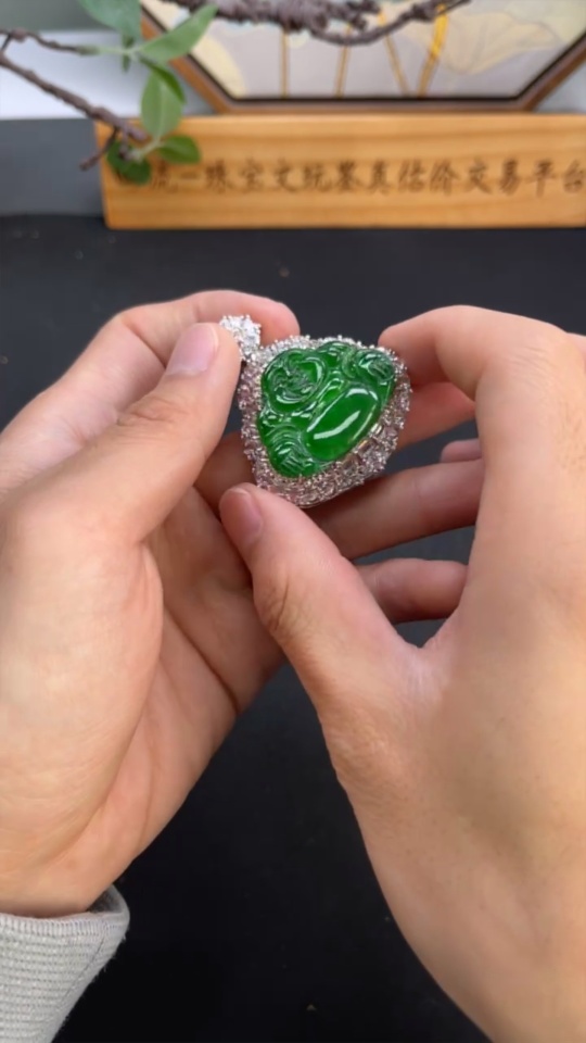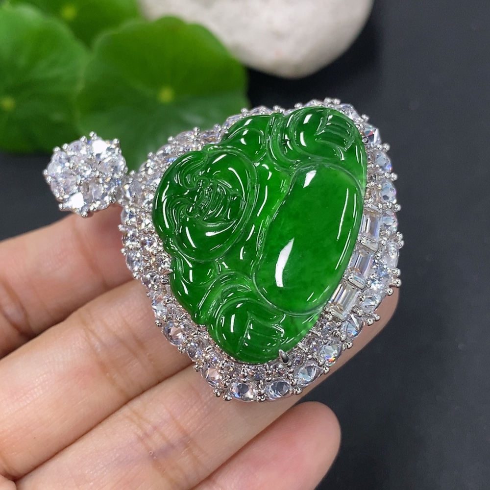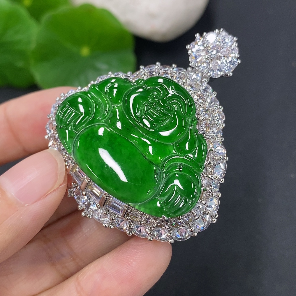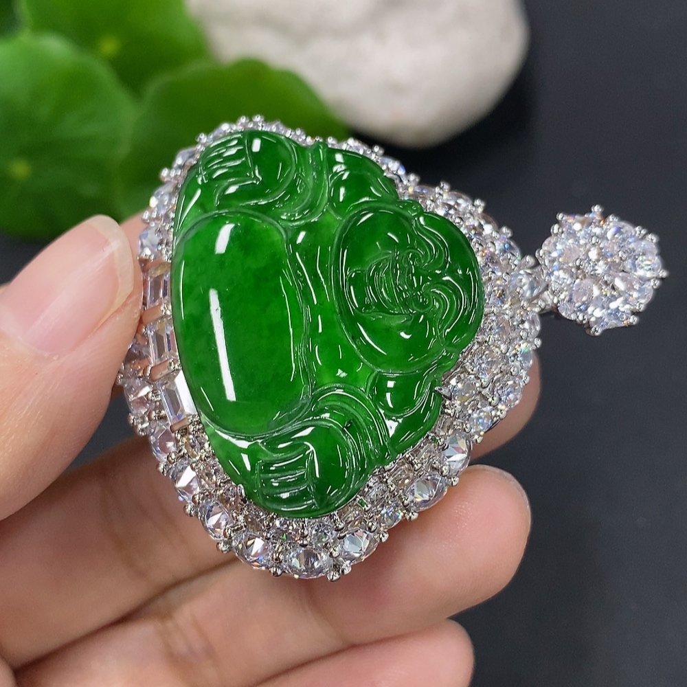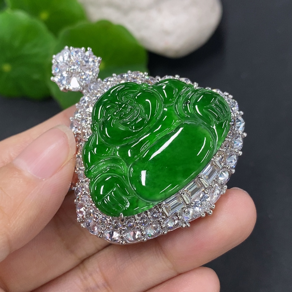 Jadeite Buddha Pendant with Inlay Non-Gold Inlay Total Weight Approx. 28g