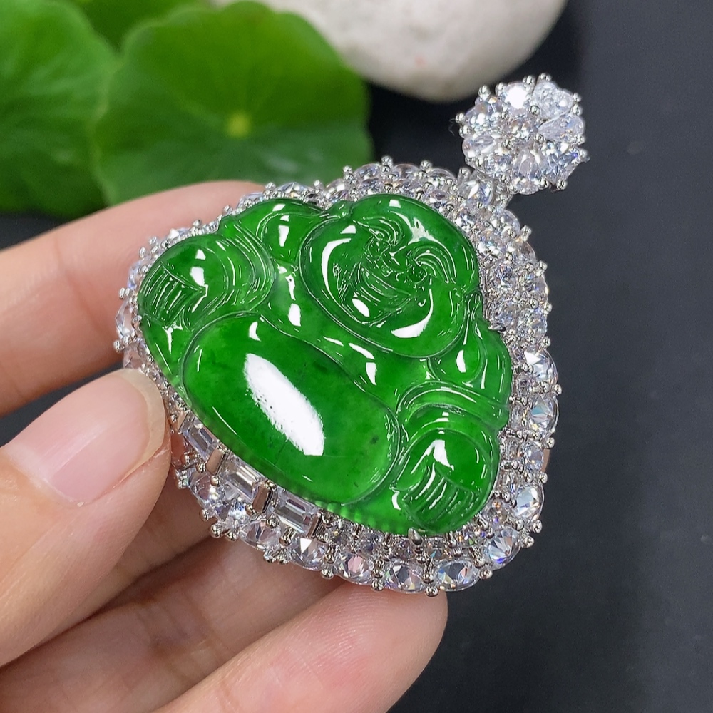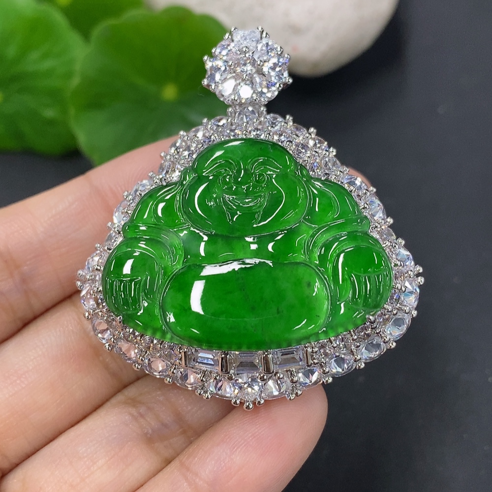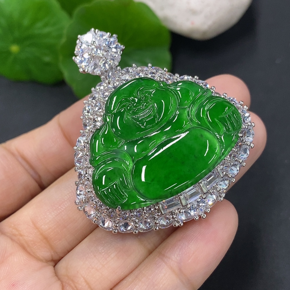 Jadeite Buddha Inlaid Pendant Non-Gold Inlaid Total Weight Approx. 27.27g