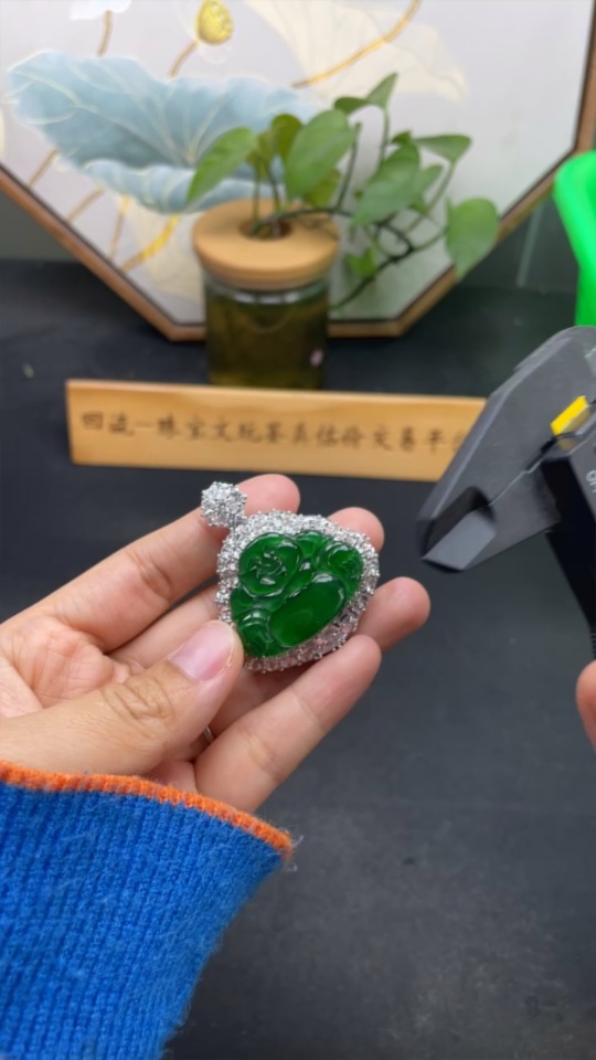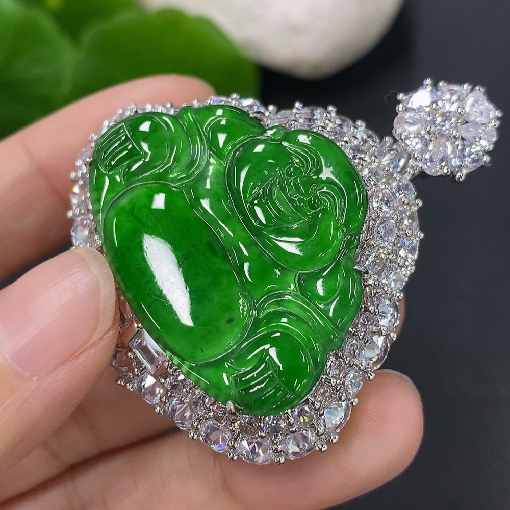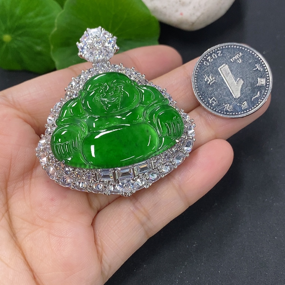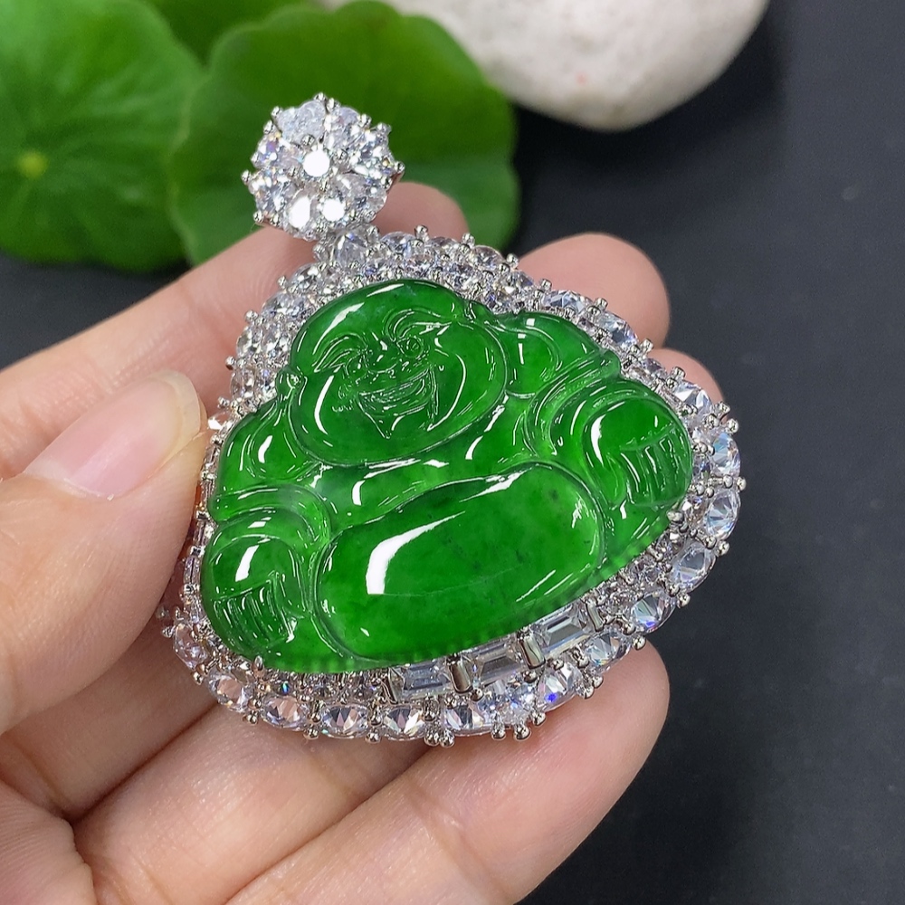 Jadeite Buddha Inlaid Pendant Non-Gold Inlaid Total Weight Approx. 27.27g