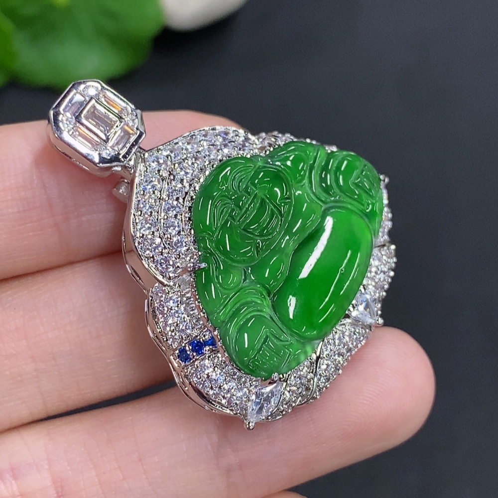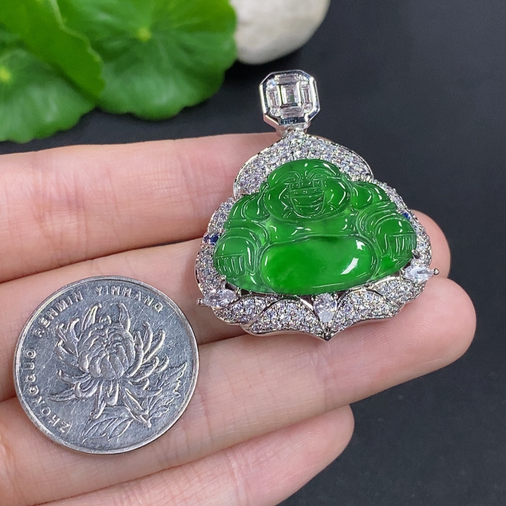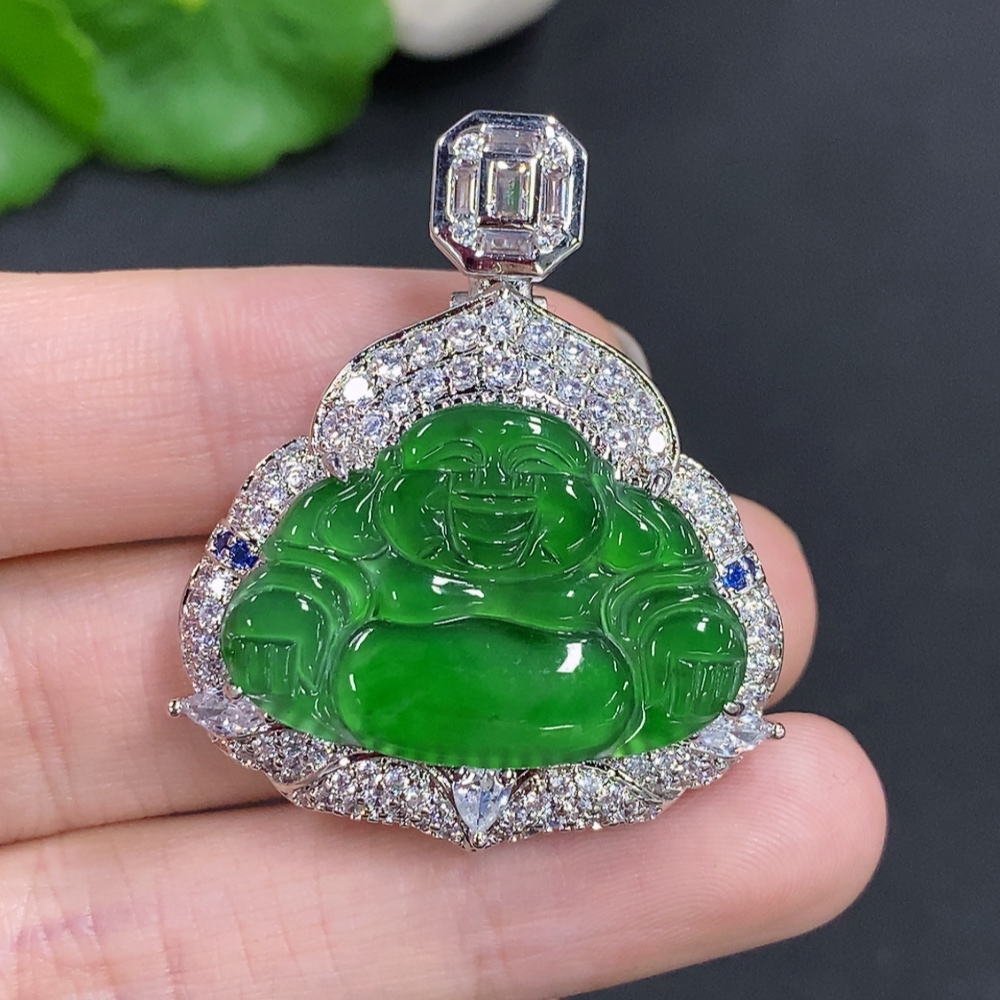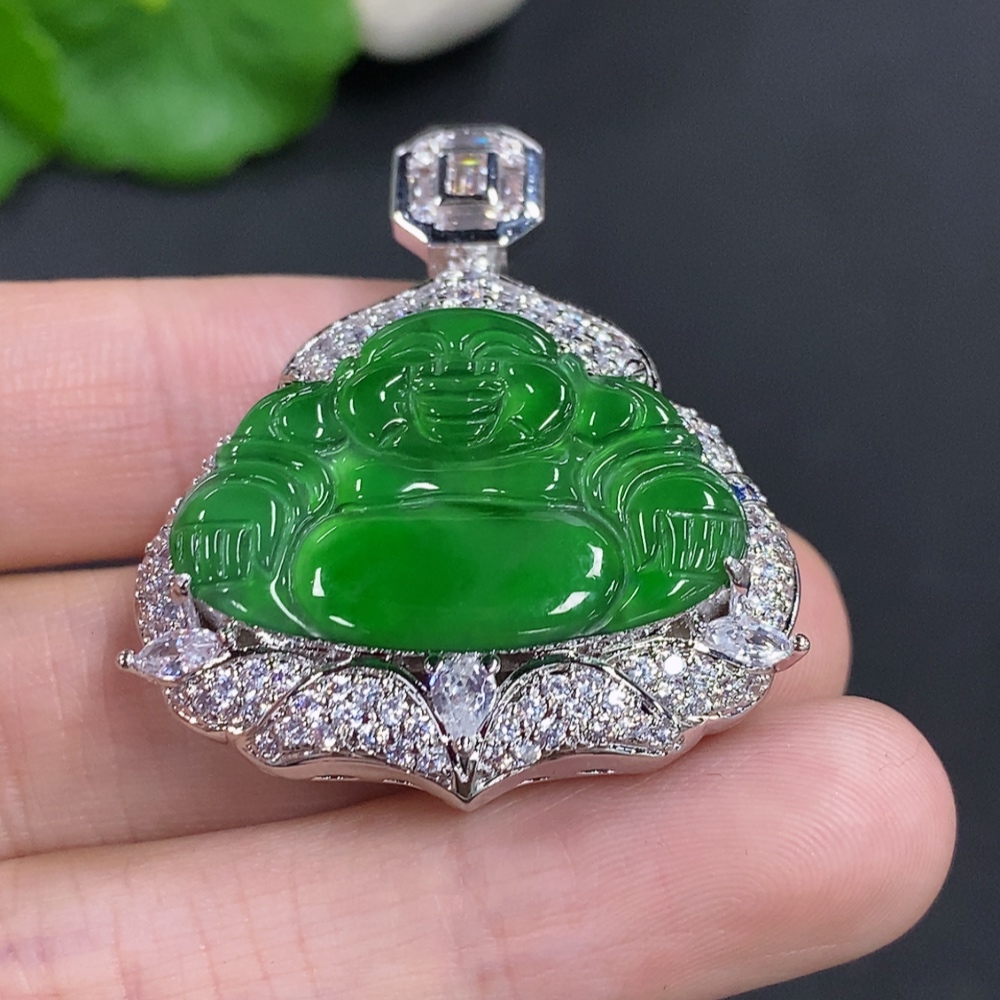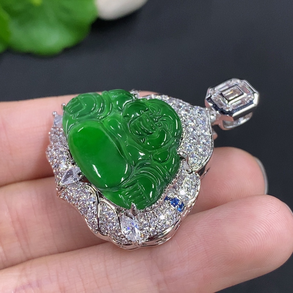 Jadeite Buddha Inlaid Pendant Non-Gold Inlaid Total Weight About 16.29g