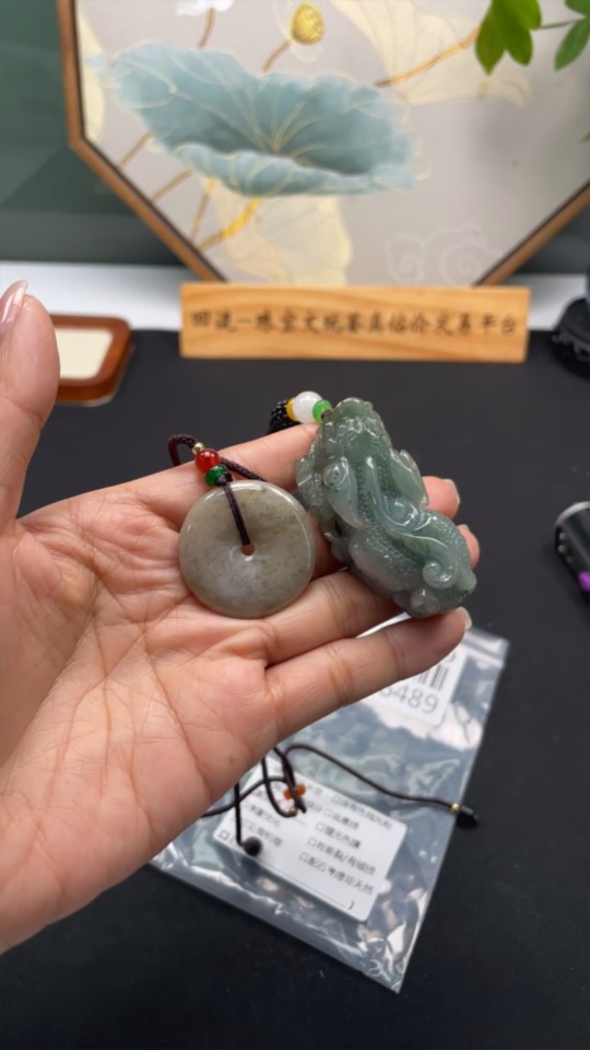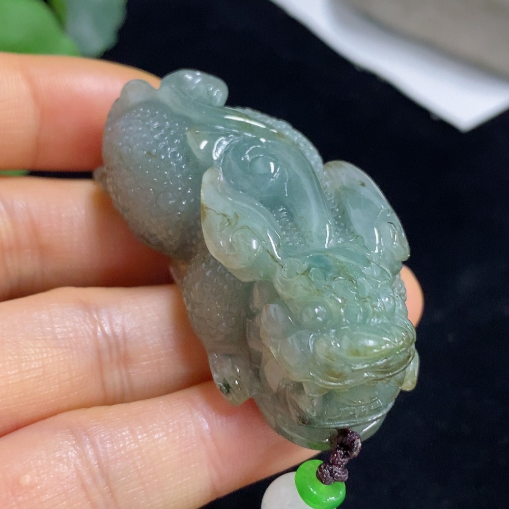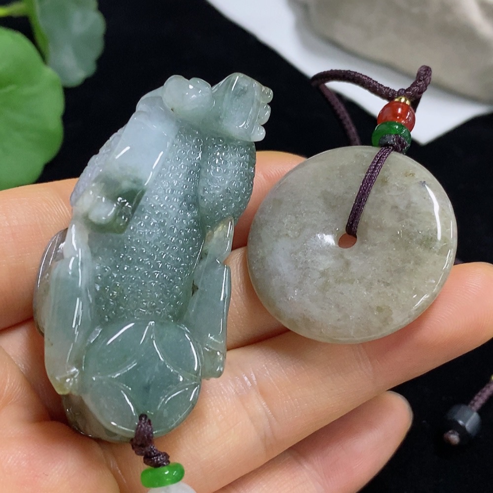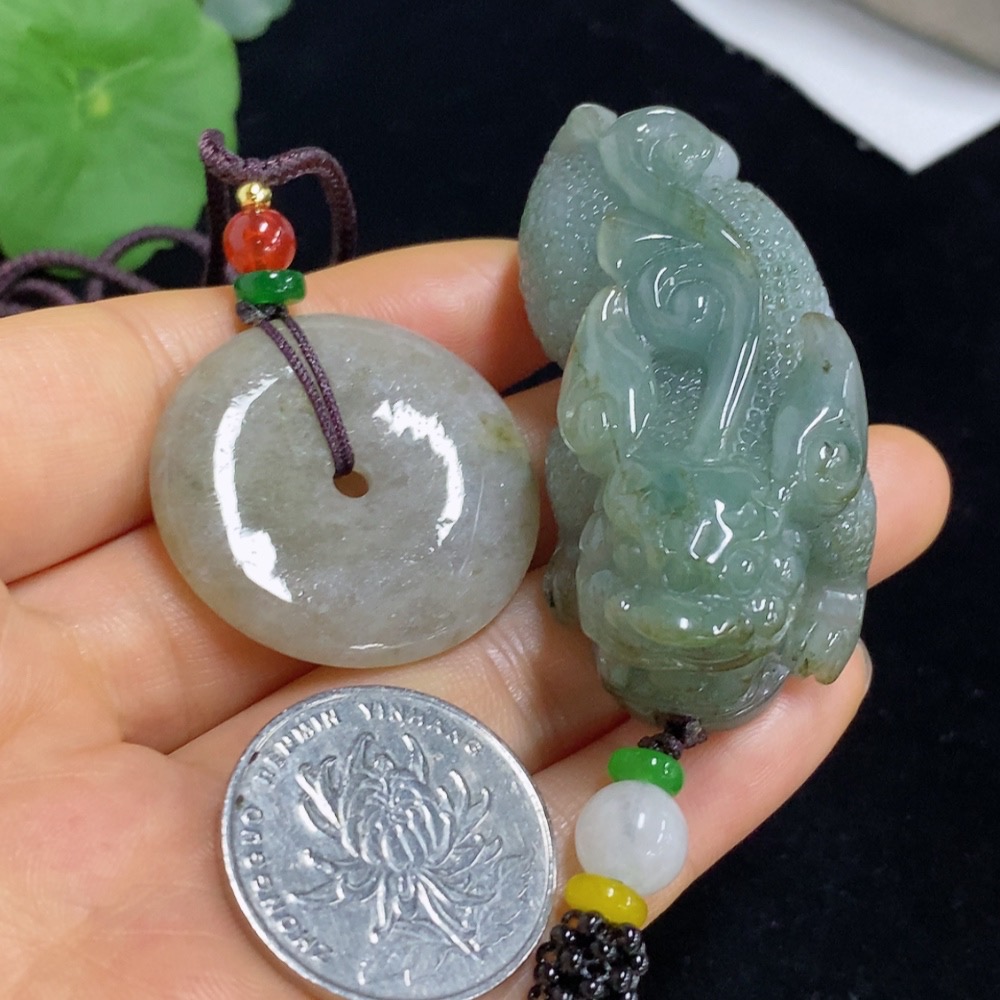 Jadeite Pixiu/Ping An Kou Pendant Sell as a Lot With Non-Grade A Beads